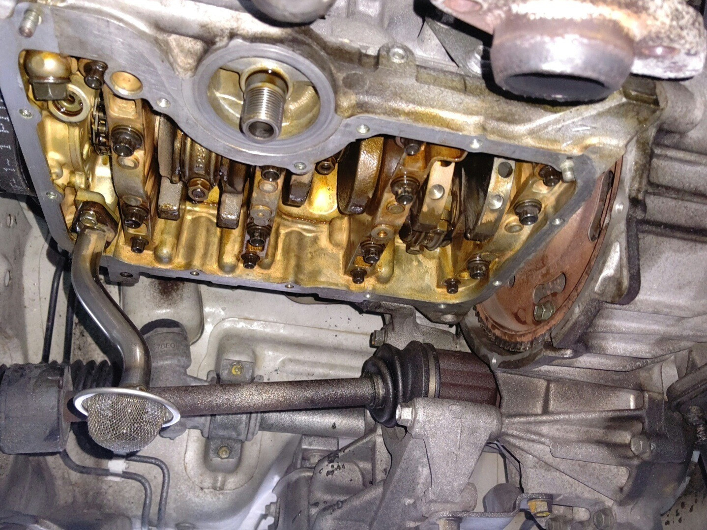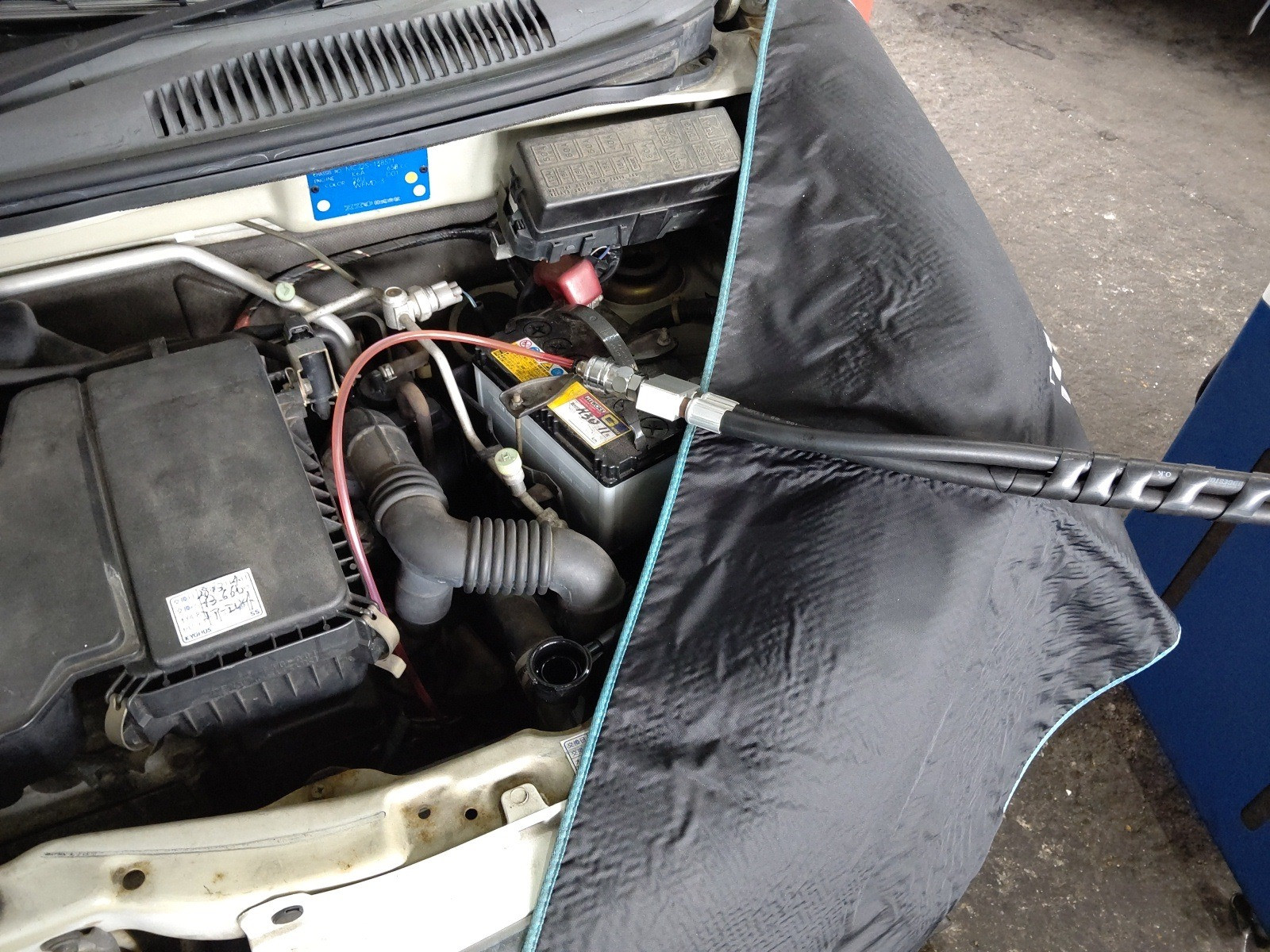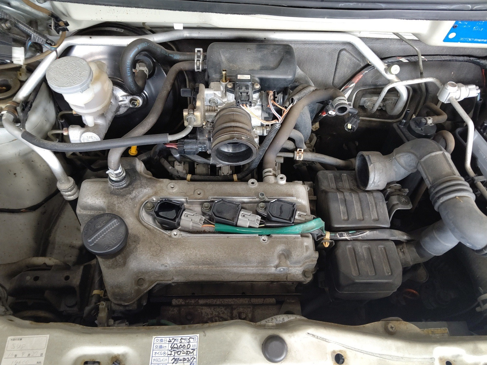 大和郡山市での安心車検は【マスダモータース】に 2020/05/01 スズキ ワゴンR MC22S 車検 今回はスズキ ワゴンRの車検です。 早速リフト・アップして分解、点検していきます。 この車は中々にやることがありますので、エア・エレメント・ケースもはずしていきます。 プラグは通常のタイプなんで交換しておきます。 摩耗もしていますしね。 ドライブ・シャフトから音もしており内外どちらのブーツも破れていましたので、リビルト品に交換です。 シャフトを抜く時は真っすぐ抜いていきます。 でないと抜け止めのCピンがシールに引っかかってダメにしてしまう時がありますからね。 エンジン・オイル・パンの周りからオイルが漏れてきていましたので、外してシール剤を塗りなおします。 内部を見ておきましたが目立った汚れもありませんでした。 オイル・パンを外すのにマフラーのセンター・パイプを取り外さなければならなかったので、ガスケットを交換しておきます。 こちらはフロント側。 ここは軋み音がしやすいのです。 こちらはリヤ側。 ガスケット類は一度外したらケチらずに交換しましょう。 一度でも取り付けたら変形してますので。 リヤ・ブレーキも点検、グリス・アップしておきます。 スズキはハブ一体のドラムなので真ん中に付いているロック・ナットを外します。 これはシール付きに代わっていますね。 ここのベアリング最初は黒いシールが付いてなくて早期にベアリングがダメになっていましたね。 こういう所の締め付けもちゃんとトルク・レンチで締めないとやはりベアリングをダメにします。 ブレーキ・オイルは車検毎に交換します。 替えると目に見えて変わっていますw タイヤを付けて降ろしたら、水やオイル類を入れて走行後量を調整しておきます。 最後に計測、陸事で書類を貰って終了です。