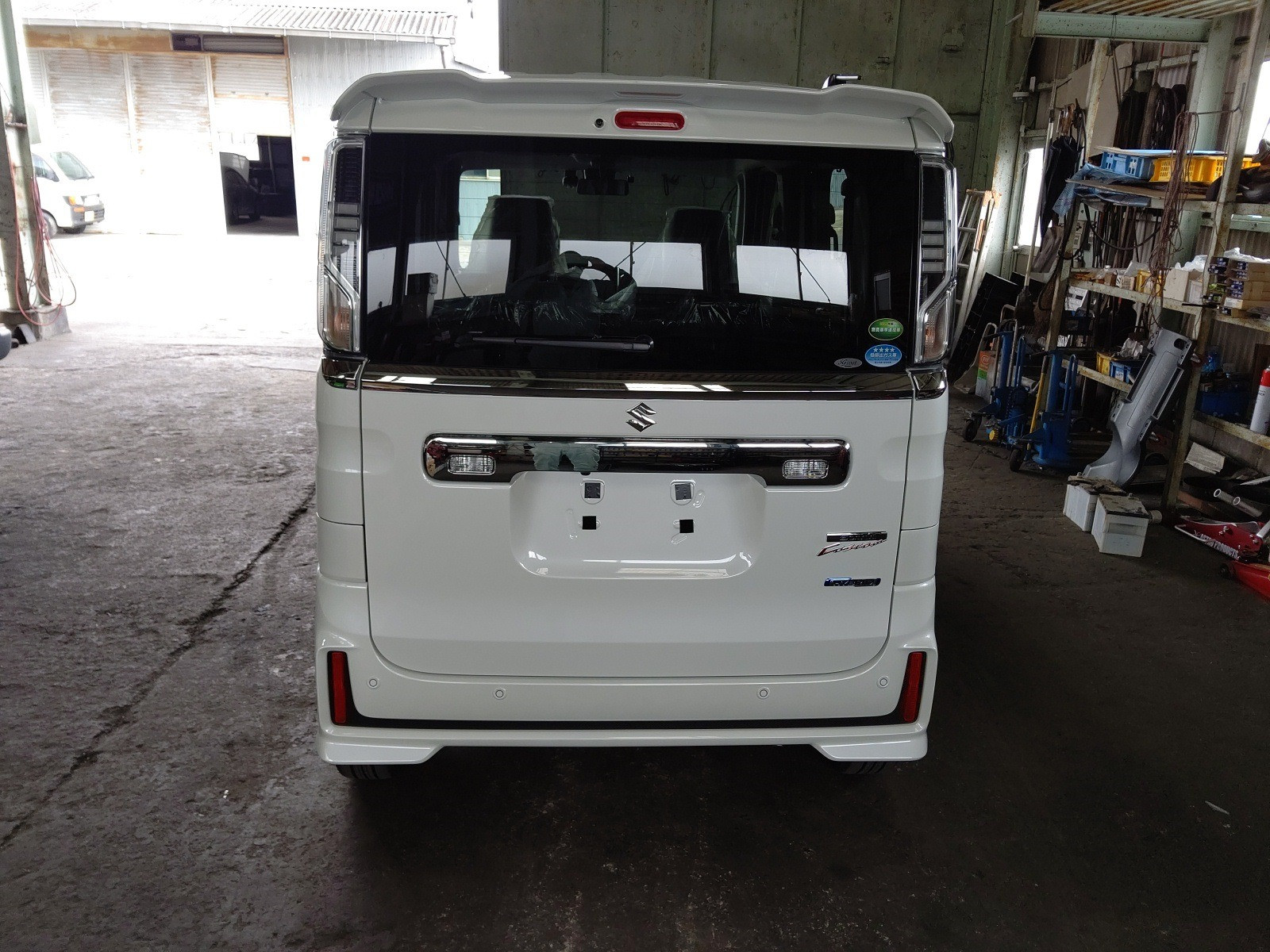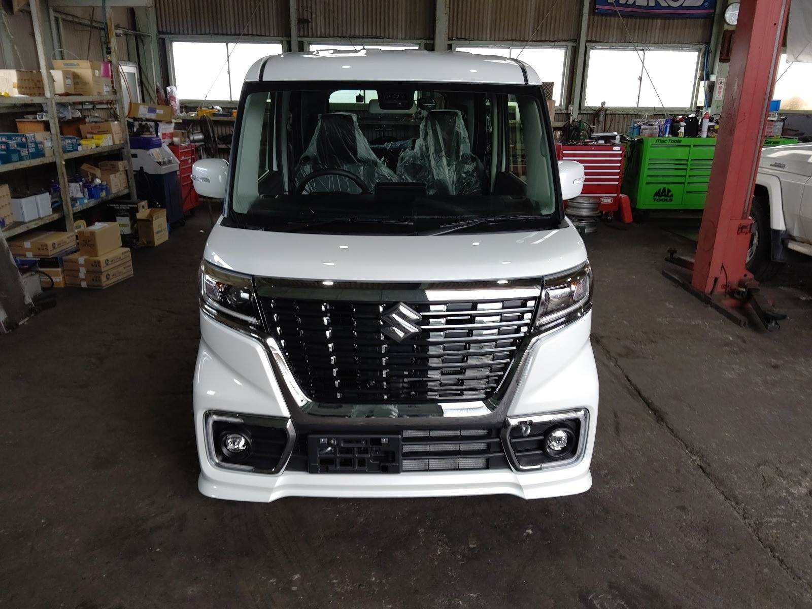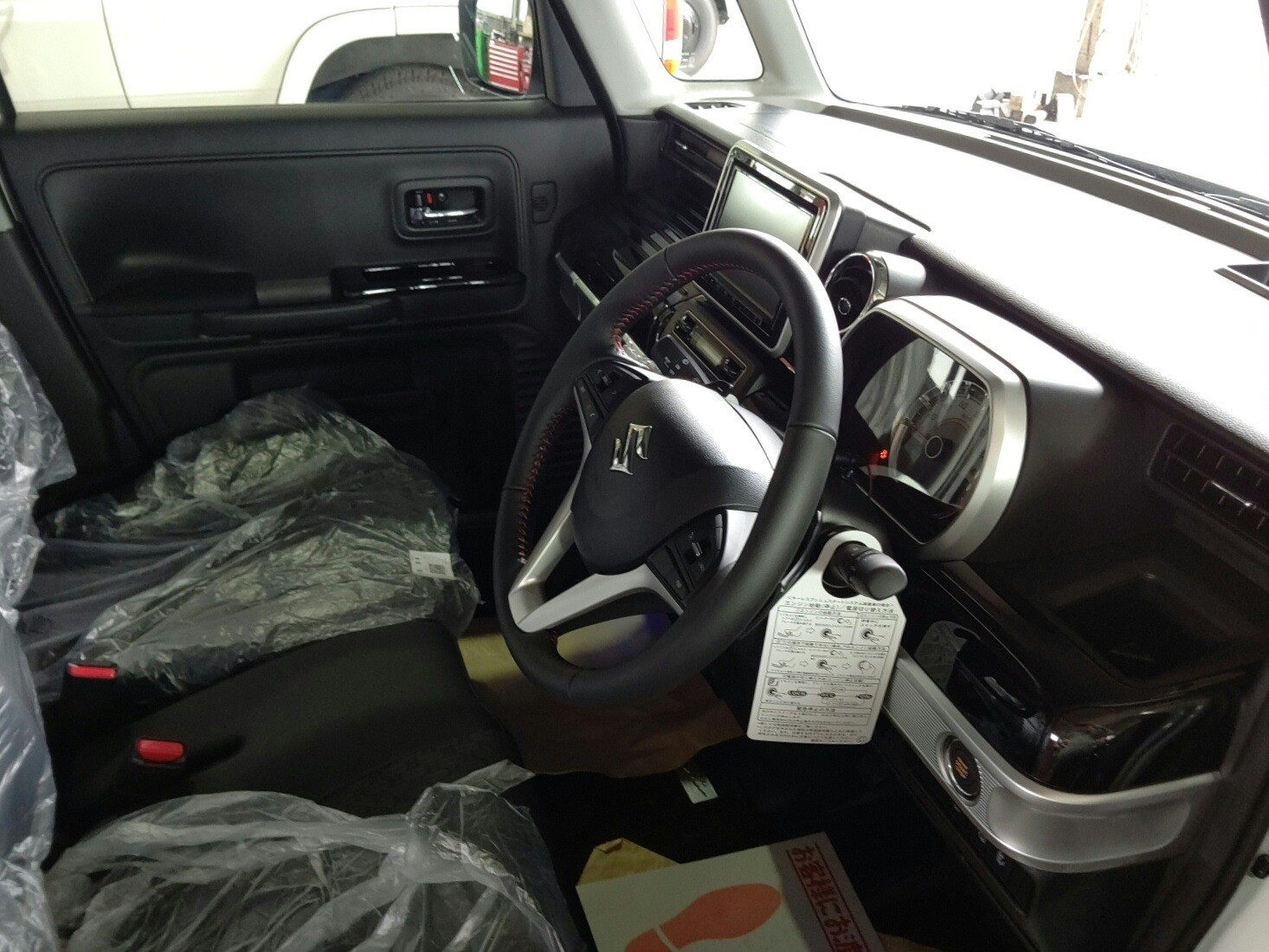 大和郡山市での新車販売は【マスダモータース】で 2020/05/05 スズキ スペーシア MK53S 新車販売 今回はスズキ スペーシアの新車販売です。 ウチと長く取引して下さっているお客様の奥さんの車が古くなってきたので乗り換えるお話を頂きました。 現在のコロナの影響が出始める前に注文して頂けていたので、何とかゴールデンウィーク前に収める事が出来ました。 こちら後ろ側。 背も高くスライド・ドアで使い勝手は抜群ですね。 メーカー・オプションの全方位モニター付きはバック等の安全確認が容易です。 リヤ・カメラはバック・カメラと兼用ですのでよくある位置についています。 左右のカメラはドア・ミラー下に付いています。 フロント・カメラはバンパーに付いていますね。 全て広角カメラなんでこれで全方位をカバーしています。 自動ブレーキのカメラはフロント・ガラスに付いていて安全装置をフル装備状態ですw 時代の流れですね。 運転席周りは扱いやすいです。 安全装置等のスイッチ類が多く付いていますが難しくないので理解はしてもらいやすいかな? 基本的な操作方法は今まで通りですね。 基本操作はアナログの方が色んな年代の人に理解してもらいやすいです。 レクサスやベンツのようなサイド・ブレーキやシフトはお年寄りに理解してもらうのに時間がかかります。 リヤ側は今の軽四の一番いい所でしょう。 奥が一番前にした状態、手前は一番後ろにした状態。 後ろにした状態では荷室は狭いですが物凄くゆったり座れますからねw エンジン周りです。 ぱっと見ではそれ程変わりないですね。 エネチャージ付きと言っても乗用車のハイブリットとは構造が違いますから。 見慣れた物ですw 納車前に頼まれていたオプションのチェックをしてナンバー付けて車は完成です。 次の日にお客様が来店されて大変満足気に乗って帰られました。 後日、その日に早速山の上のお寺に厄除け?に乗って行かれたそうで「四人乗っても急な坂ガンガン走ったわw」と笑顔で報告を貰いましたw