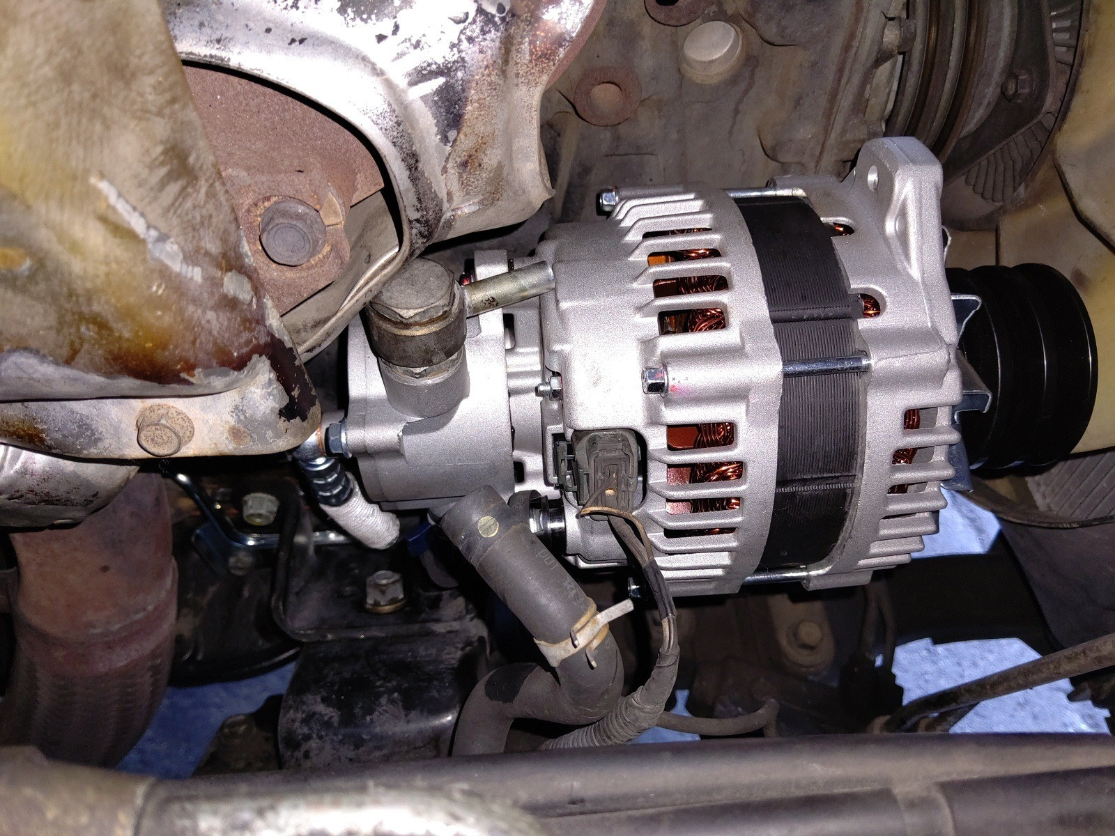 大和郡山市での安心車検は【マスダモータース】に 2020/05/18 いすず エルフ NPR81AN 車検 今回はいずず エルフの車検です。 距離も80万オーバーの車なんで何が出るか・・・ 水やオイル類、ゴム製の消耗品は距離により交換です。 リヤ・ブレーキのホイール・シリンダーもオーバー・ホールしていきます。 ばらしたついでにベアリングを掃除してハブも含めグリスを詰めなおしておきます。 お陰でベアリングも長持ちしてますw 右のタイロット・エンドはガタガタになっていましたので交換です。 コイツは抜けると事故を起こすので、このタイミングで交換出来て幸いでした。 今回一番の大仕事、オルタ・ネーターの交換です。 充電電圧がかなり落ちていました。 また、このオルタ・ネーターの後ろにはバキューム・ポンプが付いており、エンジンからオイルが送られてきます。 そのバキューム・ポンプからオイルが入りこんでいました。 交換はリビルト品を使いました。 バキューム・ポンプに繋がるオイルの高圧、低圧ホースも交換しておきます。 ある程度組み付け終わったら、エンジンをかけて発電状態を確認します。 問題なかったので最後まで組み付けて作業は終了です。 後は計測、陸事で書類を貰って終了です。
