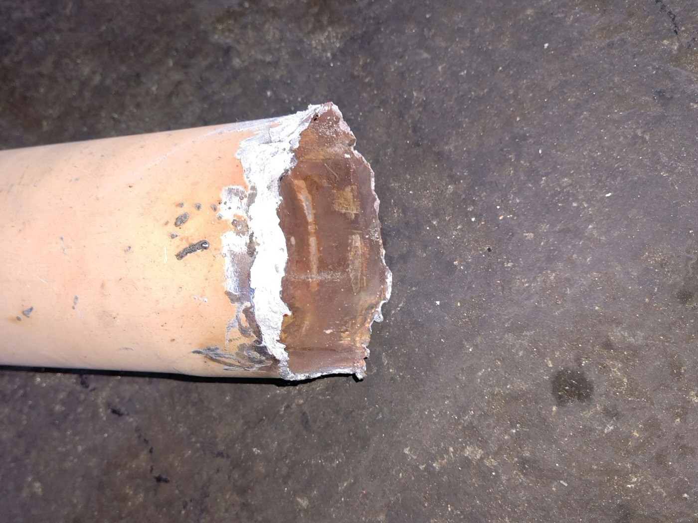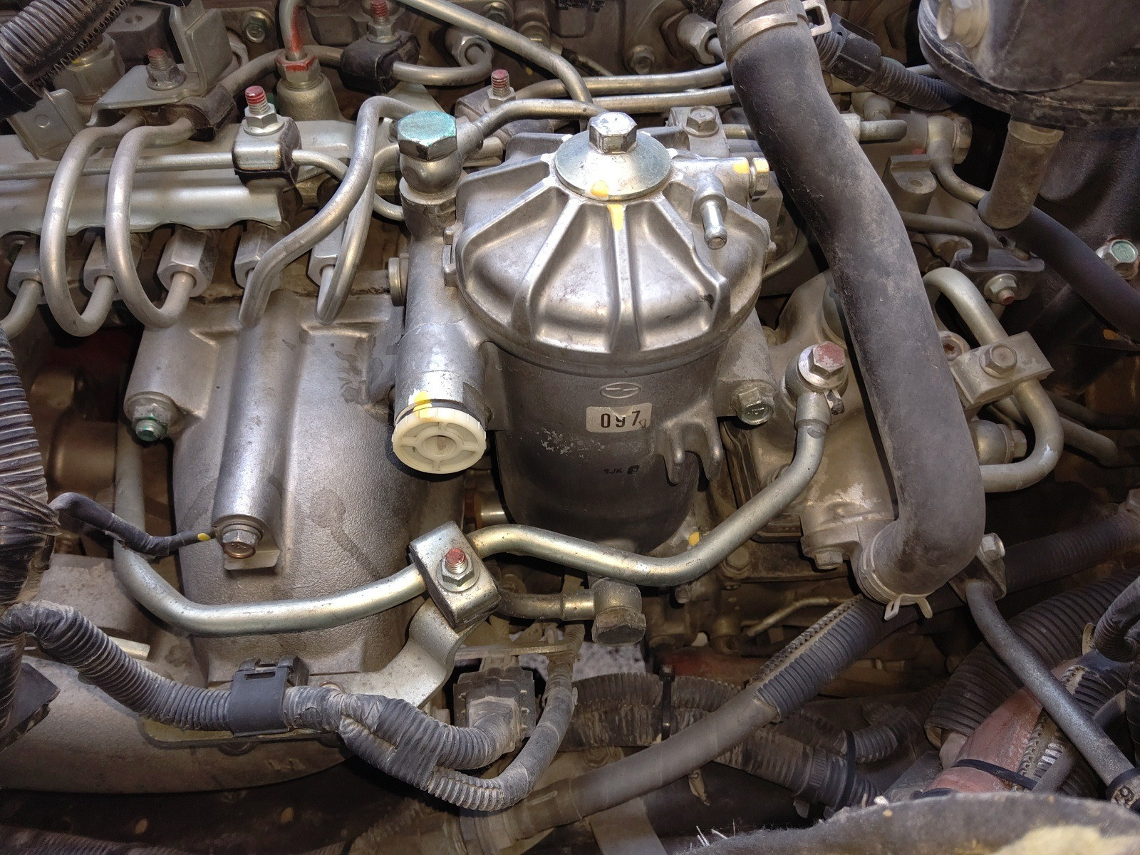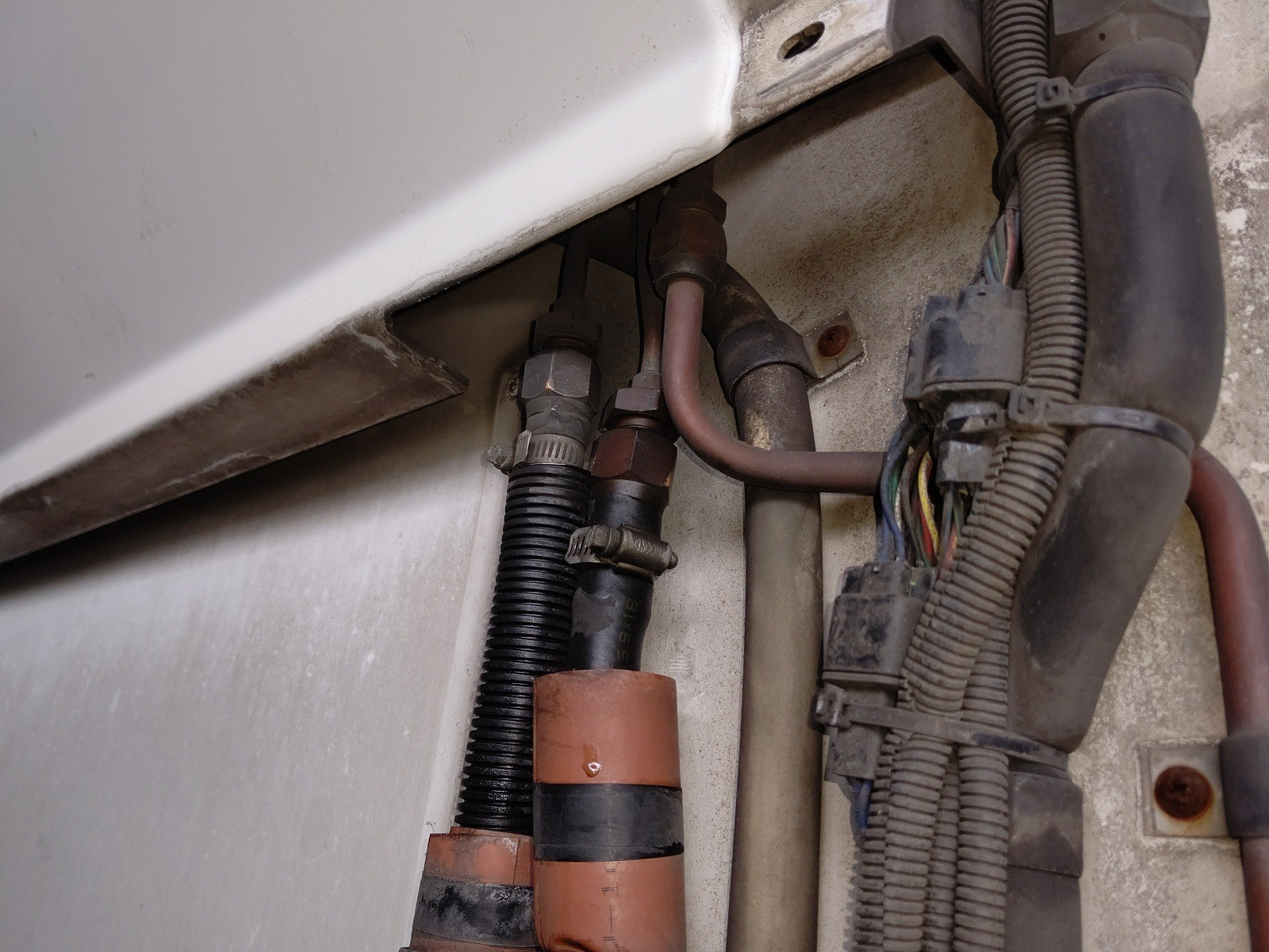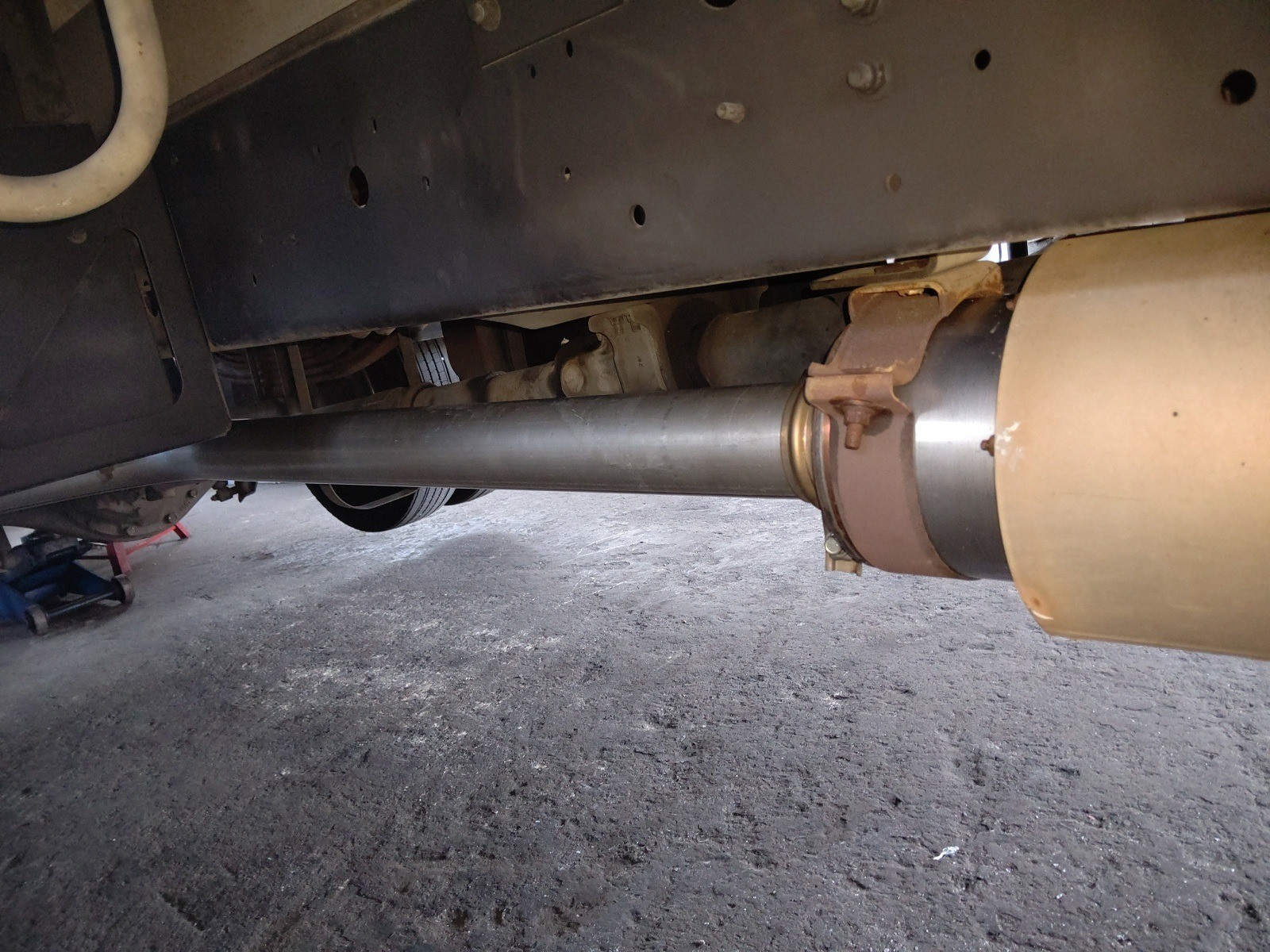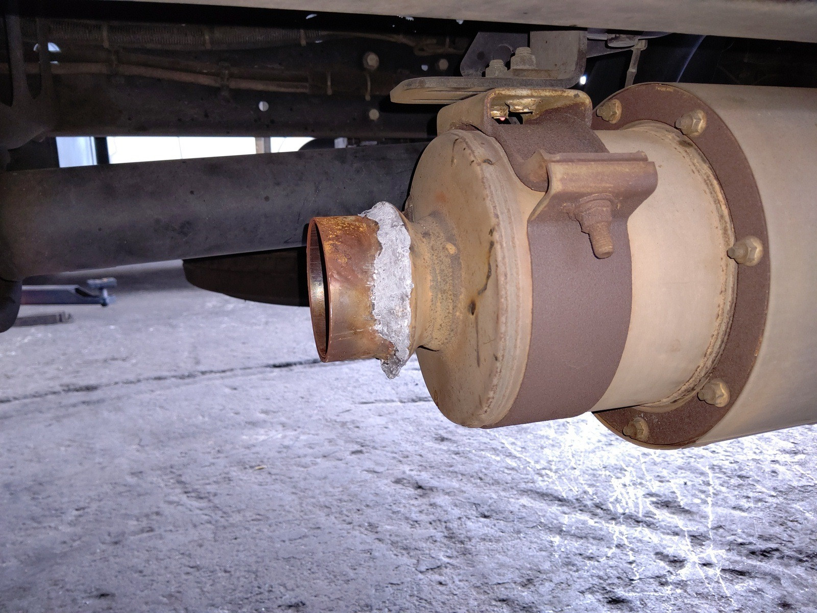 大和郡山市での車の修理は【マスダモータース】で 2020/05/27 日野 レンジャー FC7JKYA 点検 修理 その3 今回で日野 レンジャーの修理の最後です。 ミッションのニュートラル位置不良だけではありませんでした、この車は・・・。 排気ガスがダダ洩れになっていました。 テール・パイプとマフラーの取付部からなんですが・・・ なんじゃこりゃ? 取付部はテーパーになっていてバンドで固定するのですが、腐食でテール・パイプのテーパー部が無くなっており、ただ刺さってるだけでした・・・。 マフラー側も酷い物でした・・・。 テーパー部に穴が開いているうえに、当たりの部分にどうにもならない位にヘタクソな溶接がしてありました。 その上何か所かグラインダーで削れて穴を開けてしまっていました・・・。 この車車検を受けて納車されてきたんです。 ??? こんな状態やと不適合にしかなりません。 陸事に行って車検受けてるとも思えない・・・。 まさか・・・ペーパー・・・ とは言え確証も無くウチがどうこう言える訳ではないので、ちゃんと保安基準に適合するように修理しておきます。 過去の修理歴も分からないので水やオイル、エレメント類は交換しておきます。 ここには燃料エレメントが付いています。 エア・エレメントも汚れていました。 水もクーラントがほとんど入っていない状態でした。 う~ん もう少し売り手もちゃんとして欲しい所です。 水温も全然上がらない状態でした。 原因はサーモ・スタッドがボケて早めに開いてしまっていました。 あとは水のエア抜きだけなんですが・・・ この車に付いている冷凍機にはヒーターも付いており、かなり水のラインが長くヒーターの取付位置も高く中々エア抜きできません。 メーカーに問い合わせてみると「中にエア抜きのドレンがついてます」と。 しかし・・・探せど探せど見つからず、もう一度問い合わせてみると「さらに古いタイプみたいでエア抜きは付いていない」 仕方ないので経験から、途中の配管の取付からエア抜きを試みました。 何とか水温も上がってヒーターも効いてきたので作業は終了です。 ドラムも抜いてブレーキも点検したかったのですが、お客様からコストをかけないでとの事で相談の上、今回は様子を見てもらう事になりました。 しかし・・・中古車販売する店にも、もう少し考えて欲しいものです。
