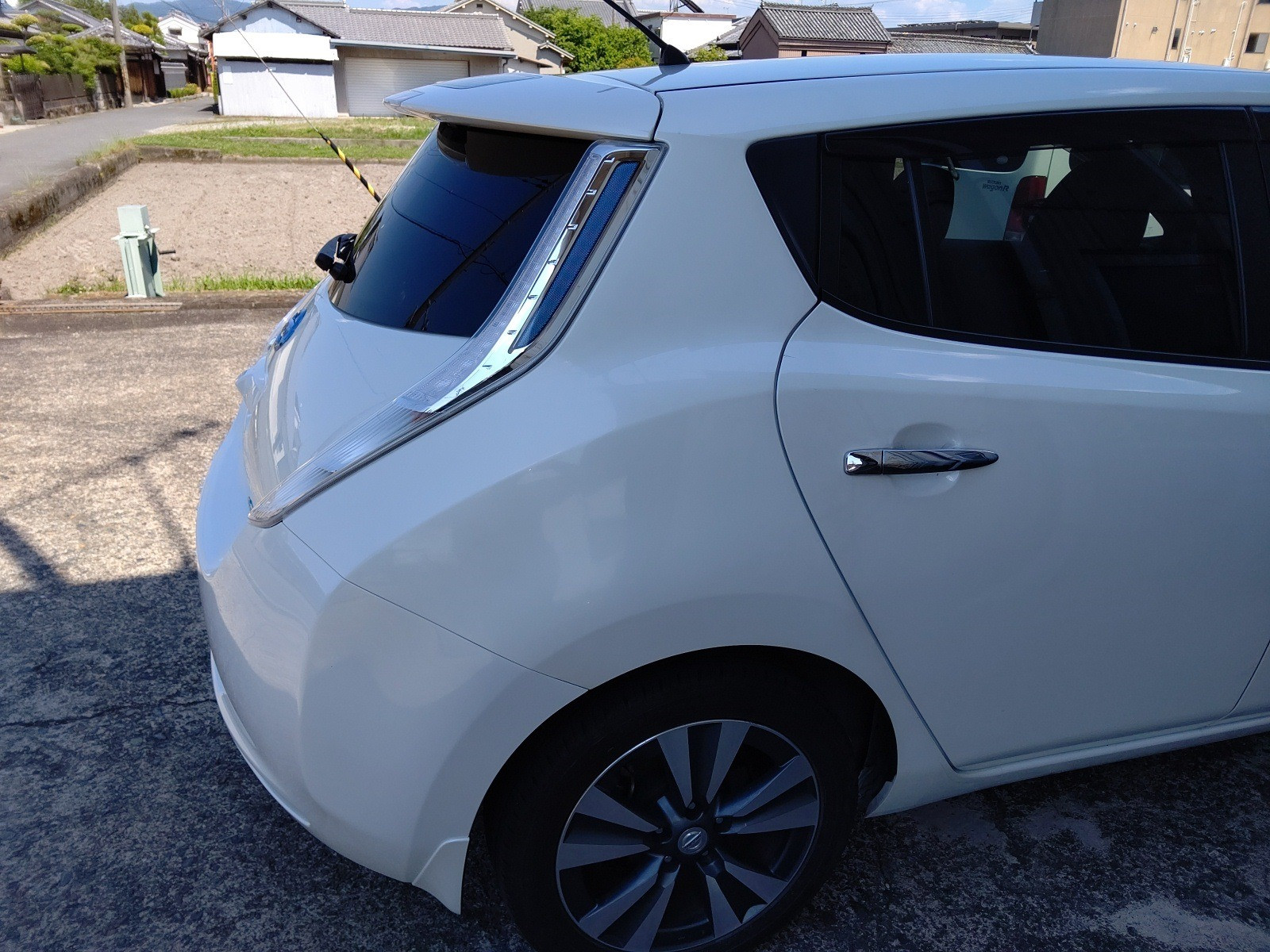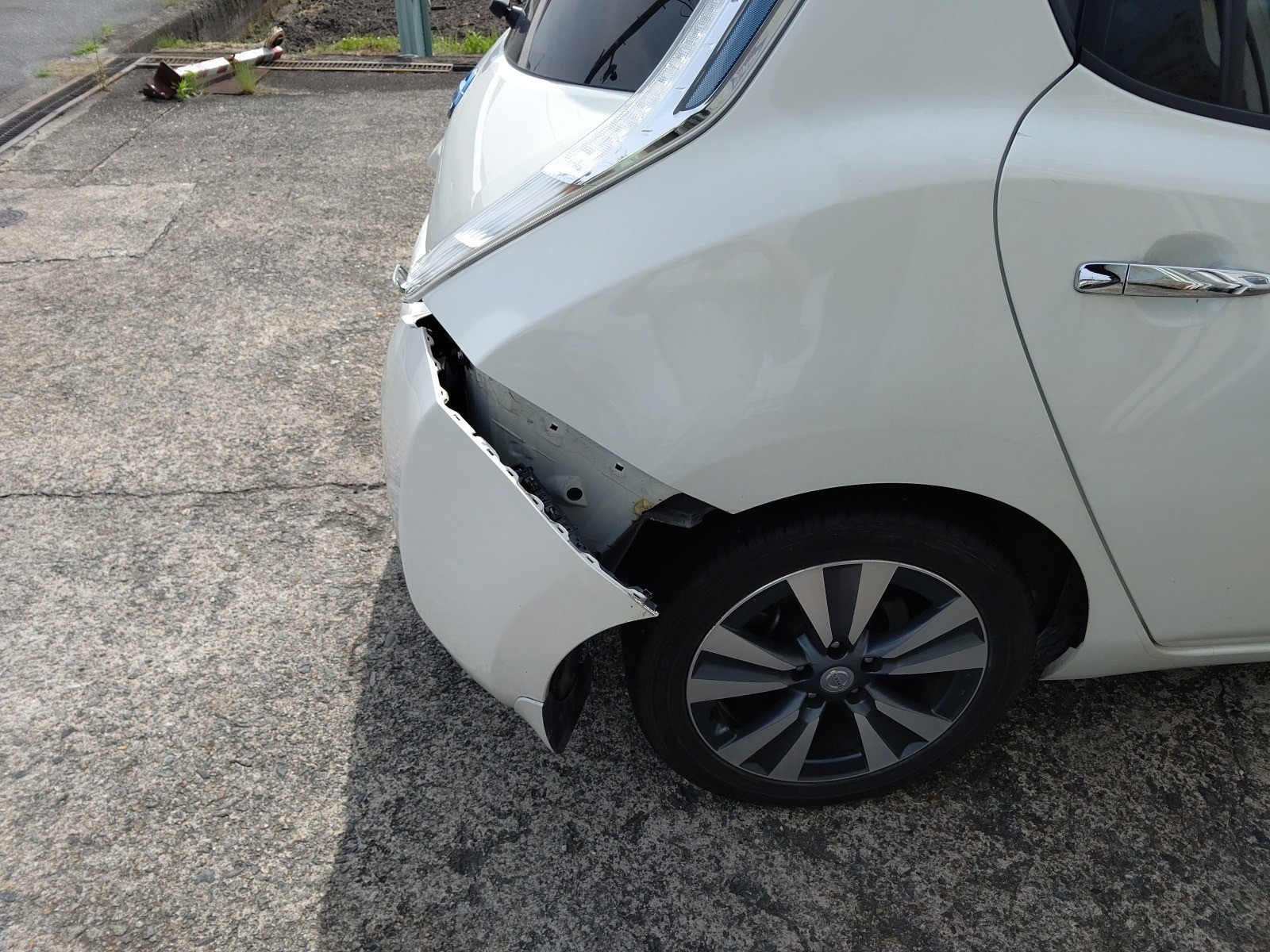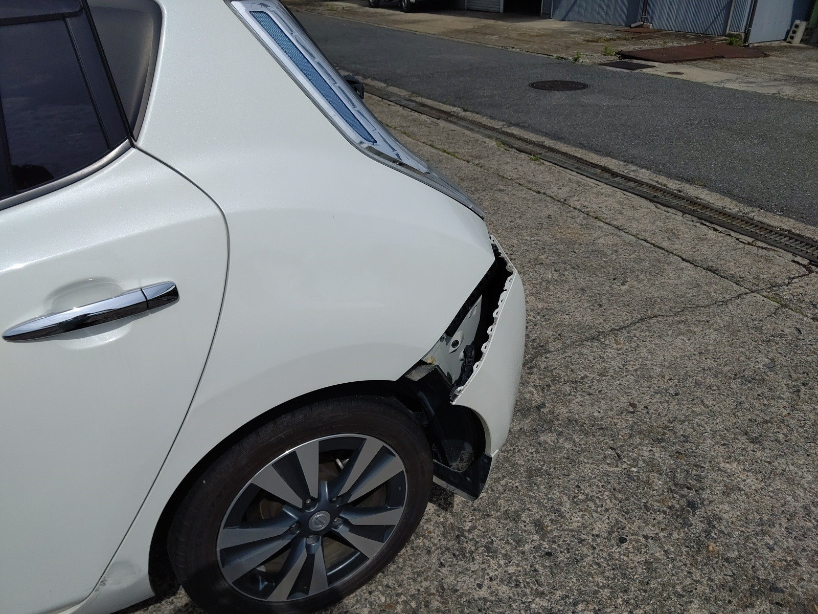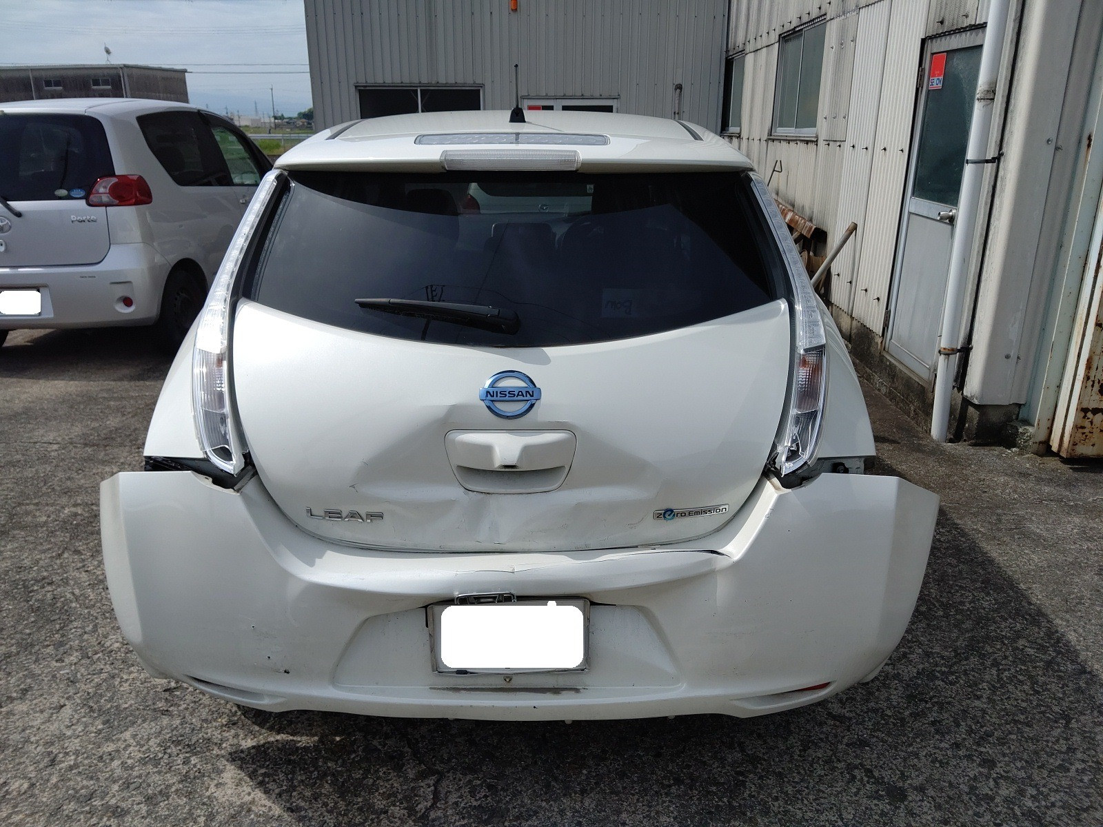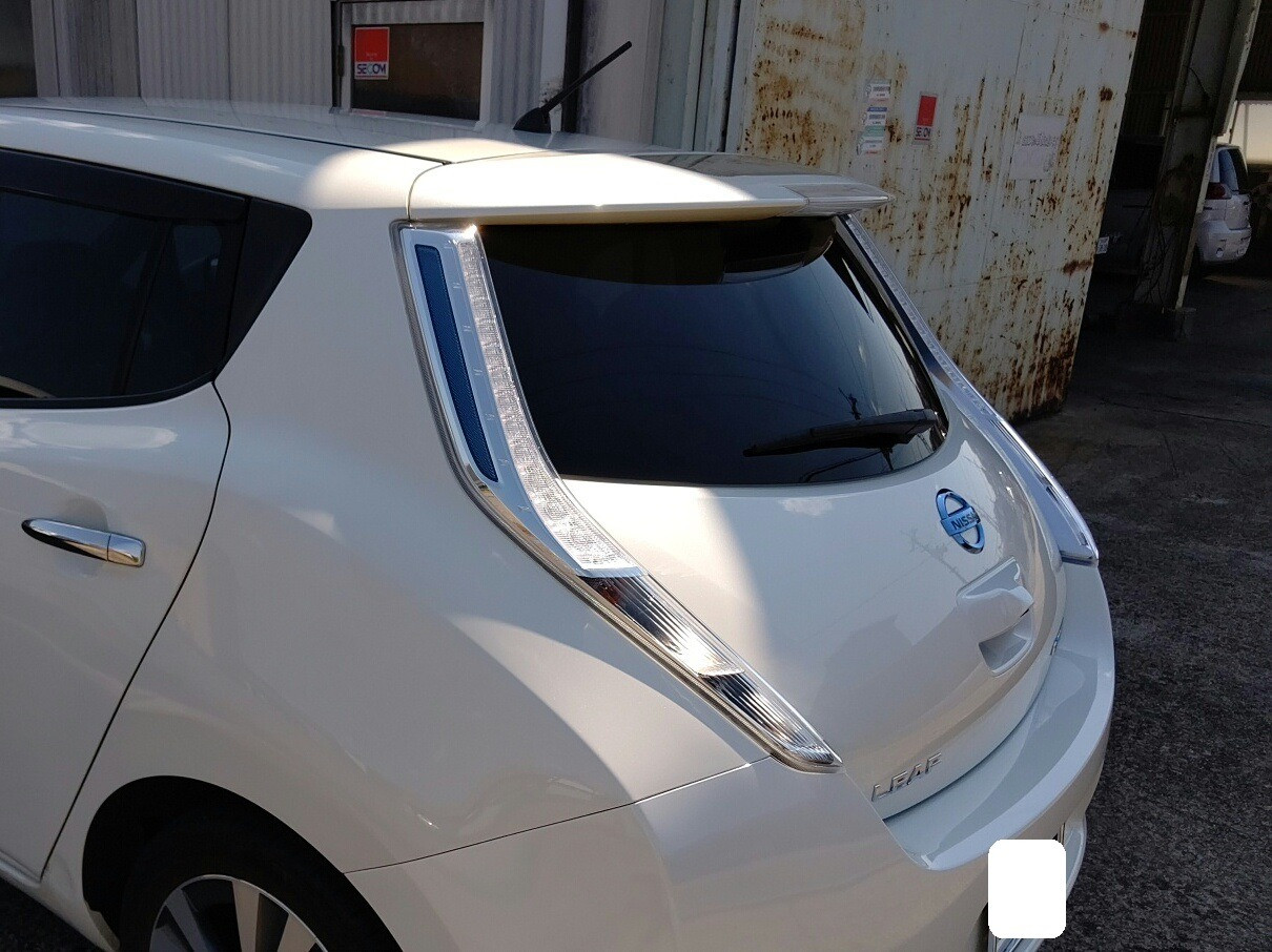 大和郡山市での車の鈑金、塗装は【マスダモータース】で 2020/06/01 日産 リーフ AZE0 鈑金 塗装 今回は日産 リーフの鈑金、塗装です。 お客様が信号待ちをしていて青に変わったので発信しようとしたら・・・後ろから追突されたとの事。 事故対応もちゃんとしてくだっさており、相手保険会社から100:0で代車も用意してくれました。 綺麗に真後ろから追突されています。 リヤ・ゲートも開けれませんでした。 右からです。 足回りまでは逝っている様子はありません。 左からです。 この様子だとリヤのパネルは入り込んでますね。 リチウム・バッテリーはフロアのちょうど真ん中にあるので、今回は問題なさそうです。 金額的には30~40万コースかな? 相手さんがちゃんと任意保険に入っていてくれて助かりましたw 実際未だに支払い能力も無いのに無保険で乗っている輩がいてますからね。 終了後の姿です。 綺麗に仕上がりましたw 綺麗に仕上がっているとお客様も喜んでくださるので修理屋冥利に尽きますw 今の車は潰れる事で衝撃を吸収するので、色んな所に影響が出ます。 最終チェックをしたら納車して終了です。 (思ったより酷かったので計算したら68万掛かりました・・・保険は大事です)