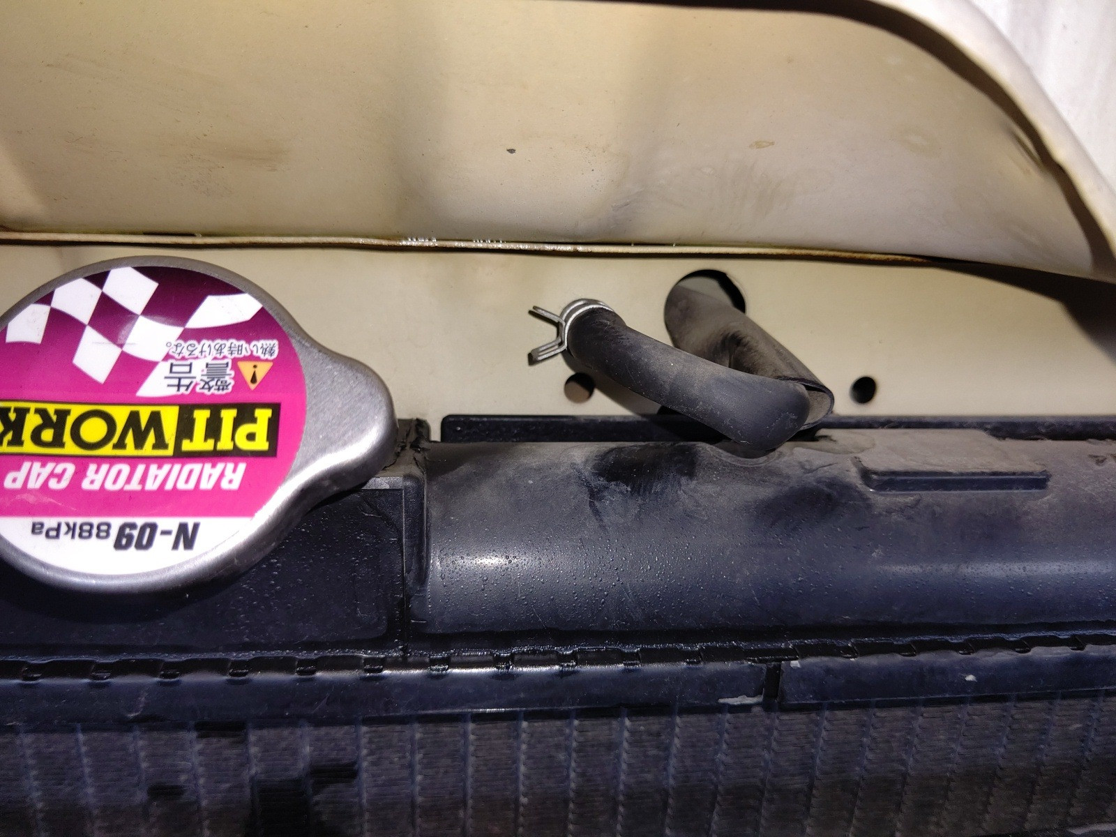 大和郡山市での安心車検は【マスダモータース】に 2020/06/26 スズキ キャリー DD51T 車検 今回はスズキ キャリーの車検です。 畑でしか使わないので距離は3万キロしか走っていませんが、年式が平成8年式と古いので何かないか心配です。 早速リフト・アップして分解、点検していきます。 古いとゴムは劣化します。 ゴム製のブーツが割れていました。 保安基準に引っ掛かるので交換です。 プラグの状態を確認しようとプラグ・コードを外してみたら・・・ プラグ・ホールのOリングから漏れてきていました。 このOリングはヘッド・カバー・パッキンとセットになっていました。 交換できるのはコストが安く済むので助かりますw プラグも碍子が焼けてきているので交換しておきます。 ベルトも悪くなってきていたので交換です。 距離を走らない車のホイール・シリンダーは錆が酷いのをよく見かけます。 最近のアルミ製はそうでもないですが、鉄の鋳物製は車検毎にバラシてホーニングしています。 カップ・ゴムが当たる部分もまだ使える状態なので、このままオーバーホールしてしまいます。 最後に水とオイルを交換しますが、コイツはエンジンが真ん中にある為水のエア抜きにコツがいります。 水を抜いた後二ヵ所あるエア抜きプラグを外して、水が漏れてきたら取り付けます。 一か所はラジエター・キャップのすぐ横。 もう一か所がエンジン側のアッパー・ホースのハウジングに付いてある頭8mmのボルト。 水が漏れてきたらプラグを取り付けて、満タンにしたらラジエター・キャップを付けて暖気します。 ファンが回るまで暖気したら一度冷やします。 最後に再度水の量を合わせて終了です。 作業が済んだら計測、陸事で書類を貰って終了です。 因みにこの車・・・ エアコンが付いていない為、この時期は中々にしんどいですw