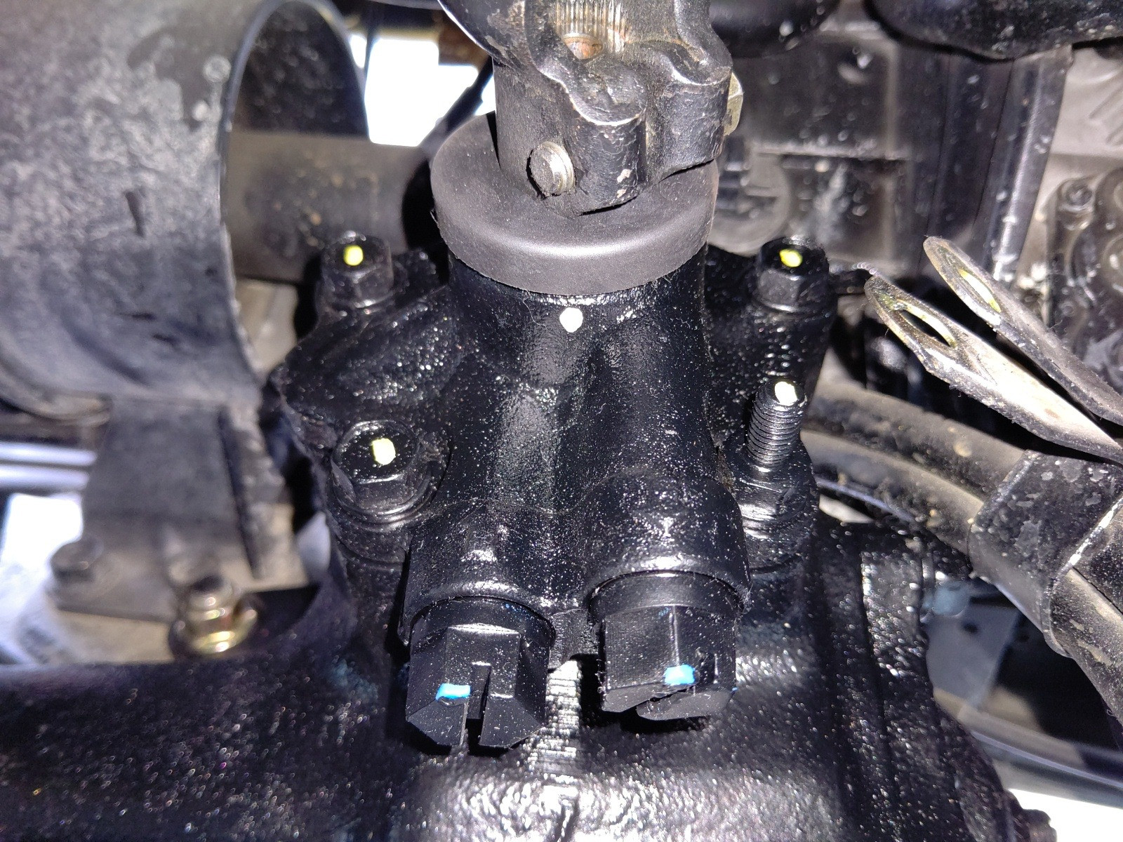 大和郡山市での車の修理は【マスダモータース】で 2020/07/01 いすゞ エルフ NKR69CAE パワステ修理 今回はいすゞ エルフの修理です。 全体的にオイル漏れが発生しており、内部トラブルによりオイルの吹上、鉄粉の発生と重症です。 近くなのでオイルを足しながら何とか持ち帰りました。 構成はややこしくありませんが、状況が状況なのでポンプ、ギヤ・ボックスの交換になります。 勿論交換と言ってもコストと時間を考えてリビルト品を使います。 こちらはポンプ。 ポンプは一部ボルトがかなり外しにくいですが・・・ 工具があればアプローチも難しくありませんw こちらギヤ・ボックス。 中々に重いので注意深く作業をします。 ピット・マン・アームは外れた状態でしたので、こちらで取り付けます。 ギヤ・ボックスを取り付ける際に一番気を付けなければならないのが、ギヤ・ボックスのセンター位置をしっかり出しておいてハンドルを真っ直ぐの位置で取り付けることです。 ハンドルが回転していたりすると・・・ エア・バック付きなら配線が切れます。 ギヤ・ボックスのセンター位置がズレていると、左右の切れ角が変わったりします。 なので印を付けて、ハンドルを紐で固定したりして取り付けます。 写真は取り付けた後なんで位置は変わってますよw ドラック・リンクのブーツも割れていたので、ついでに交換しておきます。 タンク周りも漏れていたので交換です。 因みに鉄粉が出ていたので組み付け作業前にラインを清掃しておきました。 そうしないと折角組んだのに再トラブルの原因になりますので。 さて、組み付け終わったらオイルを入れてエア抜きをします。 全ての作業が終わったら確認作業です。 しばらくアイドリングで置いておきましたが吹き上がってきません、走っても問題ありませんでしたのでオイルのかかっていた場所を掃除して終了です。