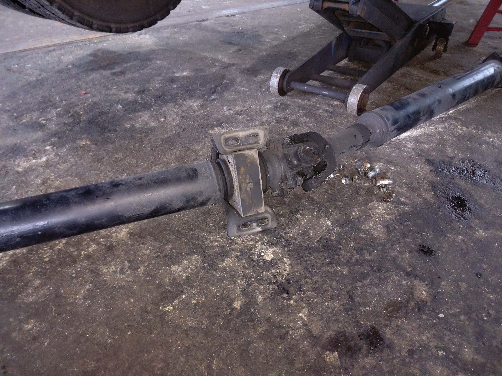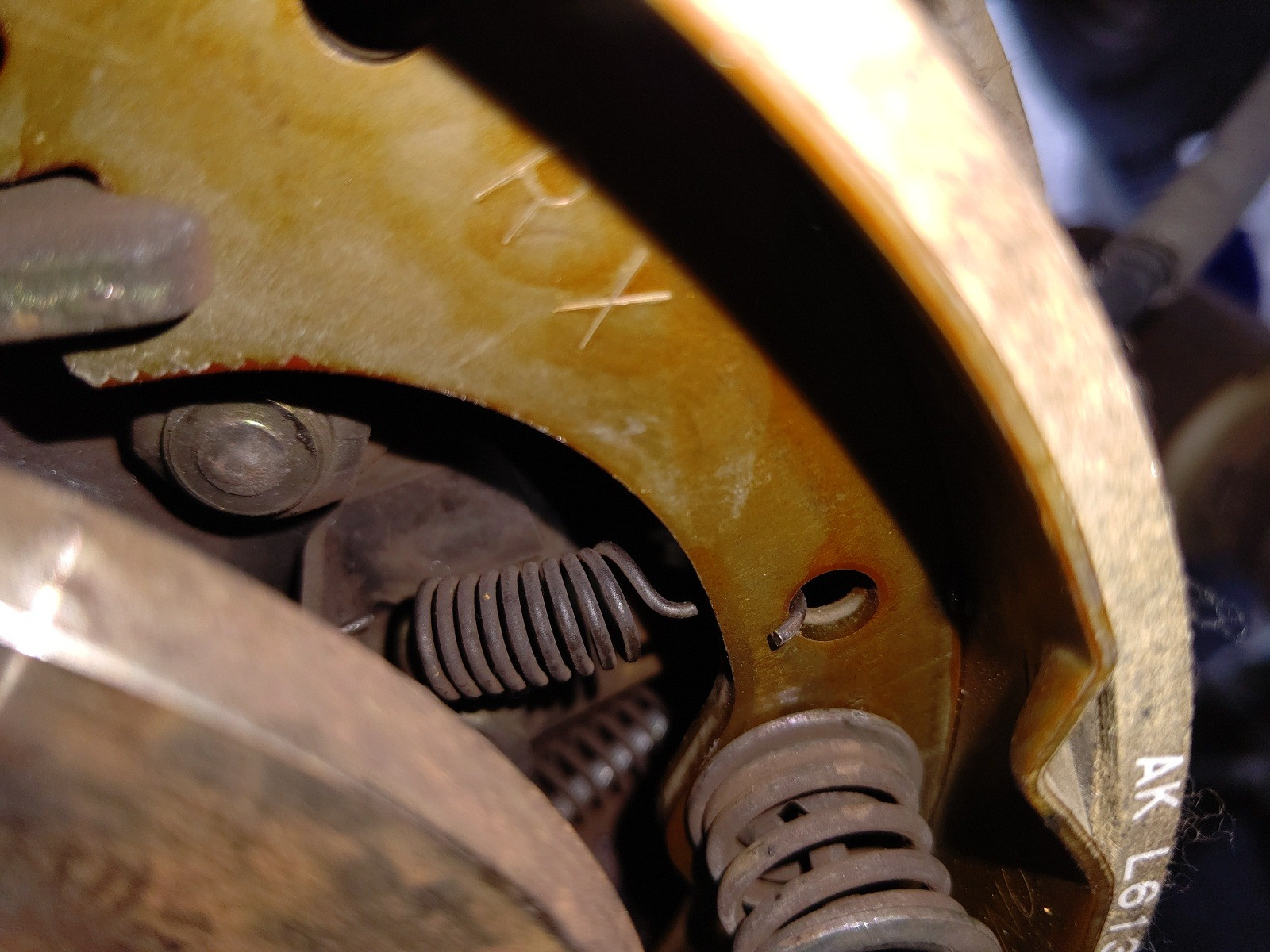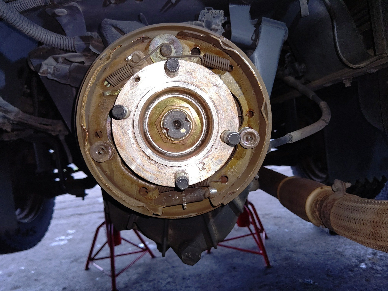 大和郡山市での車の修理は【マスダモータース】で 2020/07/10 いすゞ エルフ NPR72LAV サイド・ブレーキ修理 今回はいすゞ エルフの修理です。 置き場で止めていたら動かなくなったと電話がありました。 現状を確認に行くと・・・ どうもブレーキが効きっぱなしの状態になっていました。 車のサイズがサイズなだけにレッカーでの移動になりました。 リヤのシャフトを抜いたら問題無く動いていたので、どうもサイド・ブレーキが効きっぱなしの状態のようです。 早速リフト・アップして分解していきます。 サイド・ブレーキが効きっぱなしなんでプロペラ・シャフトを外すのも一苦労です。 何とかドラムも外すことが出来ました。 一度外してしまえば、そのまま組み付けても普通に回ります。 ??? ドラムは良くない状態でした。 どうもライニングが張り付いていたようです。 最近雨が酷かったですし、深い水たまりを通過して水が入ったのかも知れません。 ドラムを綺麗にしてライニングも交換していきます。 組み付ける上で・・・ このライニングを引っ張っているスプリングを付ける作業が上手くいかなくて、ちょっとイラっとしてしまいますw ちゃんと回転するのでプロペラ・シャフトの取付も大分と楽ですw 組み付けたらドラムの開いてあるこの穴で調整します。 サイド・ブレーキのレバーを引いて一度ライニングの位置をつけて再度調整します。 その後は一度走行、引きずり等ないか確認します。 念のためもう一度手で回したりして問題なかったので納車しました。 車は何処をどう走ったかでも問題が発生したりと色々と経験させてくれます。