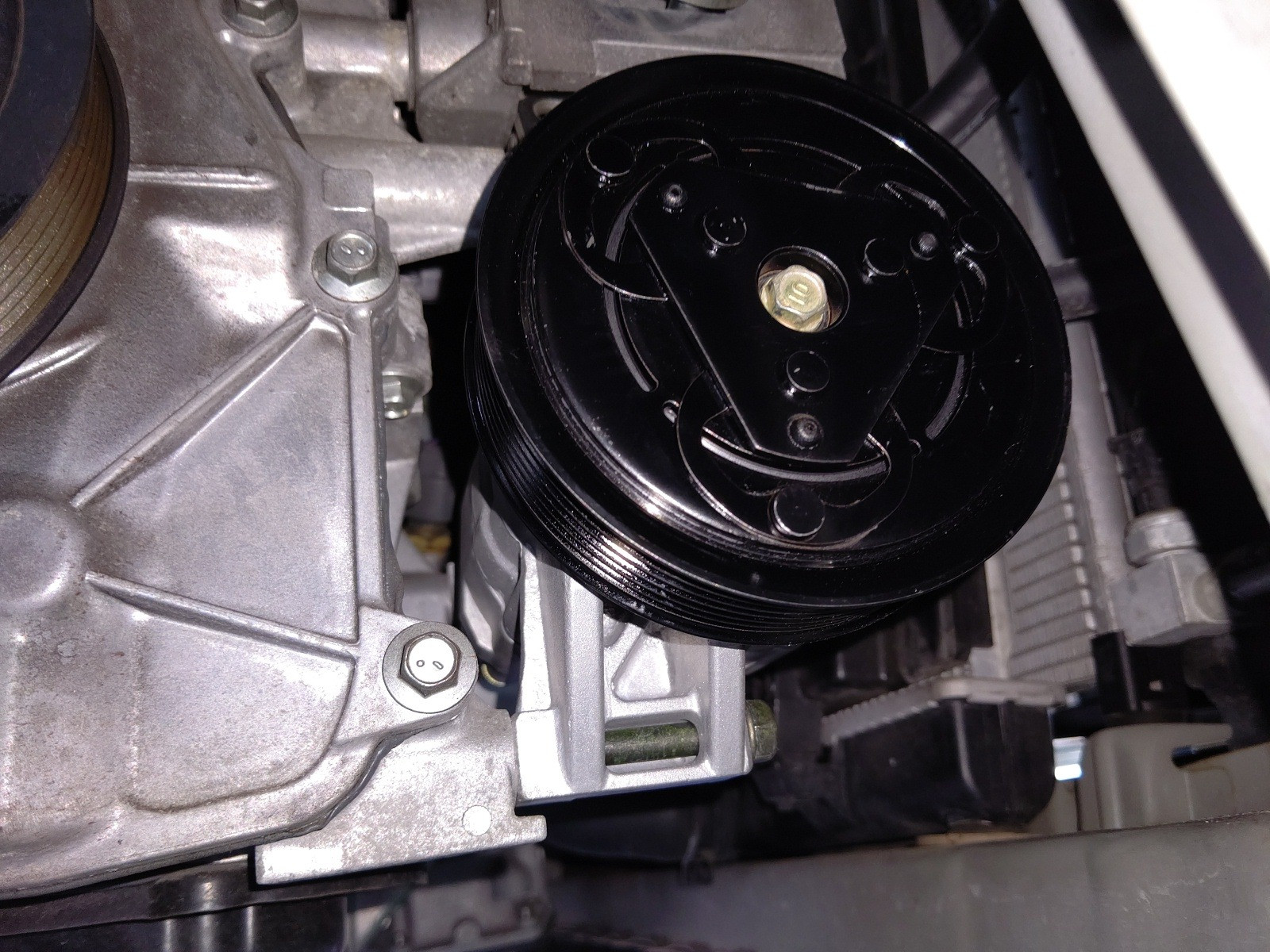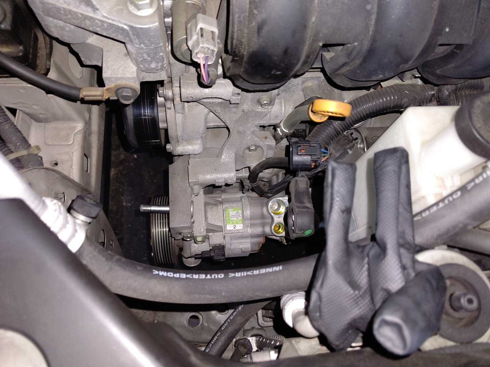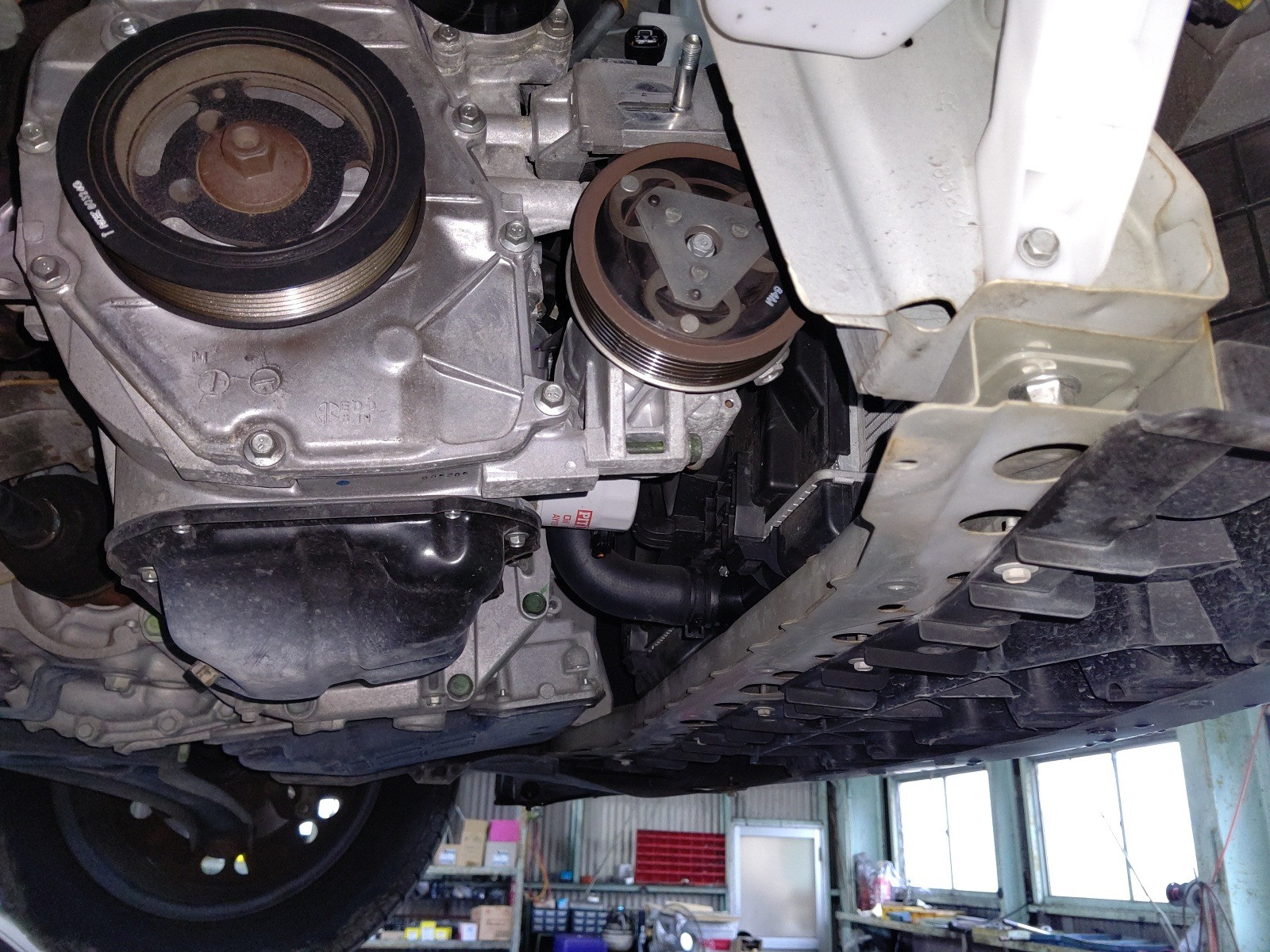 大和郡山市での車の修理は【マスダモータース】で 2020/07/15 日産 ティーダ C11 エアコン修理その他 その1 今回は日産 ティーダの修理です。 突然エアコンが効かなくなったとの事。 早速確認していきます。 現状エアコンを入れてもコンプレッサーが入りません。 先ずはゲージ・マニホールドを繋いでみます。 ガスは入っています。 どうも電気関係のようです。 ファイネスで回路図をとって見ていきます。 どうやらIPDMというパーツに問題があるようです。 外して確認しますとヒューズが飛んでいたので交換してみましたが、電気は流れてきませんでした。 内部のリレーに問題があるようですが、交換不可になっておりIPDMをASSY交換しました。 コンプレッサーの単体テストもしましたが、クラッチが入りませんでした。 マグネット・クラッチ不良のようです。 プーリーも音が出ているようです。 走行距離等も鑑みてコンプレッサーをリビルト品で交換します。 オルタ・ネーターを外さなくても作業できそうでしたが、時間もそれ程伸びませんし作業スペースを確保したかったので取り外します。 これでホースの脱着が確実に行えます。 後は外した逆の手順で取り付けていきます。 後は真空引きをしてガスを入れていきます。 さてちゃんと作動するか? ・・・ はい!エアコンちゃんと作動しましたw 今回は珍しい二ヵ所同時でトラブルが起きました。 しかし、故障は常に一か所だけとは限りません。 修理は難しいですが、治ったら嬉しいものですw さてこの車エアコン以外にもう一つ作業があります。 それは次のネタにしますw