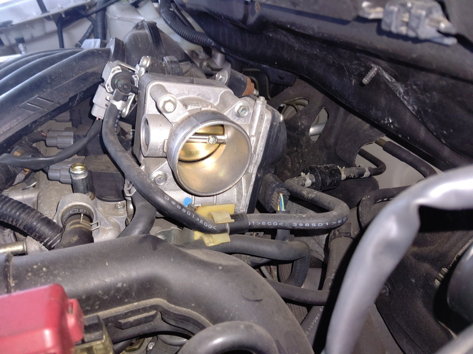 大和郡山市での車の修理は【マスダモータース】で 2020/07/17 日産 ティーダ C11 エアコン修理その他 その2 今回は日産 ティーダの修理の続きです。 前回はエアコンが効かないのを修理しましたが、この車は距離のせいでアイドリングが低くなってきていました。 原因はスロットル・ボデーがカーボンで汚れているからでした。 前回の修理でバッテリーも外していますので学習も行います。 エア・エレメントのケースから出てるホースを外してしまうと・・ スロットル・ボデーの弁の周りの汚れがよくみえます。 堆積したカーボンで段ができる位でした。 昔のエンジン・コンディショナーを現在の電気式のスロットル・ボデーに使うとトラブルが発生します。 そこでコイツを使用します。 ワコーズのクリーナーはそういう問題が発生しない使用なんで安心です。 吹き付けてブラシで磨きウエス等で拭きながら綺麗にします。 ホース等外した物を取り付けてエンジンがかけられる段階になったら学習させていきます。 先ずはスロットル全閉位置学習をします。 診断機に作業の仕方が表示されるのでラクですw 全閉位置学習が終わったらエンジンを暖気します。 暖気が終わったら吸入空気量学習をします。 診断機が無ければこういう作業ができないのが今の車です。 頭を使う事が多くなりましたねw 全ての作業が終わったら試走にいきます。 止まりかけで回転数が落ち込む等の不調も無く快適ですw エアコンも問題なかったので納車して終了です。