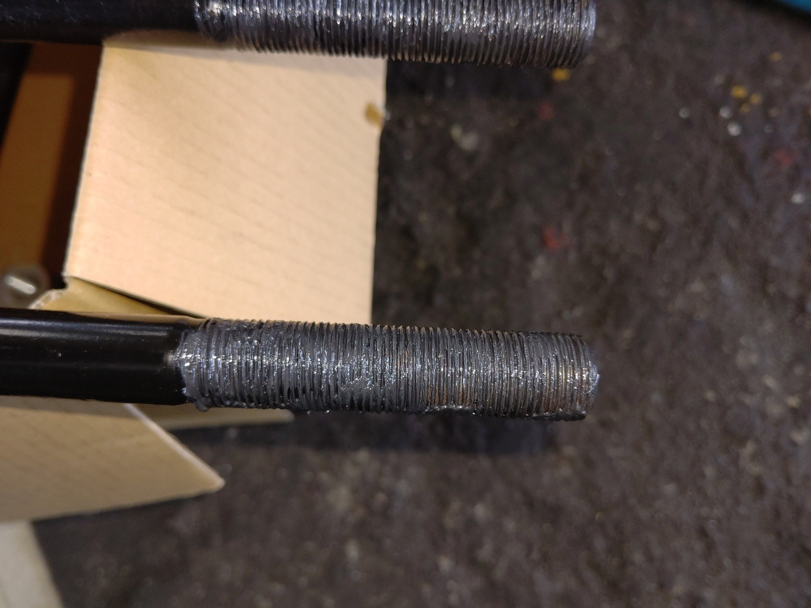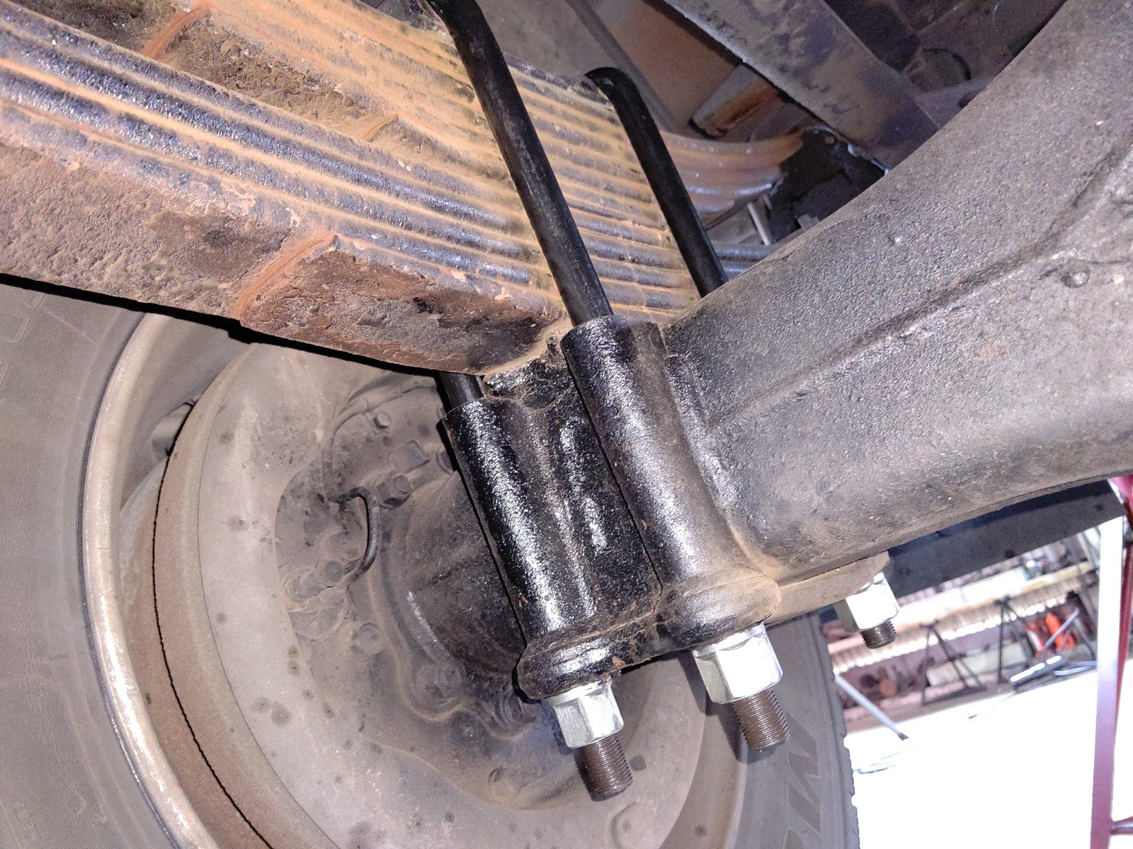 大和郡山市での車の修理は【マスダモータース】で 2020/08/01 ふそう ファイター FK61FJ Uボルト交換 今回はふそう ファイターの修理です。 前回この車の三か月点検でUボルトの緩みが発生していました。 増し締めしようとしましたが、ネジ山の負荷がかなり大きかった為交換する事にしました。 また部品の入荷タイミングが合わず、日を改めての作業になりました。 早速リフト・アップして分解します。 再度確認しましたがリーフ・スプリングの割れやヒビは確認できませんでしたので、そのまま交換していきます。 最悪切断しなければならない所ですが・・・ 大型のインパクト・レンチでようやく外すことができました。 このような状態になると外せなくなることも多いですからw 新品を取り付けていきますが、ネジ山にグリスを塗ってから取り付けます。 でないと、かなりの力で締め付けるので、ネジ山がダメになってしまうからです。 しっかりと締め付けたら一度試走に行きます。 暫く走ったら再度増し締めをして終了です。 今度は次の三か月点検よりオイル交換の方が早くくるので、その時もう一度増し締めをしてホントの終了です。
