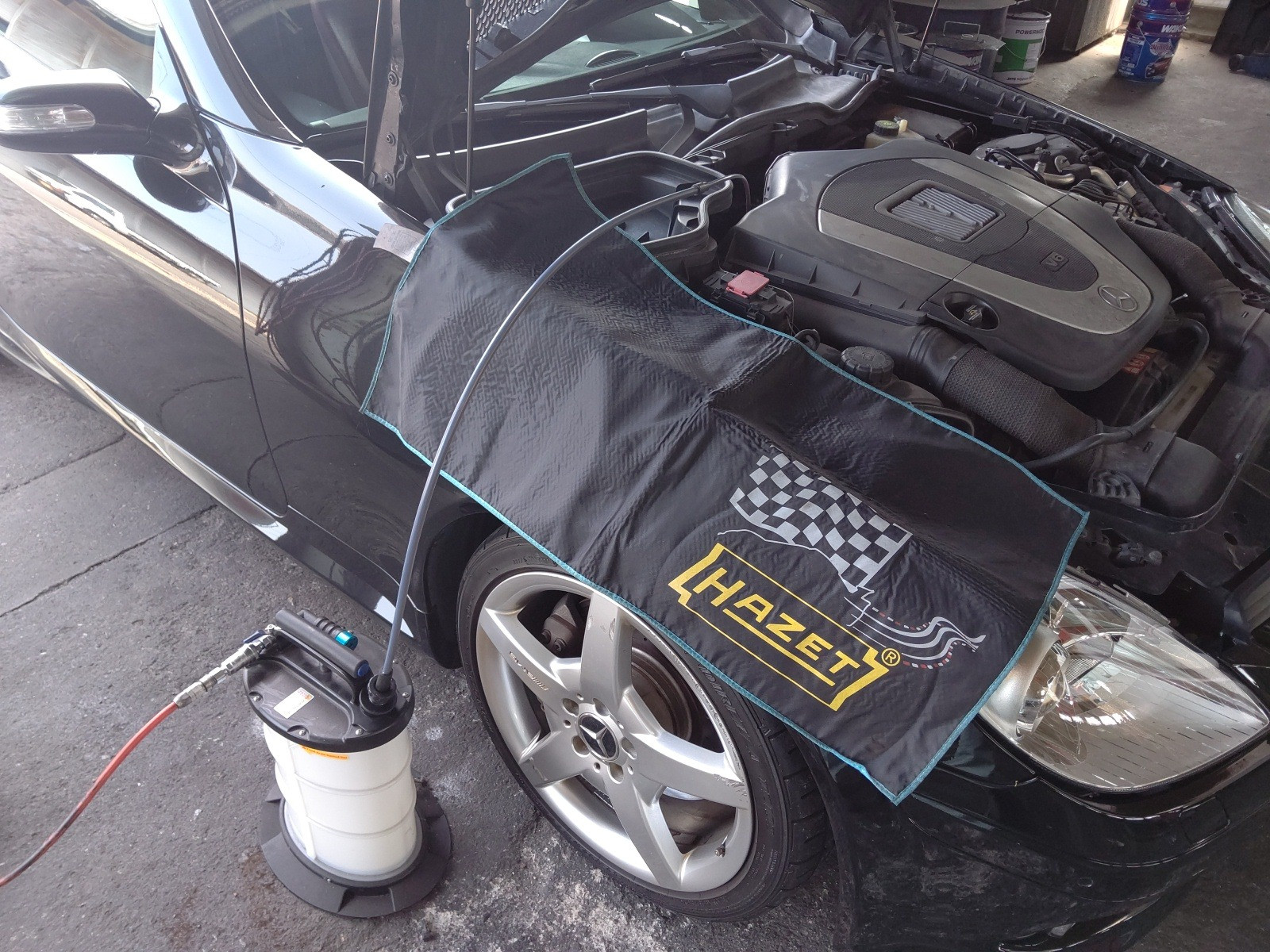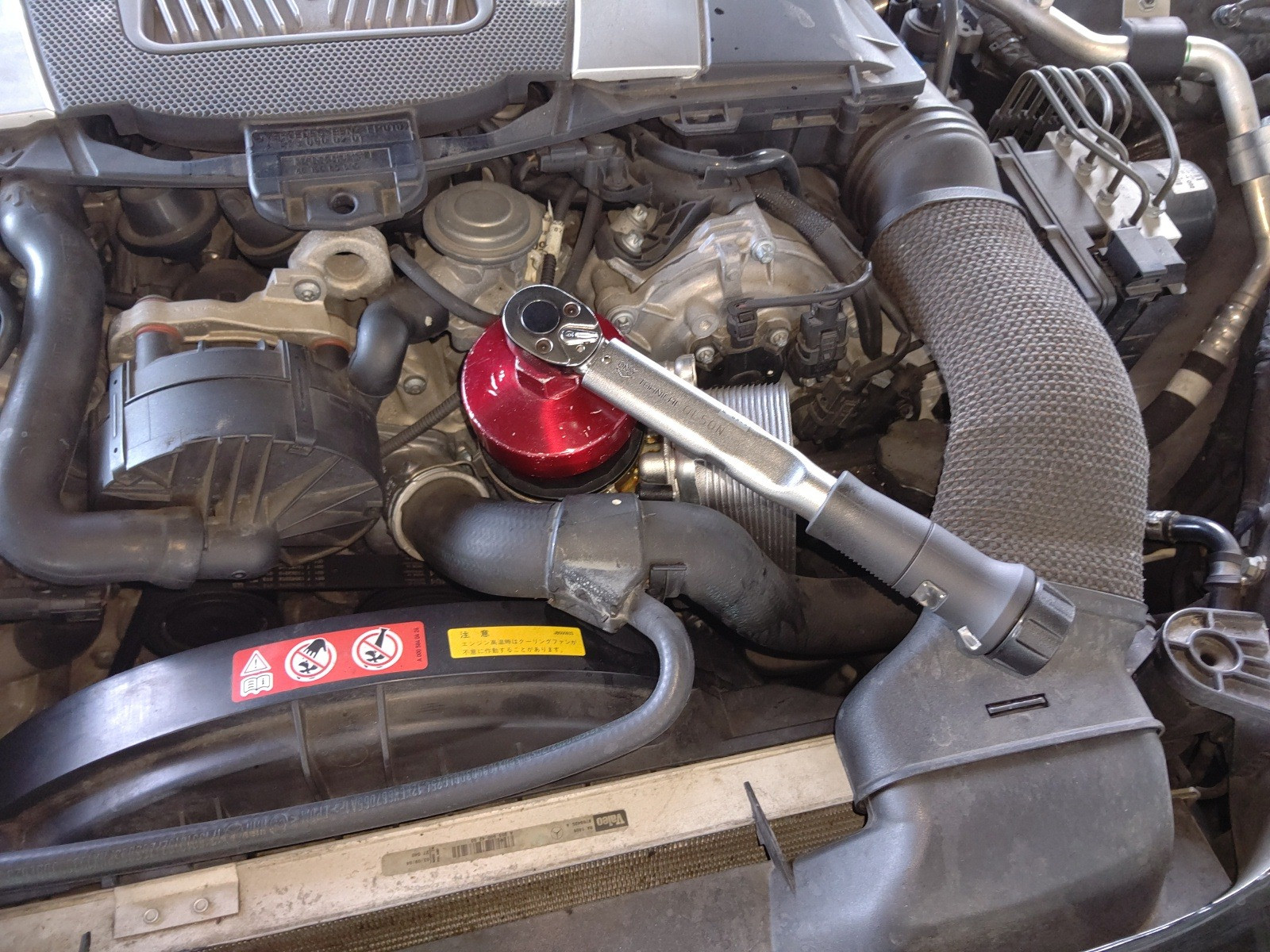 大和郡山市でのオイル交換は【マスダモータース】で 2020/08/22 メルセデス・ベンツ SLK350 オイル交換 今回はメルセデス・ベンツ SLK350のオイル交換です。 盆休みも開けたので、また仕事関係を書いていきます。 いつも来てくださるお客様の作業です。 この車はリフト・アップせずに作業を行います。 ボンネットを開けてエンジンの後ろ側を見るとオイル・レベル・ゲージがありますので・・・ そこからバキューム式の吸引機を用いて古いオイルを抜いていきます。 SLK350はこれでキレイに抜き切ることができます。 ドレン・コックのネジ山トラブルも減るので有難いです。 オイル・エレメントも交換です。 樹脂製のケースを使ってるやつはトルク・レンチ必須ですよw オイルはいつものWAKO'S製4CT-Sです。 お客様からの評判も良いので、売り手のこちらも安心ですw