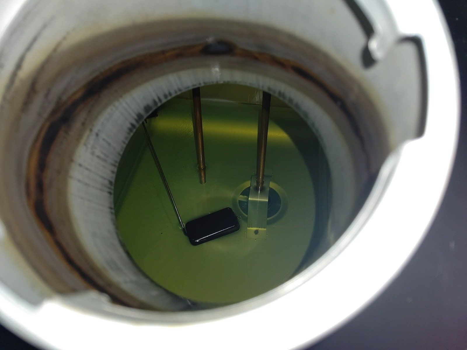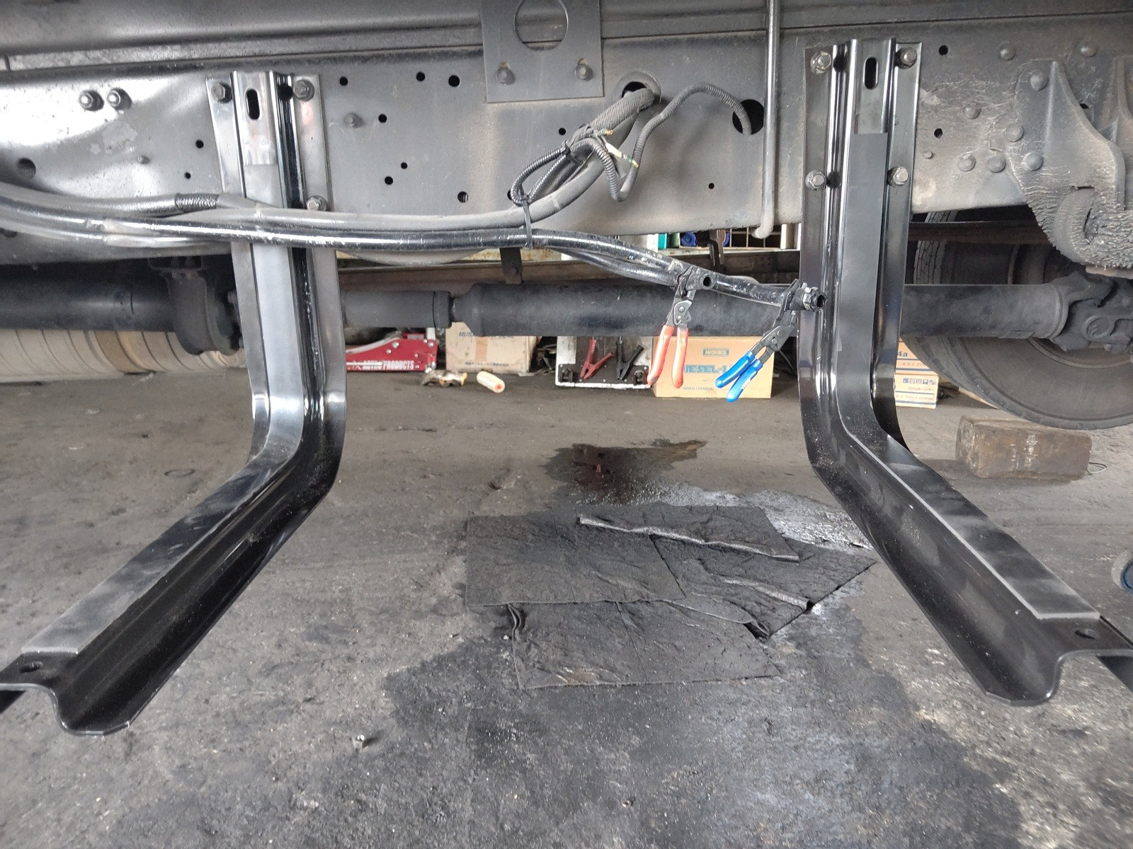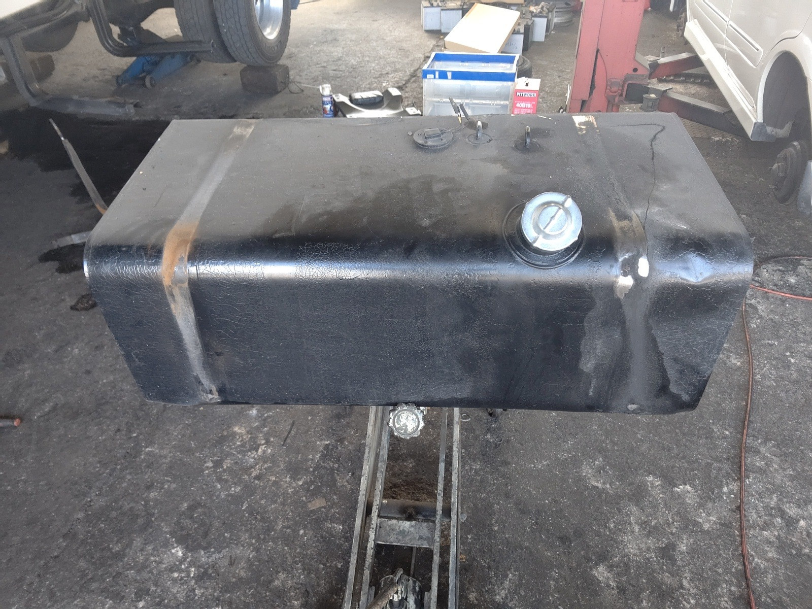 大和郡山市での車の修理は【マスダモータース】で 2020/09/28 ふそう ファイター FK61FJ 燃料漏れ修理 今回はふそう ファイターの修理です。 お客様から「オイルが漏れているから見てくれ」と連絡があり、見に行くと燃料が漏れてきていました。 随分前に当てており、そこからのようでした。 部品の段取りが付いたので、引き取って修理していきます。 サイド・バンパーを外してタンクを降ろします。 見事にステーも曲がっていました。 当たりゴムも無くなっている部分がありました。 降ろしたタンクです。 かなりの重量がある為ジャッキ等を利用します。 裏を見てみると・・・ ステーの当たりゴムが無くなっている所に当たっていた場所にクラックが入っていました。 そりゃダダ洩れにもなります・・・。 それじゃあ新しいステーを付けていこうと思ったら・・・ ボルト穴が空いていませんでした・・・。 汎用品なんでしょうね・・・穴を開ける作業が一番手間でした。 ちゃんと付いてくれたので一安心ですw 新しいタンクにはレベル・ゲージが付いていませんでしたので、古いタンクから付け替えます。 因みにこのタンクは純正ではなく、外品になります。 外品のタンクにはちゃんと電気式のレベル・ゲージを付けられますが、横にこのようなアナログなゲージが付いています。 これはイザという時に有難いですねw 組み付け終わったら燃料を入れてゲージが動くか確認します。 ちゃんと動いてくれましたし、漏れも発生していませんでしたので納車して終了です。