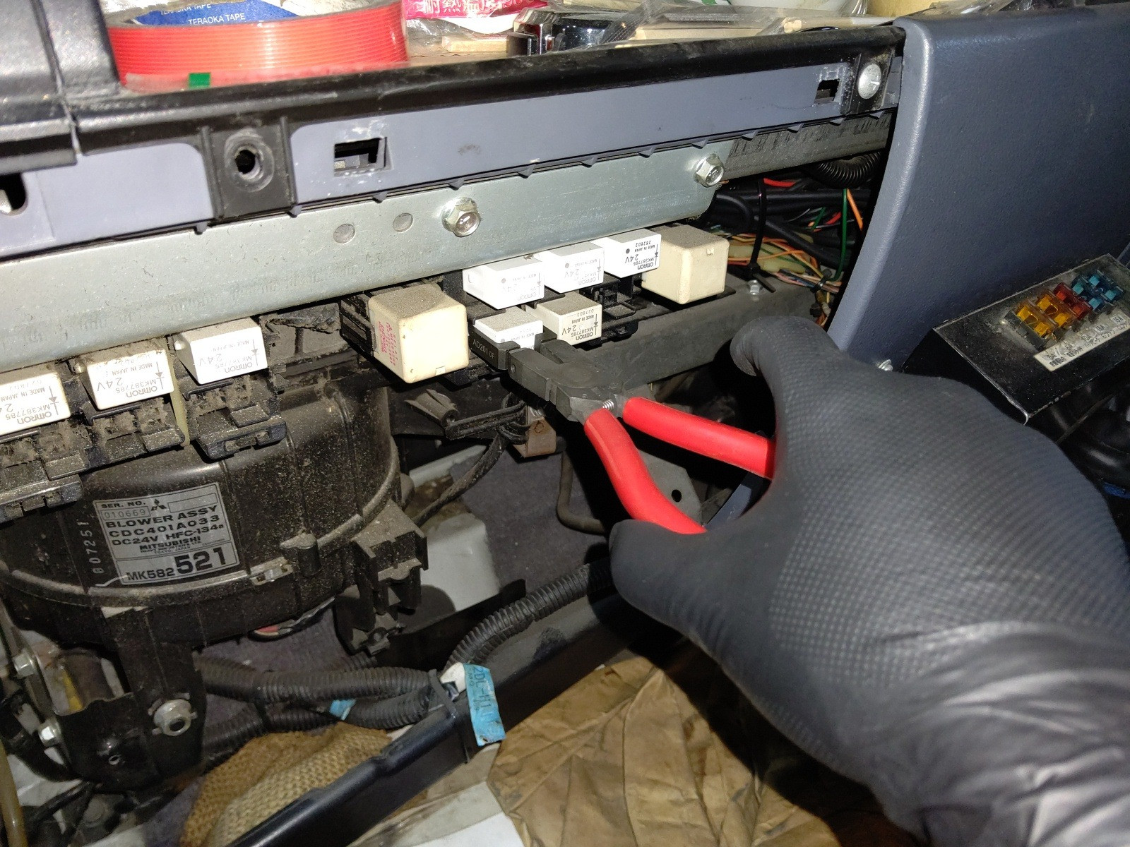 大和郡山市での車の修理は【マスダモータース】で 2020/10/15 ふそう キャンター FE82D 始動不良修理 今回はふそう キャンターの修理です。 お客様から「エンジンかけようとスタートの位置にキー回しても何も反応しない時がある、メーター周りは光ってるねんけど」という事です。 この車は一年前位にスターター・モーターを交換している車なのですが・・・ 配線図を用意して確認していきます。 現状から考えられるのは二つあるリレーです。 常に発症する訳ではありませんので、念のため両方交換で進めていきます。 スターター・モーターはエンジンの左後ろに付いています。 リレーの一つはスターター・モーターに取り付けられているので、一緒に取り外します。 先ずはバッテリーのマイナス端子を外しておきます。 スターター・モーターには常に電気が流れていますので要注意です。 上から配線カプラを一つ外したら、後は下からの作業だけで降ろせます。 スターター・モーターに付いているリレーに一本だけ・・・ すごく分かりにくい配線が来ています。 ちょっと取り回し考えて欲しかったですねw 取り外してから念のためスターター・モーターの単体テストをしてみましたが、問題なかったのでリレーを取り替えてエンジンに取り付けました。 もう一つのリレーはグローブ・ボックスを取り外した所にあるリレー・ボックスに付いています。 これも交換し作動テストをします。 この時は問題無かったので納車して暫く様子をみてもらいました。 確認の電話を入れてみると、以来症状は出ていないとの事なので作業は終了になりました。