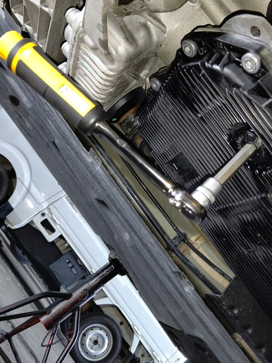大和郡山市での車の修理は【マスダモータース】で 2020/10/19 BMW X3 WX30 ATF交換 今回はBMW X3のATF交換です。 最近の車はゲージ無しでの交換になりますので手順を確認しながら交換していきます。 まずはオイルを抜くのにドレン・コックを緩めます。 ・・・が樹脂製のドレン・コックが緩まず10mmの六角穴が舐めました。 しかし、オイル・パンは交換しますので力技で取外しましたw 次にオイル・パンを交換します。 何故オイル・パンごと交換かと言いますと・・・ ストレーナーと呼ばれるフィルターがオイル・パンに固定されていて一緒に交換しかでいないからです。 お陰で結構な金額になります。 環境を謳うなら無駄な部品が出ないようにして欲しいのもです、コストも馬鹿になりませんしね。 横のコックから新油をある程度入れます。 その後手順に従ってエンジンを回して各シフト位置にオイルをまわしていきます。 その後指定の油温でドレンから垂れてくるまで量を調整して暫く走ってきます。 帰ってきたら一旦冷却し、再度同じ工程を繰り返して終了です。 流石に新品のドレン・コックは緩んでくれましたねw 締付はトルク・レンチで行います。 樹脂製品は特に気を使いますね。 今回ATFはWAKO'S製プレミアムSを使用しました。 純正はリッター¥10000超えますからね・・・。 安定のWAKO'S製で車種対応しているなら安心ですw