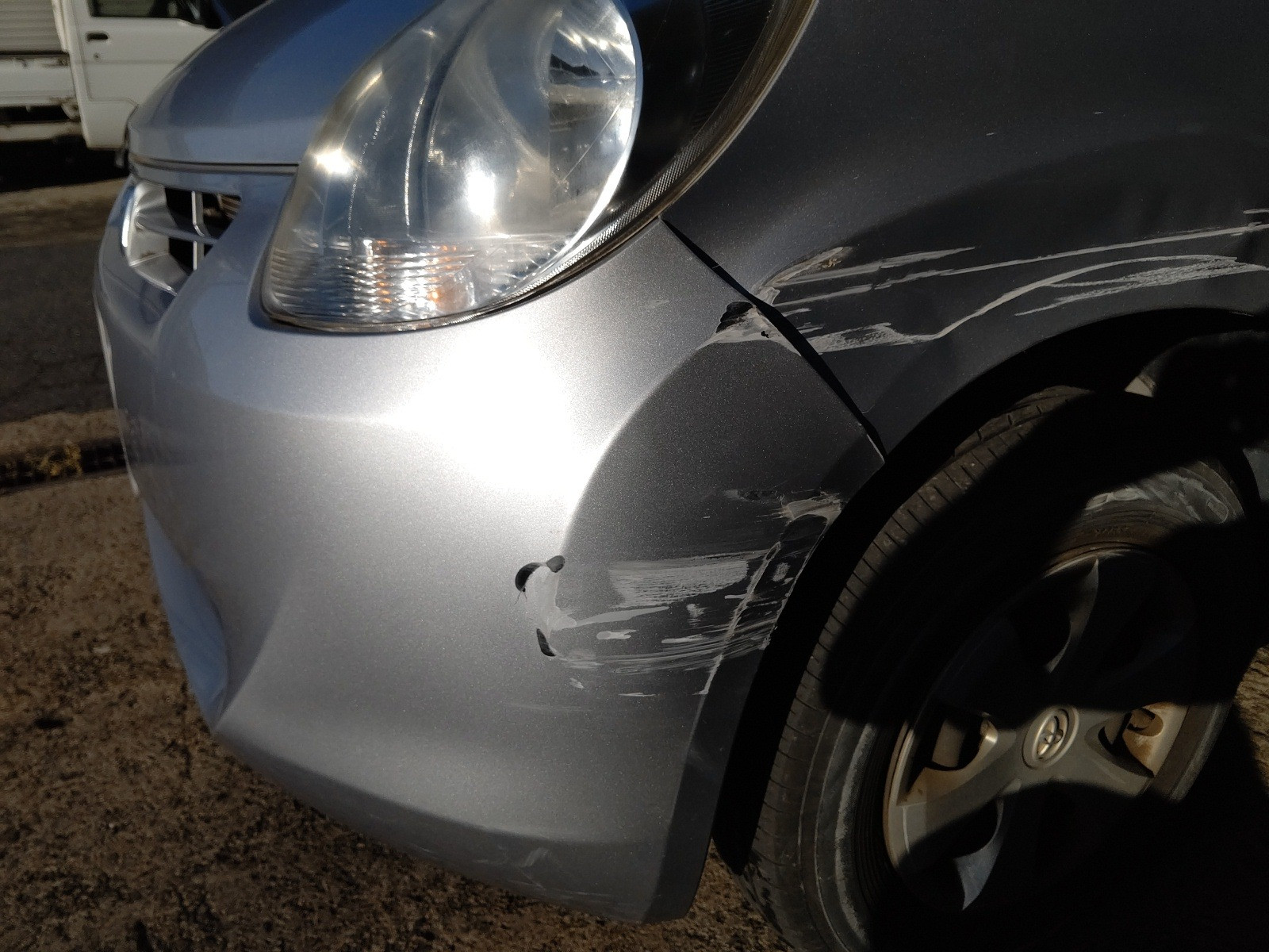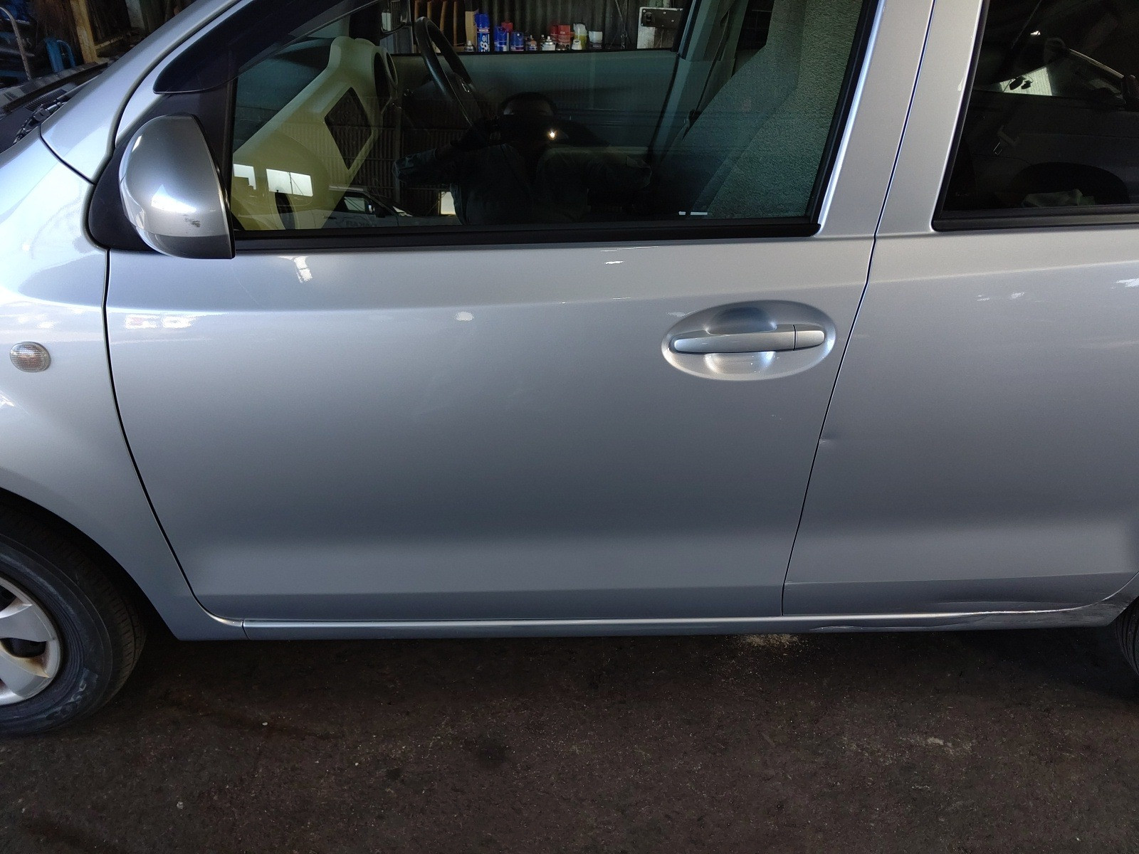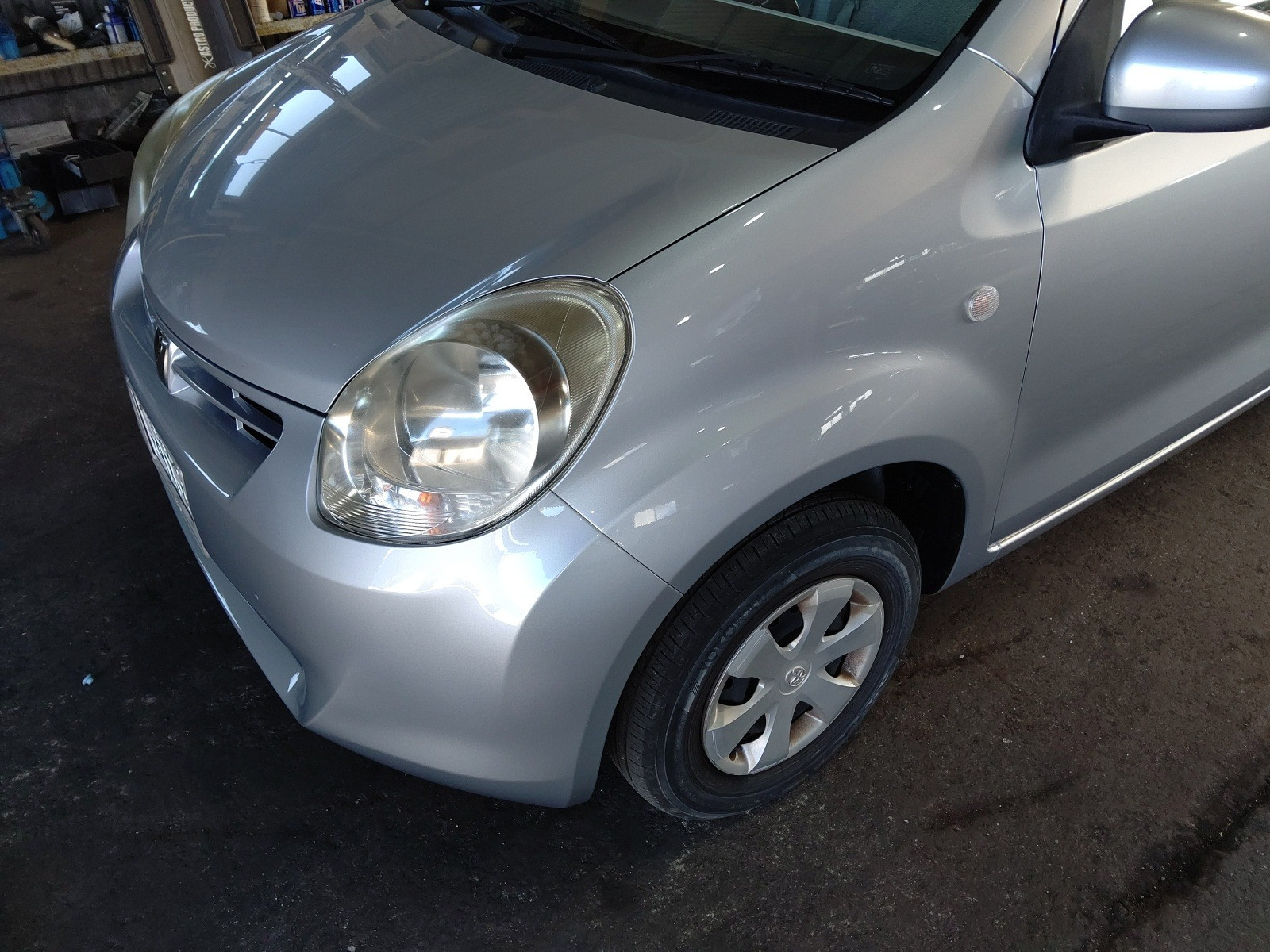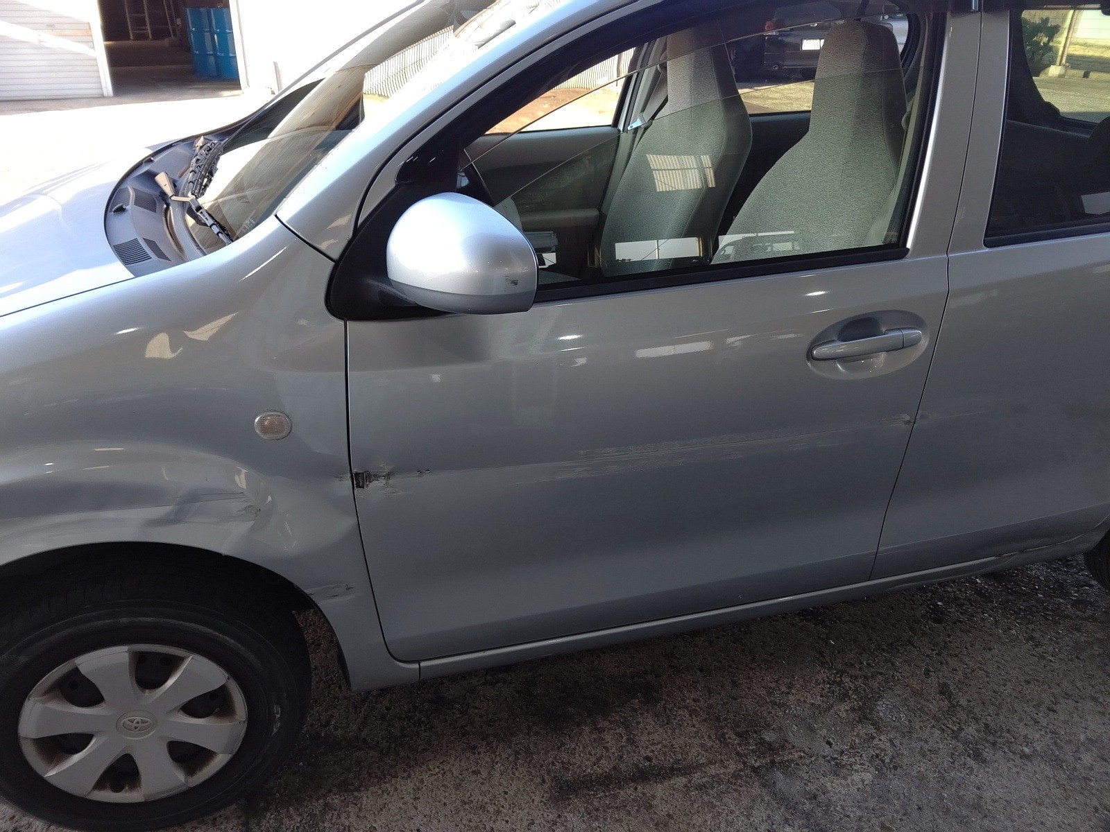 大和郡山市での車の鈑金は【マスダモータース】で 2020/11/02 トヨタ パッソ KGC30 鈑金 今回はトヨタ パッソの鈑金です。 お客様から「車当てたから直して」と。 状況を聞いて単独事故だったので一安心w 保険に車両が付いていなかったので実費での修理になりました。 事故の範囲は中々に広いです。 フロント・バンパーからフェンダー・・・ フロント・ドア、リア・ドアまでいっています。 実費という事もあり、リヤ・ドアの部分は余ったラッカーで筆塗で納めることになりました。 中古部品も探してみましたが、無かったり程度が悪かったりで・・・新品交換で作業しました。 出来上がりです。 色も位置合わせもバッチリですw リア・ドアも一部は筆塗でいきましたが、リヤ・フェンダー等当たっている部分がかなりあった為それらも筆塗しておきました。 簡単な筆塗ならサービスですw 因みに運転手は高齢の方ですので少し心配です。