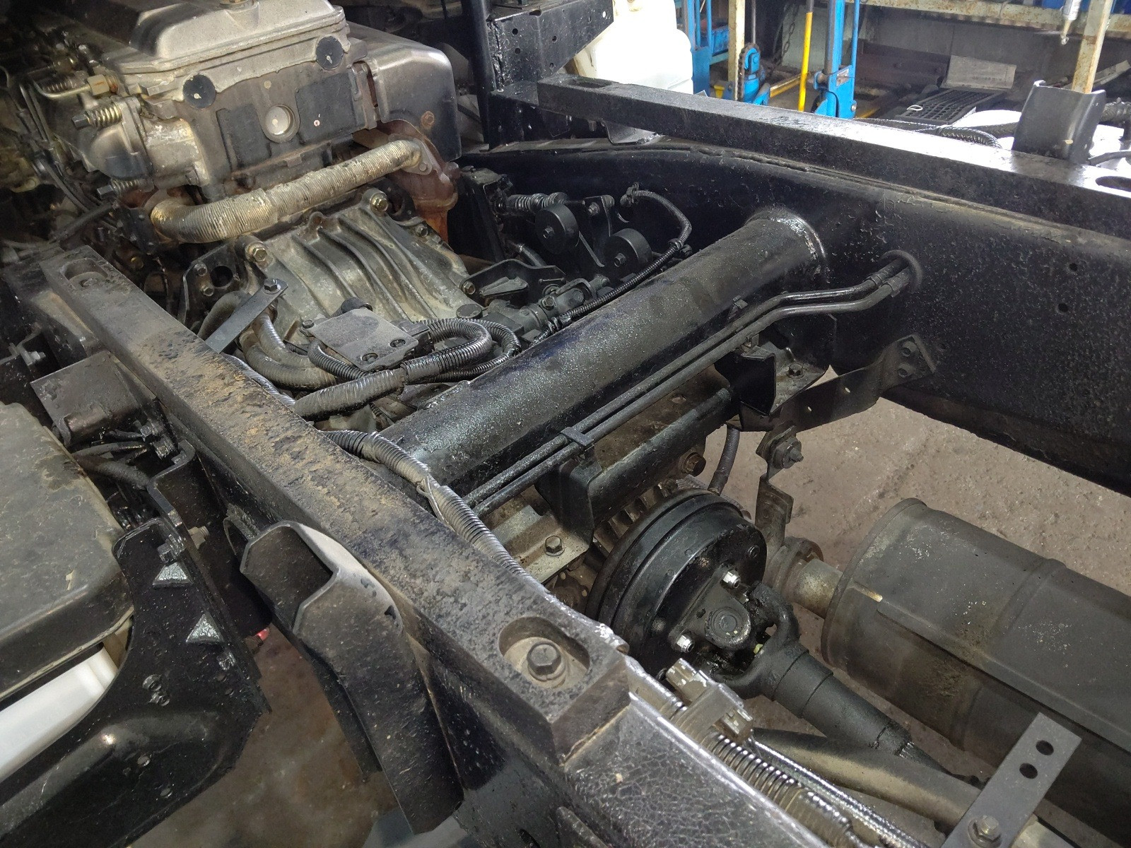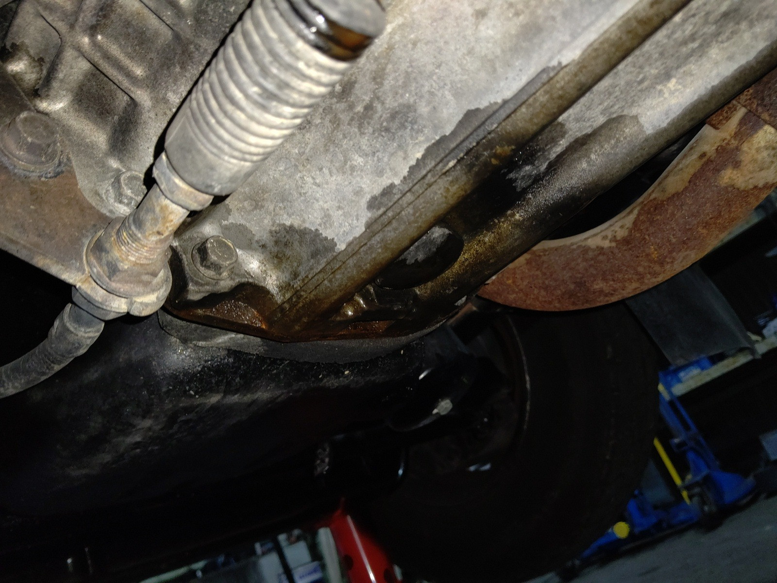 大和郡山市での車の修理は【マスダモータース】で 2020/11/05 ふそう キャンター FE71EB クラッチ修理 今回はふそう キャンターの修理です。 最近車検を受けたトラックなのですが・・・ お客様から「突然クラッチ・ペダルが動かなくなった」という電話があり至急引き取りに。 ペダルを何度か踏んでみると・・・ 突然ペダルがスカスカに・・・ クラッチ・ペダルやクラッチ・マスター当たりを確認しますが、問題はありません。 これは・・・ こんな所からオイルが漏れてきてる・・・。 こんな所からも・・・ これはレリーズ・ベアリングとレリーズ・シリンダーが一体となったパワー・シリンダーが砕けたようです。 早速分解していきます。 ダンプなので作業性は抜群ですw 先ずはダンプ・ワイヤーを外します。 動くとダンプが落ちてきますので作業中は気を付けておきます。 配線は左側に纏まっているので外しておきます。 ここ、荷台がダンプ以外だとやりにくいです。 右側のワイヤーも外していきます。 排気ブレーキのバタフライもミッションを降ろすのに邪魔になるので外しておきます。 向き考えて付けてくれたら良いのに・・・。 プロペラ・シャフトを外し、サイド・ブレーキを分解します。 後はマウントを外し、エンジンと結合している部分のボルトを外したら、ミッションは降ろすことができます。 さて・・・ はい、中はオイル塗れです。 やっぱりパワー・シリンダーの中が砕けていました。 正直キャンターのこの構造は整備の面からみたら・・・ キツイ言い方をすれば欠陥としか思えないです、結構砕けて修理していますから・・・いい事もあるんでしょうが・・・。 なんて思いながら清掃、部品を交換し組み上げます。 作動も問題なかったので納車です。
