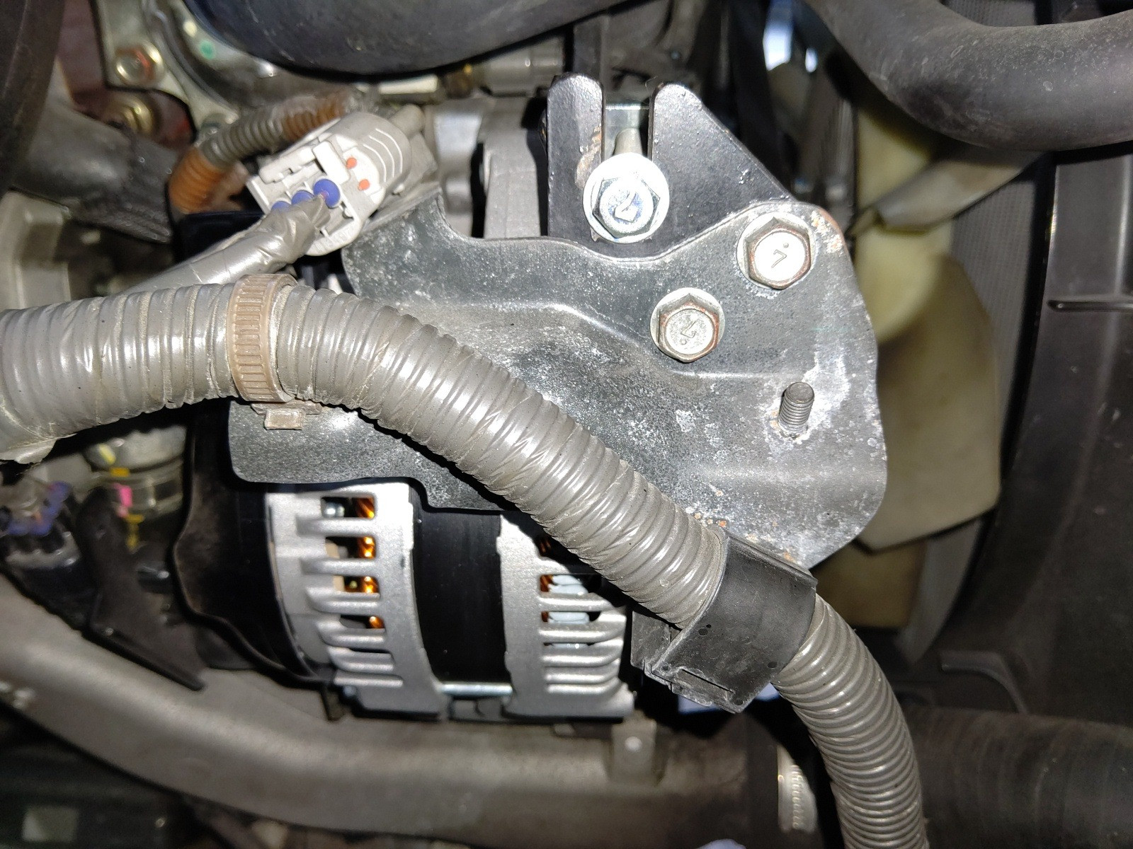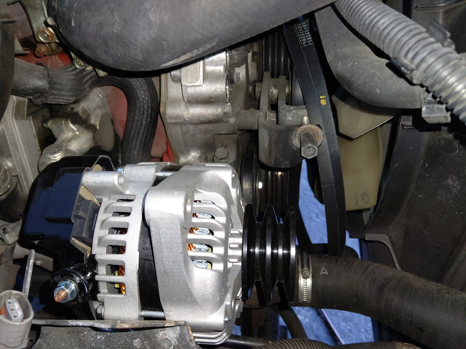 大和郡山市での車の修理は【マスダモータース】で 2020/11/21 日野 デュトロ XZU414M 警告灯点灯修理 今回は日野 デュトロの修理です。 お客様から「なんか警告灯が点灯してるから見て」と。 早速引き取りに行きます。 確かに点灯しています。 幾つか点灯していますが、この付き方はオルタ・ネーターの発電不要のようです。 確認したら、やはり発電していませんでした。 早速部品を発注して外していきます。 この手の作業では一番最初にバッテリーの端子を外しておきます。 作業ヵ所はそれ程多くはありません。 今回は順調に外せましたw リビルト品での交換になります。 取り付けていきますが、調整の軸になる長いボルトをいれるのが一番手間な作業になりましたw 外した逆の手順で取り付けていきます。 取り付けが終わったら、しっかり発電しているか作動チェックをしていきます。 問題なかったので、ラジオや時計の設定をし直したら終了です。