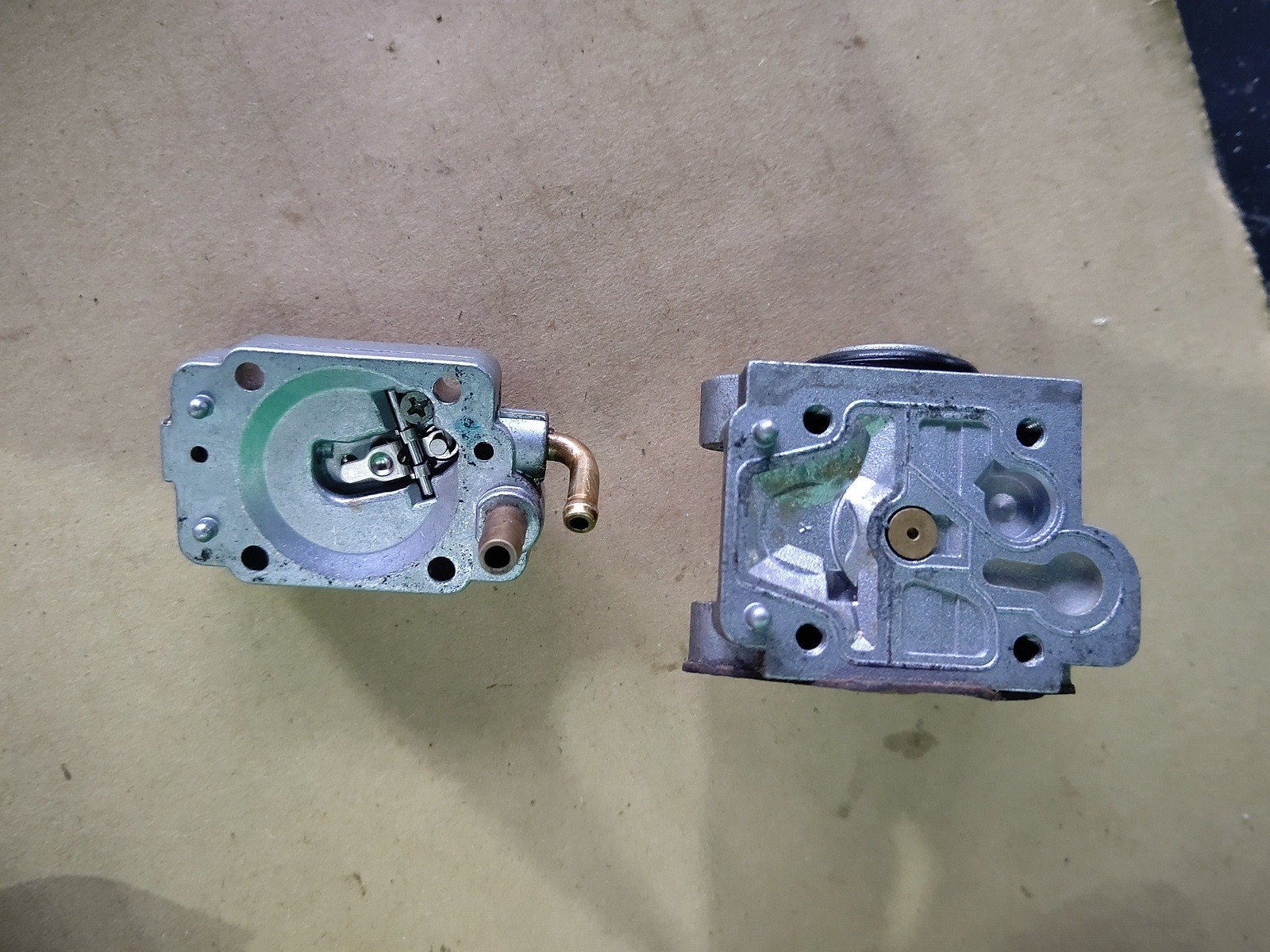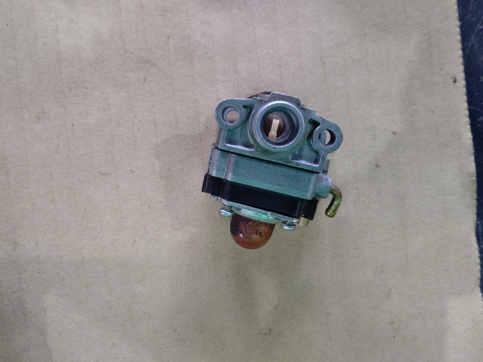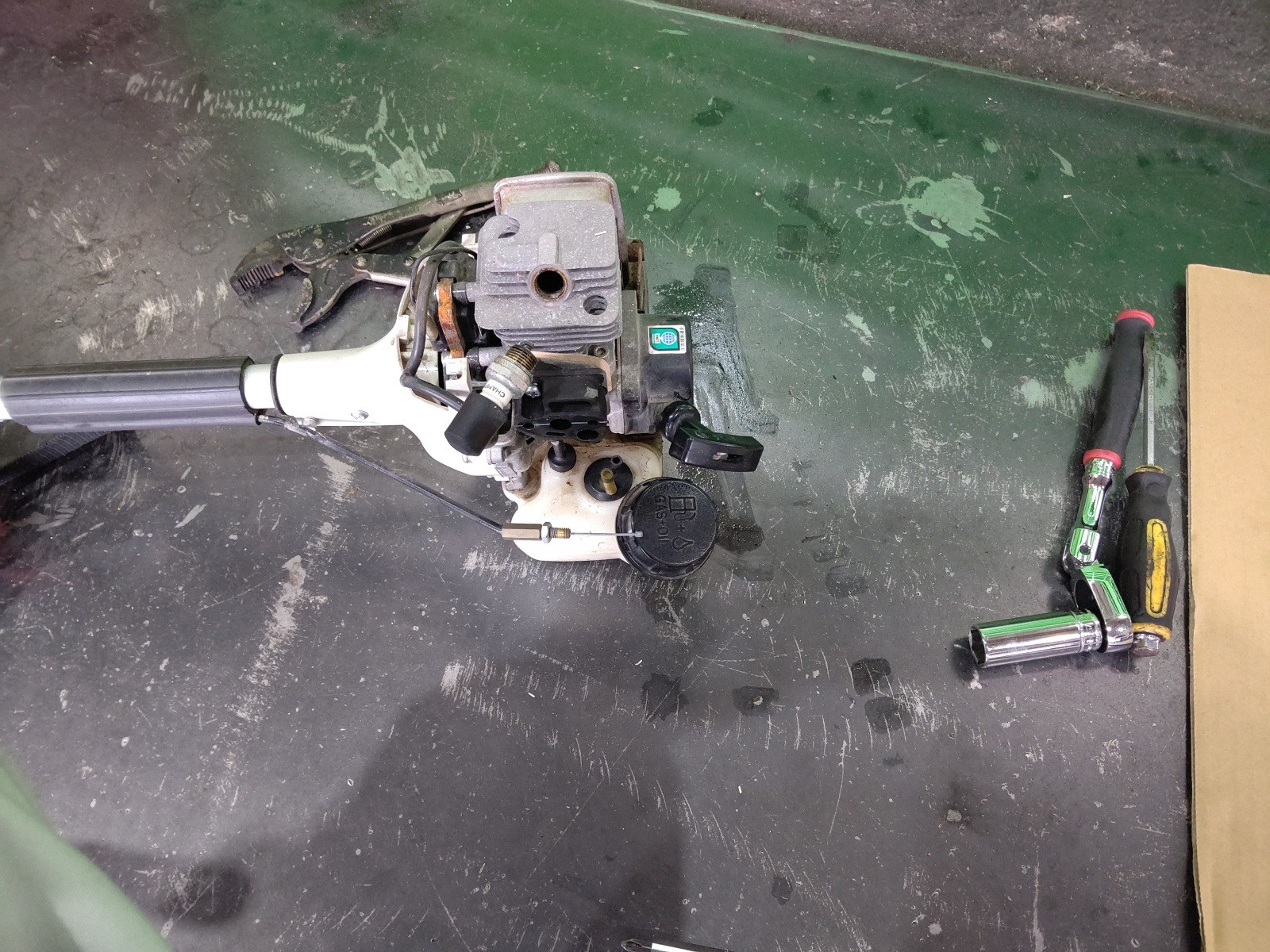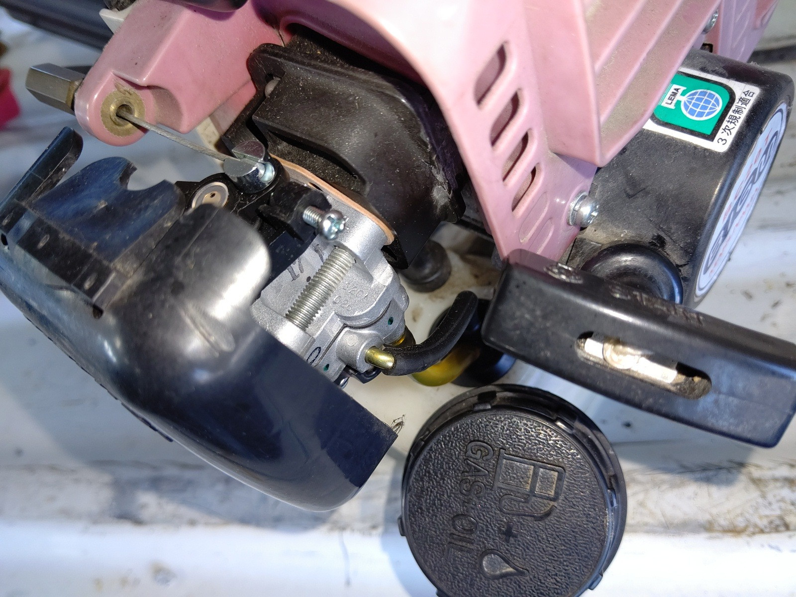 大和郡山市での芝刈機の修理は【マスダモータース】で 2020/11/25 丸山製作所 BIGM BC20T エンジン始動不良修理 今回は・・・ 自動車の修理ではありません。 芝刈機の修理になります。 自動車整備が仕事ですが、こういう仕事も受けていますw お客様から「芝刈機のエンジンがかからない」との事。 引き取りに行って症状を確認します。 初爆もなくエンジンがかかる気配もありません・・・ 色々とばらしながら確認します。 プラグの焼け自体は問題なく、スパークもしている為点火ではないようです。 次に燃料を直接スロットルから流し入れてクランキングしてみます。 ・・・ ちゃんとかかりました。 どうやら燃料が来ていないようです。 燃料フィルターも状態を確認します。 少し汚れていましたが、問題ありませんでした。 そうなると・・・ どうもキャブレターに問題があるようです。 取り外して分解、清掃していきます。 さすがに小さいw 各部清掃して組みなおし、再度作動させてみます。 ・・・ どうやらラインのどこかに不良があるみたいですので、キャブレター自体を交換します。 キャブレターを新品に交換し、ついでに状態のよろしくなかった燃料ホースも交換です。 組み終わったので燃料を入れてクランキング・・・ ちゃんとかかりましたw そのまま作動テストをしましたが、問題なかったので終了です。