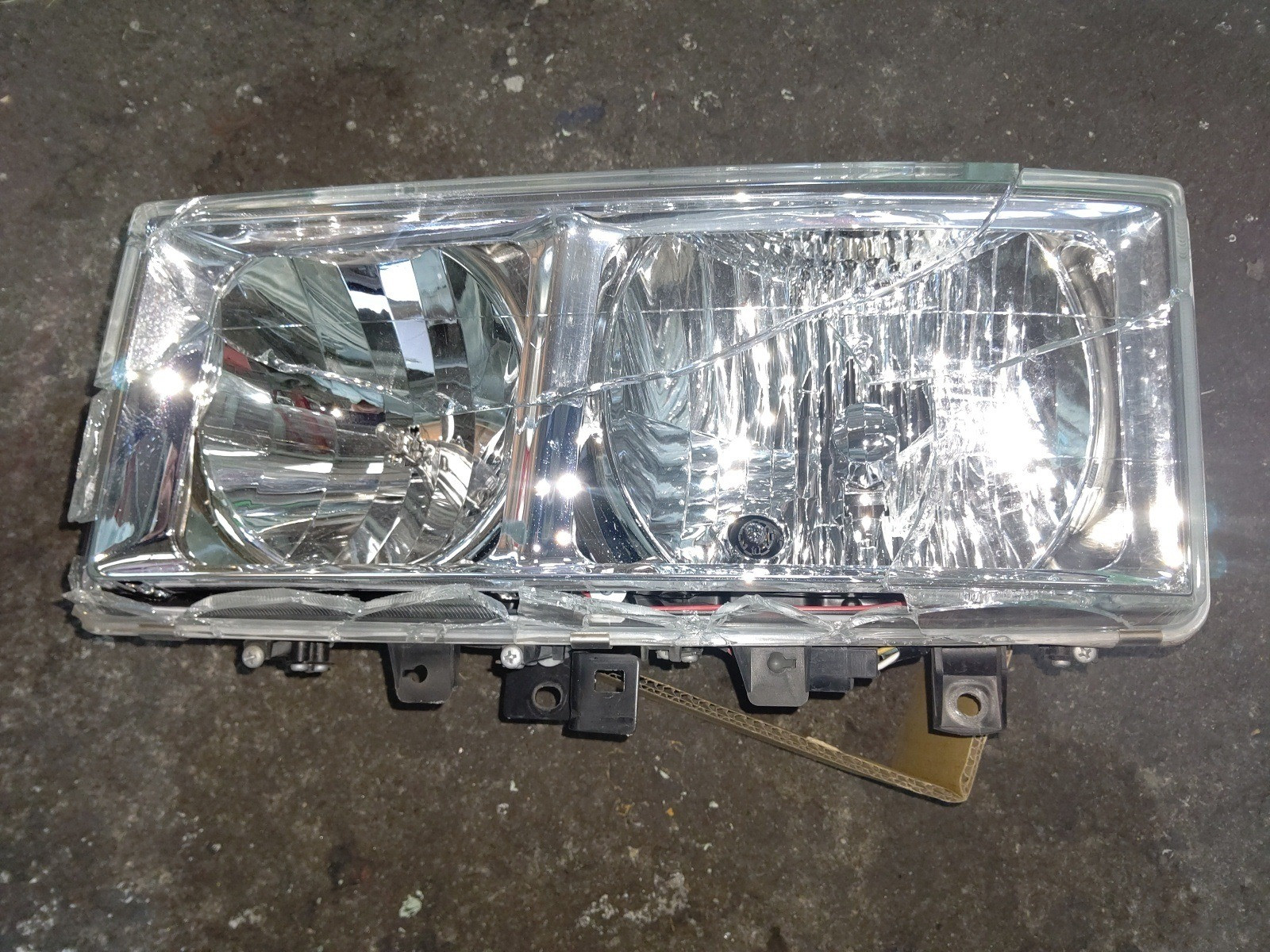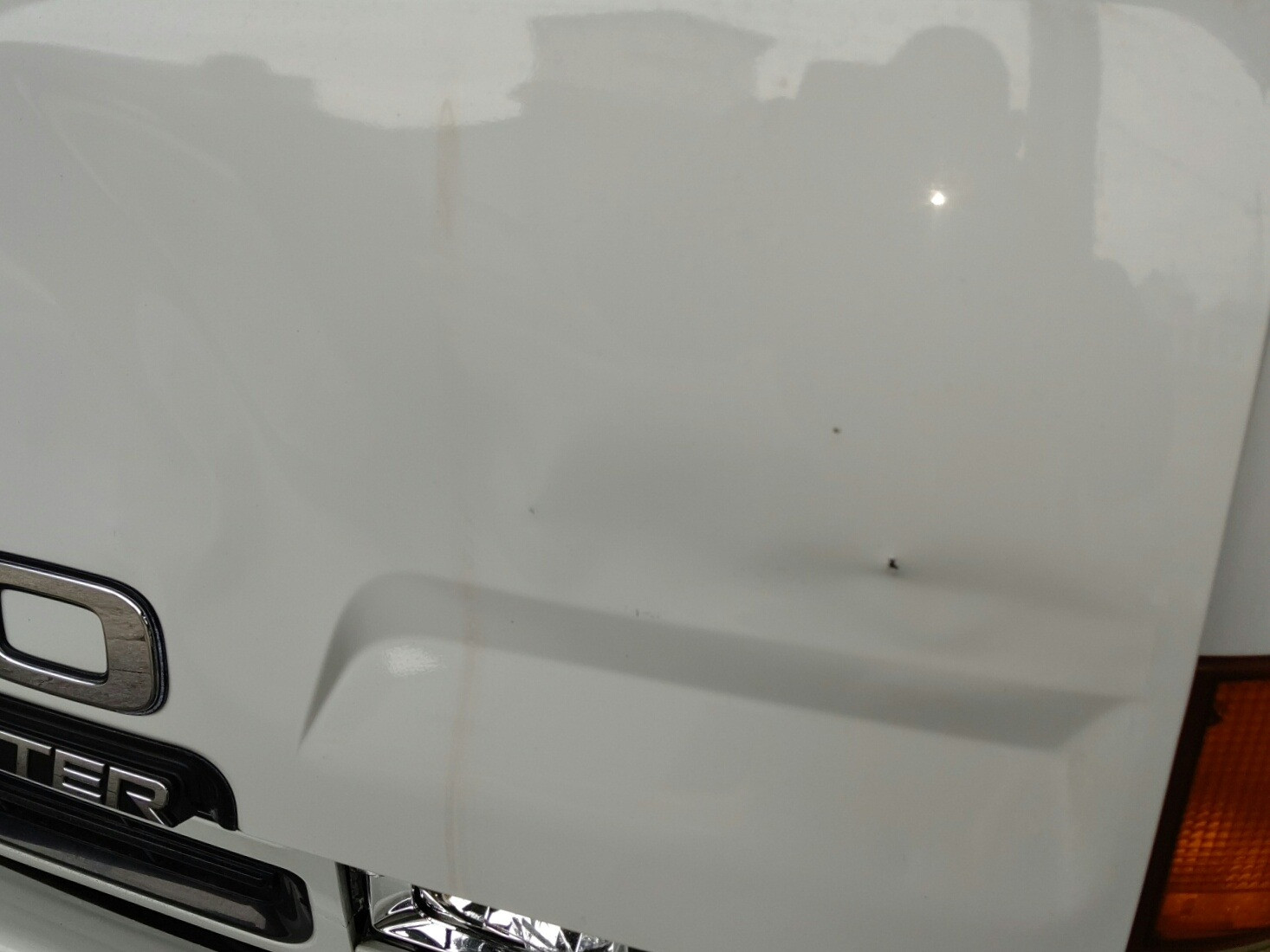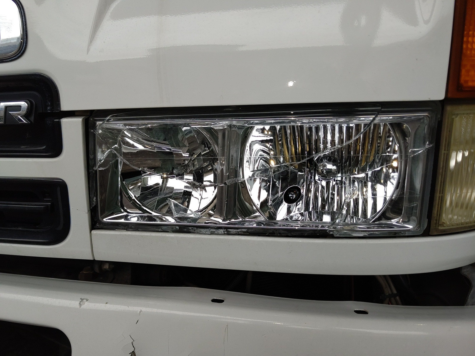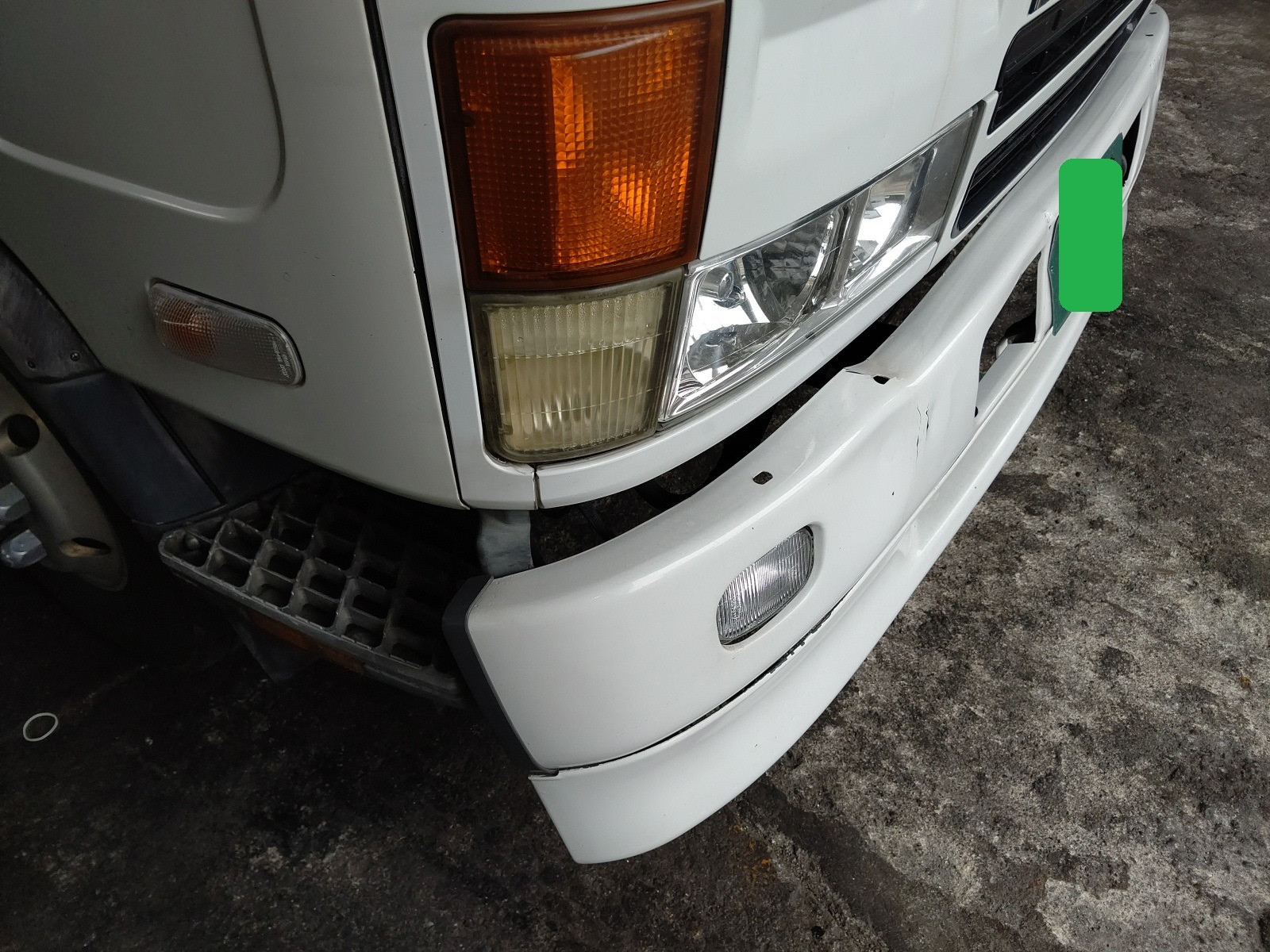 大和郡山市での車の修理は【マスダモータース】で 2020/12/02 ふそう ファイター FK61FJ ヘッド・ランプ修理 今回はふそう ファイターの修理です。 サイド・ブレーキの引きが甘く、動きだして前のトラックに追突してしまったとの事。 本来は鈑金屋で作業してもらう予定でしたが、使わなければならないので最低夜中走れるようにヘッド・ランプだけ交換する事になりました。 保険を使う為に作業前の状態を写真に撮っておきました。 真後ろから真っ直ぐに当たったようです。 バンパーは曲がってしまっています。 反対も同じようになっていますね。 バンパー・ステーも綺麗に曲がっていました。 フロントのパネルも当たっています。 相手はダンプかな? ヘッド・ランプのレンズはガラスの為砕けています。 今回ウチはヘッド・ランプだけ急ぎで交換します。 状況も鑑みてASSY交換でいきます。 とりあえずは取り付けできましたので、一安心です。 後は忘れがちですが、光軸の調整をしておきます。 調整がされてない鈑金明けの車よく見かけますw 作業が終わったら、直ぐに仕事に行かれましたw