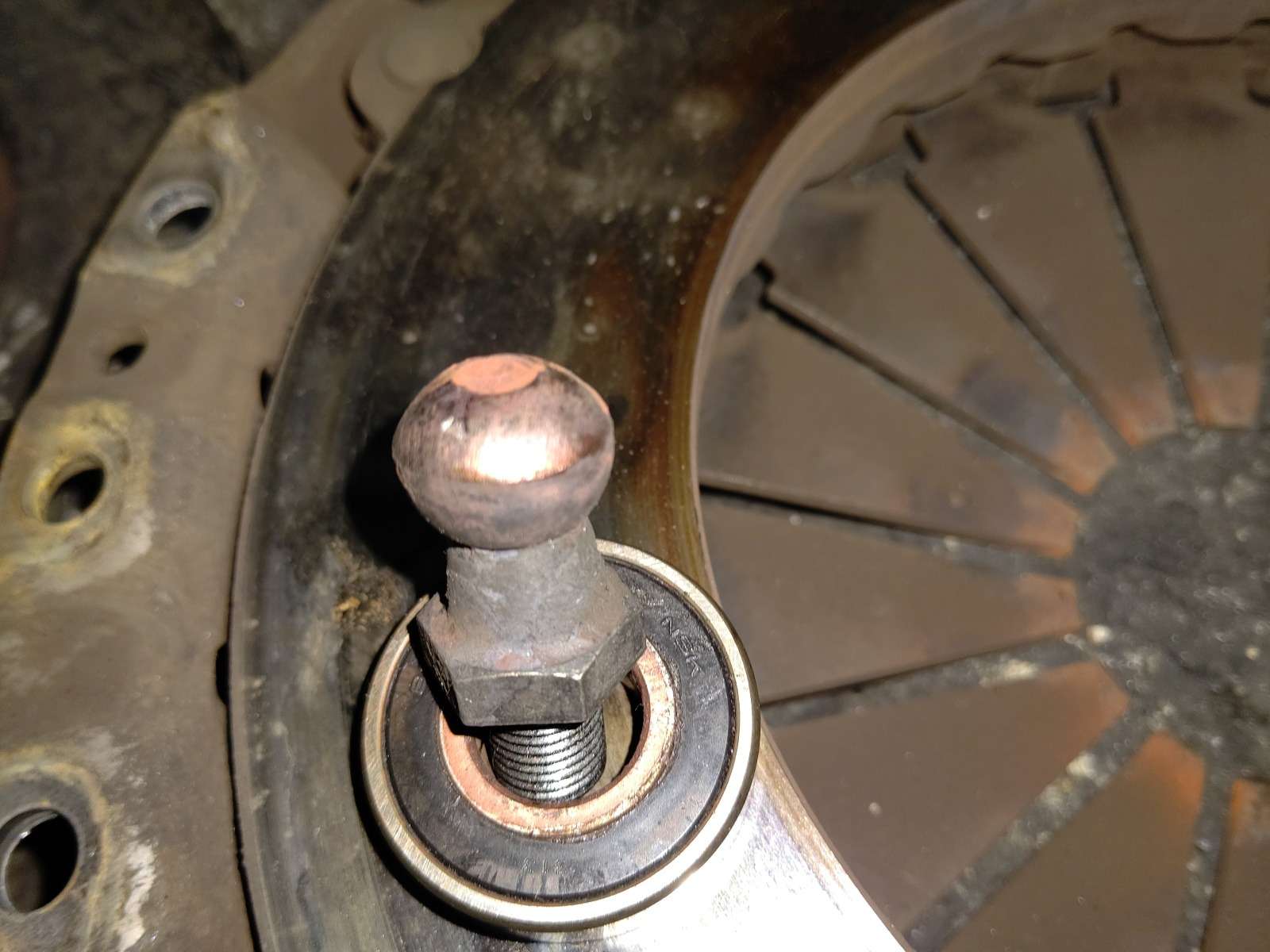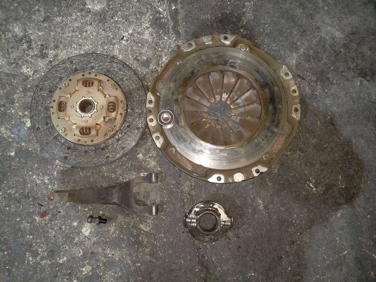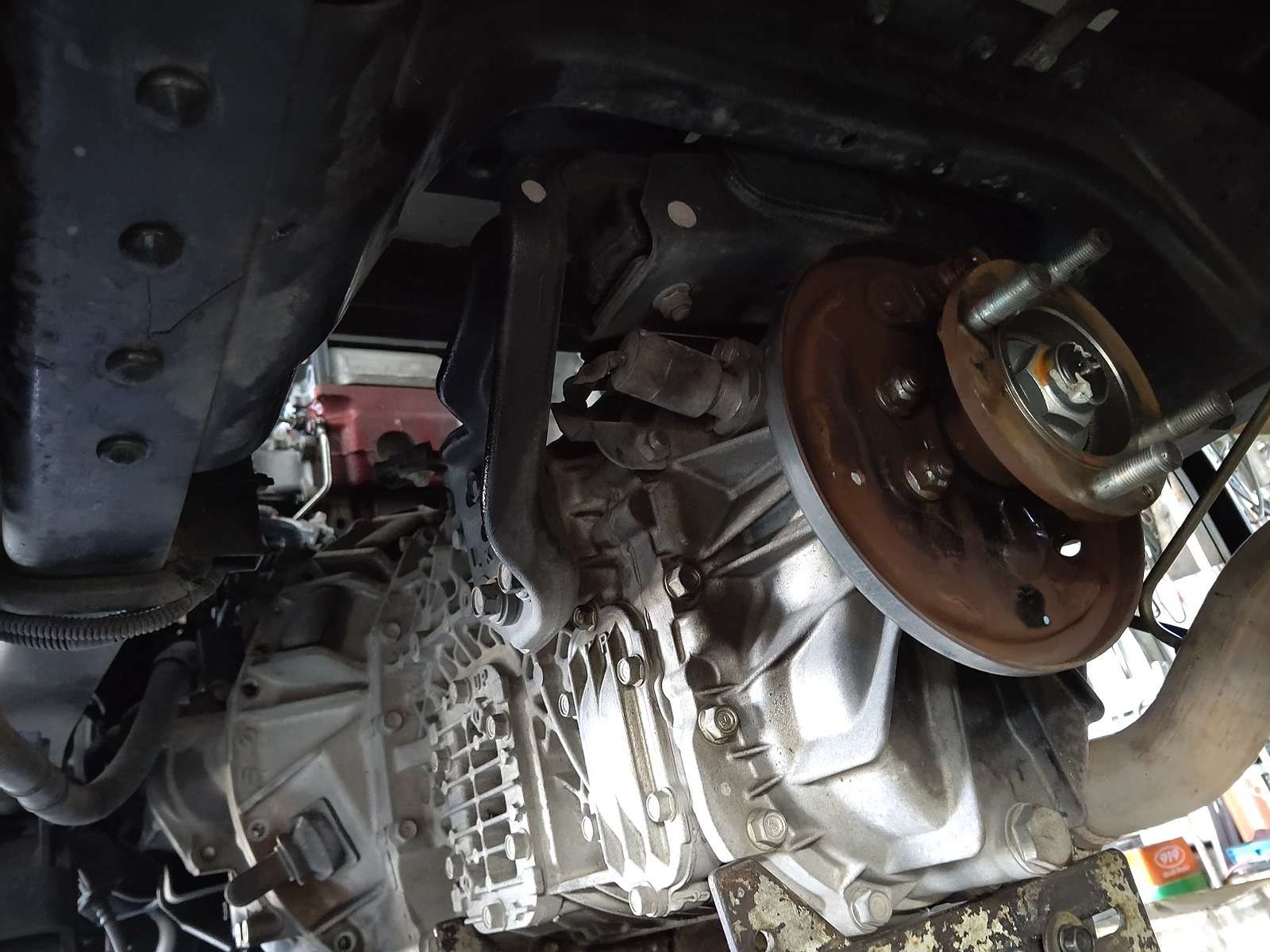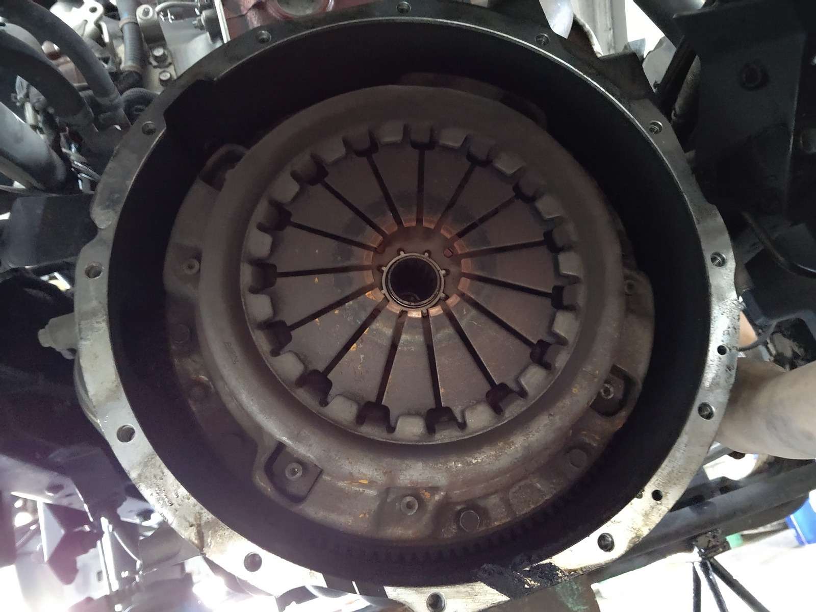 大和郡山市での安心車検は【マスダモータース】に 2021/03/12 日野 デュトロ XZU414M 車検 その2 今回は日野 デュトロの続きです。 引き取り時に感じた違和感・・・それは発進時のトルクの弱さとクラッチの繋がるペダルの高さです。 要するに・・・クラッチが滑り始めていたんですね。 車検で時間を貰っていたので、そのままクラッチのオーバー・ホールをしていきます。 こういう作業前にはバッテリーの端子は外しておきましょう。 レリーズ・シリンダーは外しておきます。 交換しますのでねw プロペラ・シャフトも外します。 この作業がクラッチのオーバー・ホールで一番体力使うかもしれませんw 外す時は使えるならエア・ツールを使います。 楽になりますが、ネジを傷めないように気を付けて使います。 チェンジ・ワイヤーや配線を外していきます。 スターター・モーターは外さなくてもいいので助かりますw サイド・ワイヤーを外し終えたら、ミッション・ジャッキを使って降ろします。 カバーの爪がかなり上がっています。 レリーズ・ベアリングも音がしていました。 分解して清掃しておきます。 今回交換した部品達です。 カバー、ディスク、レリーズ・ベアリング、パイロット・ベアリングはオーバー・ホール時には必ず交換します。 ディスクは限界でした。 このタイミングで作業が出来て良かったです。 それとは別に今回は・・・ 軸になる部分やシリンダーの当たり部分が摩耗しているレリーズ・フォークと・・・ そのレリーズ・フォークの軸になるピボットも交換です。 よく摩耗していましたw 交換後の作動テストでペダルの位置が丁度良くなりました。 ディスクを変えてもフォーク周りがこんなに摩耗していては、繋がるペダル位置がおかしくなりますからねw これで作業は終わりです。 最後に計測、陸事で書類を貰って終了です。