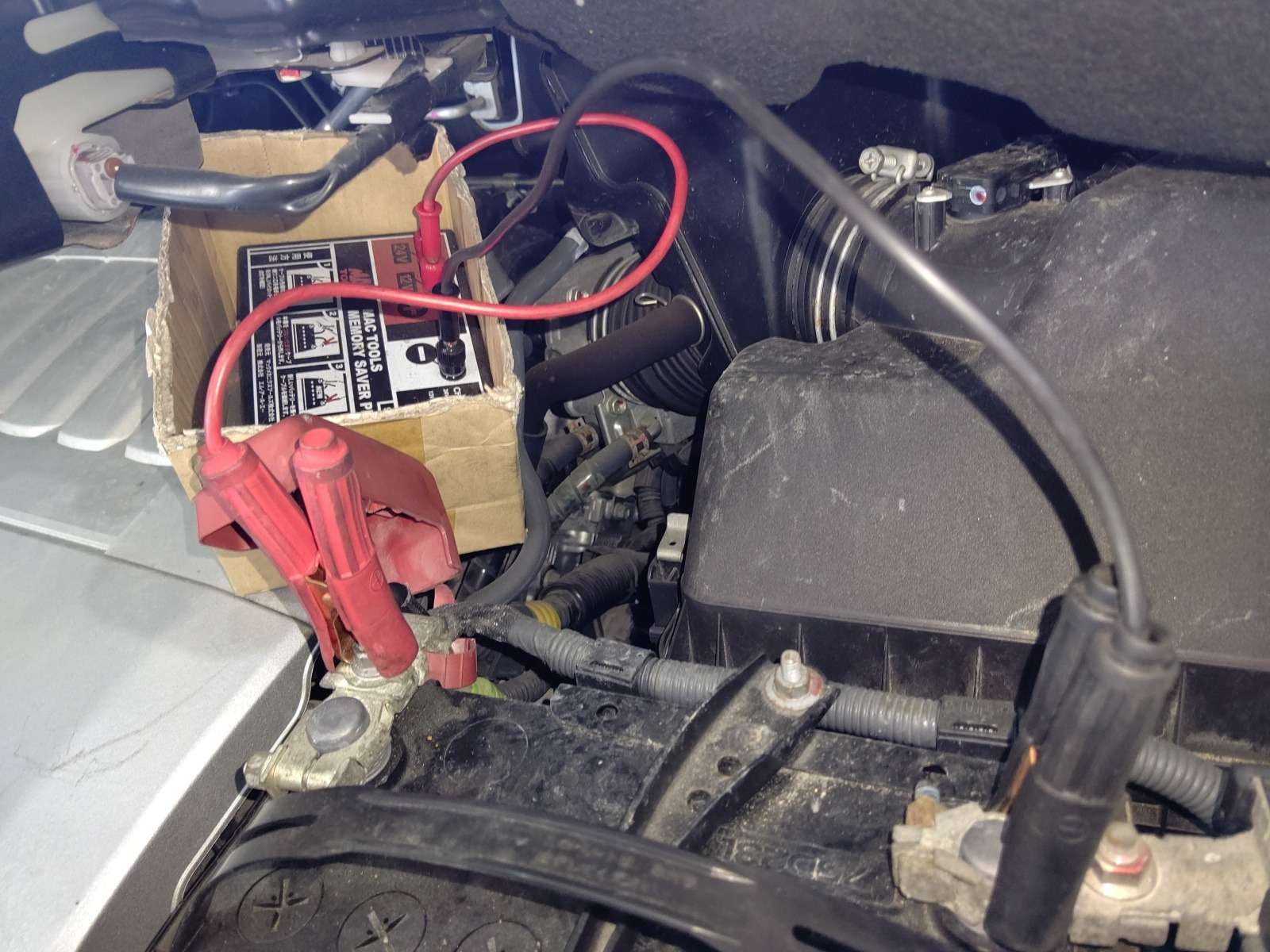 バッテリー上がりかな?とブースター・ケーブルを繋いで暫く置いておき、再びスターター・スイッチを押してみます。