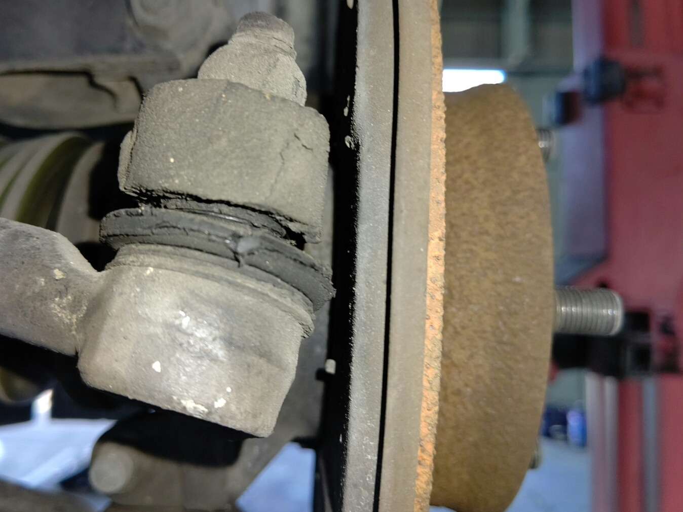 大和郡山市での安心車検は【マスダモータース】に 2021/05/08 スズキ エブリィ DB52V 車検 今回はスズキ エブリィの車検です。 古い上にそこそこの距離の車なんで何があるやら・・・ 早速リフト・アップして分解、点検していきます。 ウチで管理する前の手入れが悪かったんで心配していましたが・・・ それ程大きな問題はありませんでした。 ベルトは年数が経過していましたので交換しておきます。 プラグも摩耗し始めていたので交換です。 ホイール・シリンダーも時期がきていたのでオーバー・ホールしておきます。 左側のロア・アームのボール・ジョイント・ブーツに割れが発生していました。 ガタも無く、グリスの劣化による錆も無かったのでブーツの交換だけですみました。 タイロット・エンドのブーツも割れていました。 こちらもボール・ジョイント部には問題なかったので、ブーツとロック・ナットの交換だけで済みました。 タイヤはスリップ・サインまで摩耗していたので2本交換です。 タイヤはブレーキと共に制動に重要な部品です。 当社では性能と安全面から基本ブリジストンです。 安いけど信用できない大陸製は使いません。 スズキはスペア・タイヤの空気圧がチェックし易くて助かりますw 後エンジン・オイルや水、ワイパー・ゴムを交換したら計測、陸事で書類を貰って終了です。