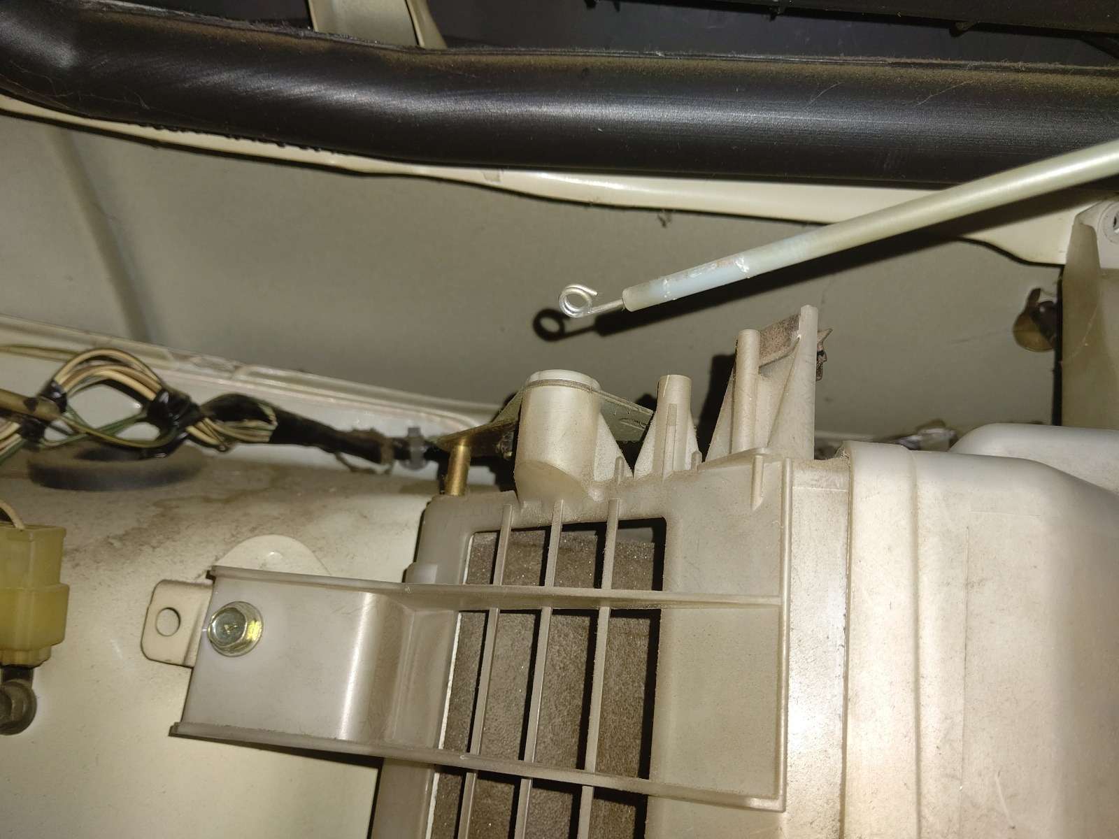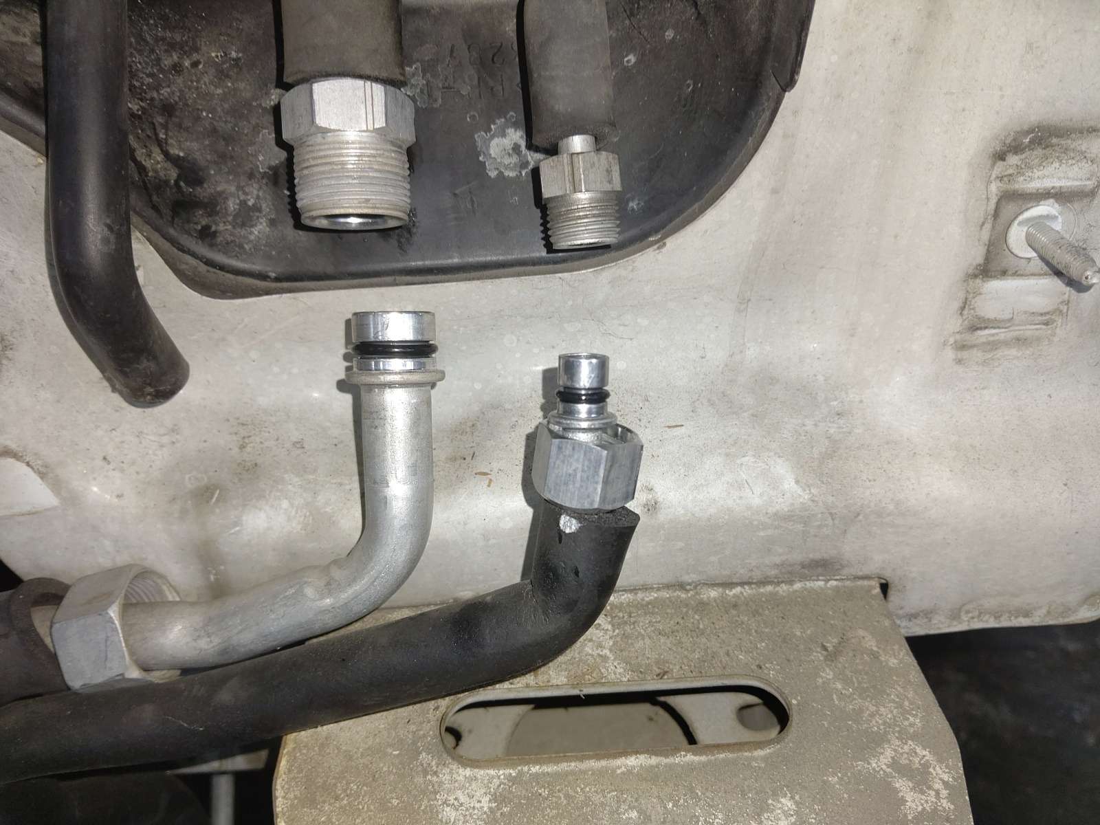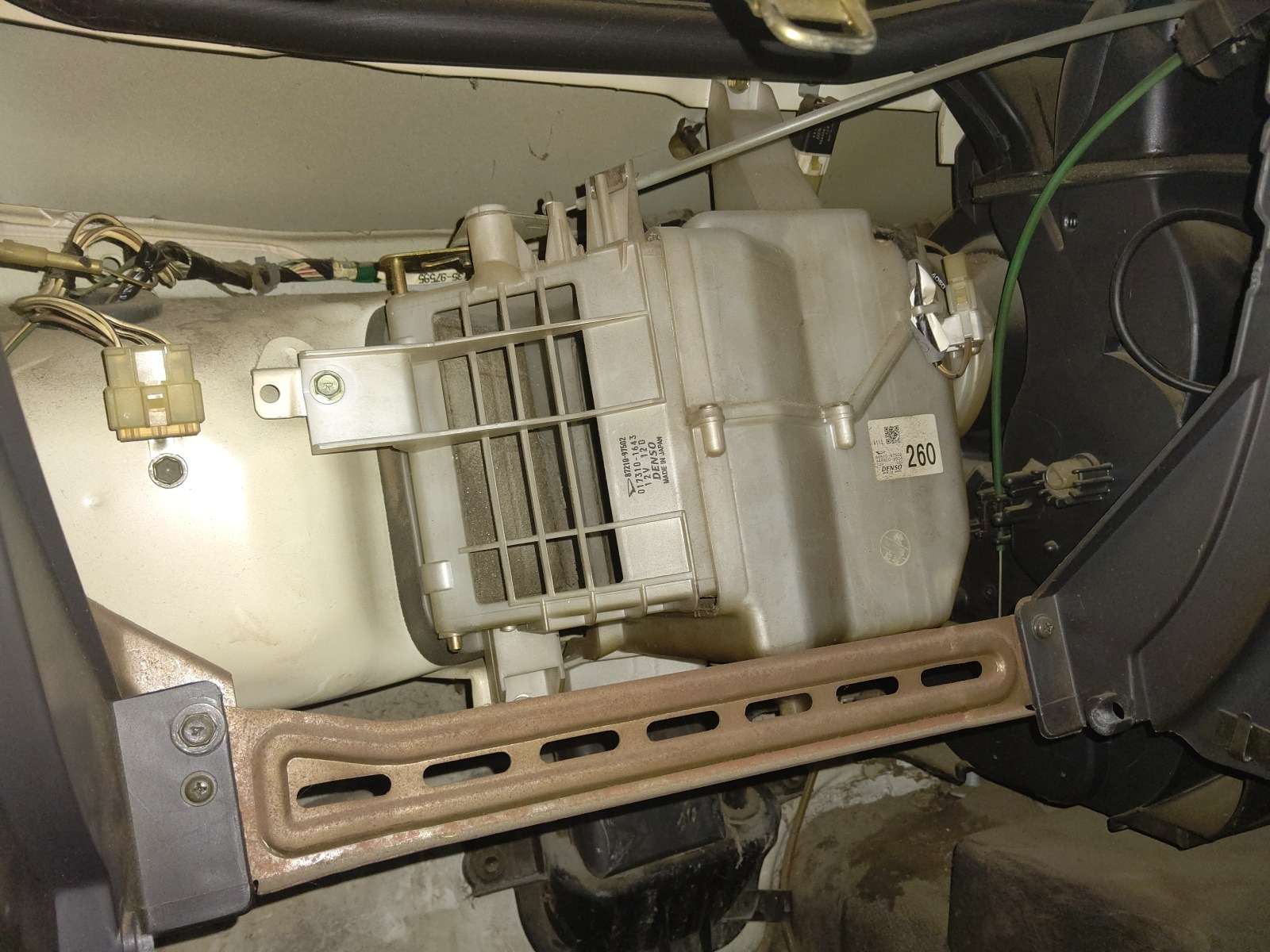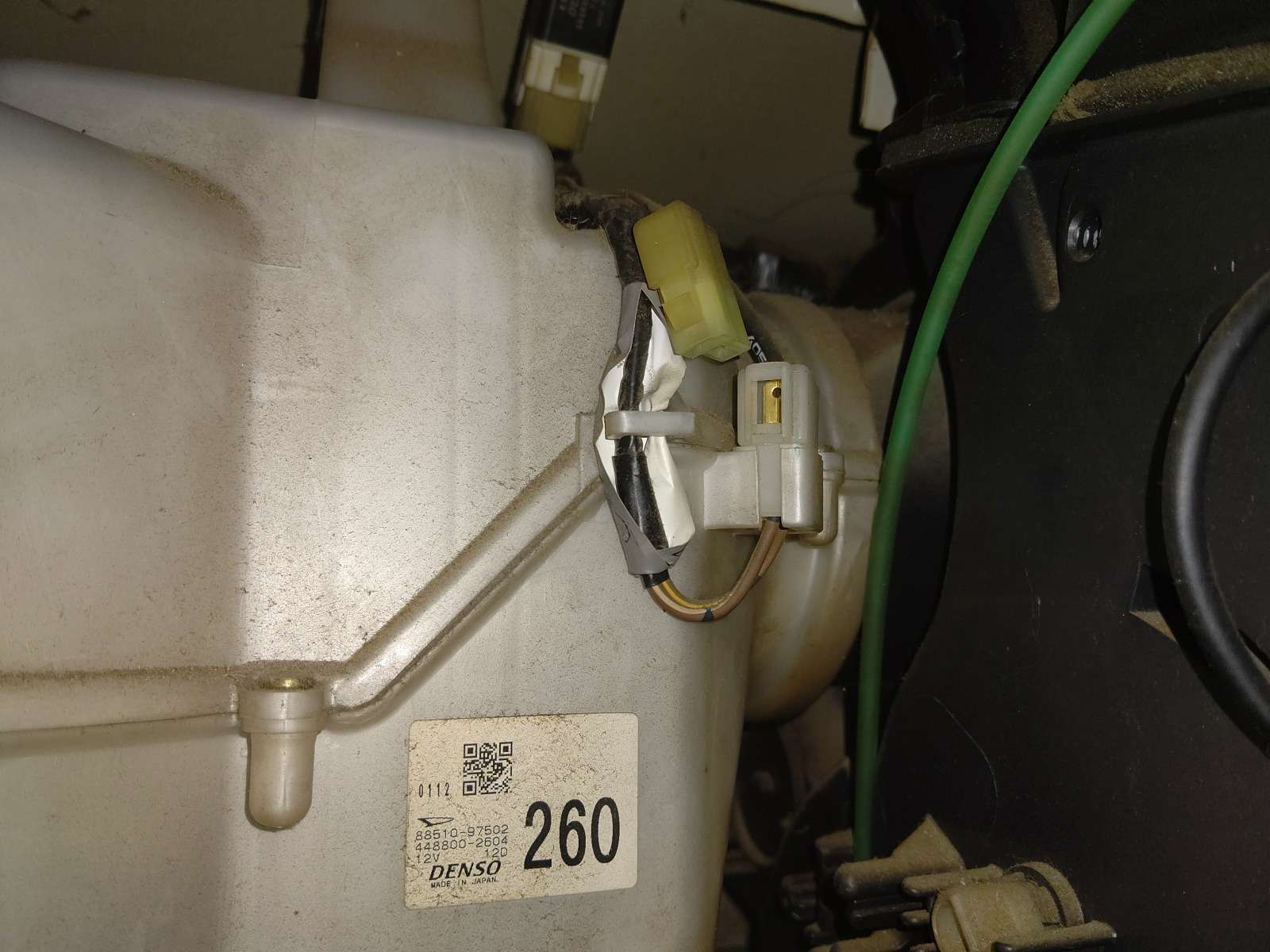 大和郡山市での車の修理は【マスダモータース】で 2021/06/18 ダイハツ ハイゼット S21P エアコン修理 今回はダイハツ ハイゼットの修理です。 これから多くなるエアコンが効かないって話ですw ゲージ・マニホールドの動きは問題ないレベルですが、さっぱり効きません。 はて? 電気系に問題なかったので、ガスラインの何処か・・・ 一ヵ所ずつ確認していきます。 すると・・・ エアコンの高圧ホースから漏れてきているようなので交換します。 しかし、ゲージで見ているとガスが効かなくなるまで減っている感じはなかったんです。 これは・・・他にも何かあるな。 そしたら・・・エバポレーターがゴミで詰まりきっていました。 そりゃ効きませんよw 原因が判明したので分解していきます。 配管を外す為にバンパーを外します。 この二ヵ所を外します。 外したらゴミが入らないようにしておきます。 次は室内です。 グローブ・ボックスを外すとかなりスペースがあって助かりますw 外気との切り替え弁を動かすワイヤーを外し、弁自体を外します。 後は温度センサーの配線を外したら、側ごとエバポレーターが外せます。 分解したエバポレーターがコレです。 ほとんど詰まってます。 今の車はエアコン・フィルターが付いているので、こんな事にはなりません。 エアコン・フィルターは定期的に交換しましょうねw エキスパンション・バルブも同時に交換しておきます。 後は逆の手順で組んでいきます。 外した配管のOリングは必ず交換します。 そのまま使うと漏れの原因になります。 後は真空引きをして漏れの確認後、問題なければガスを入れて効きを確認。 よく効くようになりました。 さらに・・・ 今回はWAKO'Sのパワー・エアコンを入れておきます。 これは体感できる添加剤の一つです。 効きも良くなるし、コンプレッサーの抵抗が減るのでおススメですw 今回はこれで終了です。