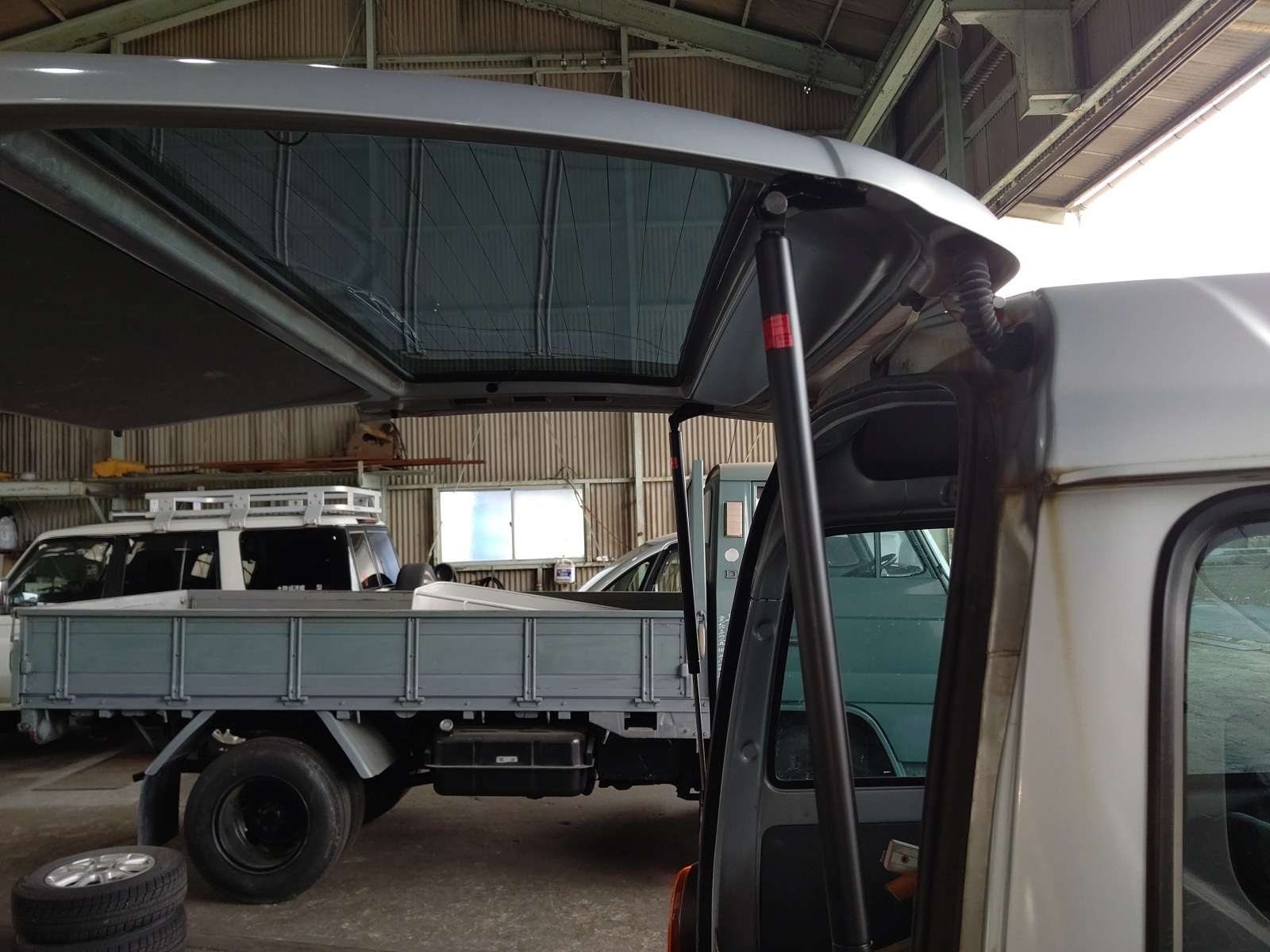 大和郡山市での車の修理は【マスダモータース】で 2021/06/22 ダイハツ ハイゼット S210V 修理 今回はダイハツ ハイゼットの修理です。 お客様から「リヤ・ゲートが落ちてくる」との事。 あ~なるほど。 早速症状を確認します。 原因はリヤ・ゲート・ダンパーが弱くなって、上げきれなくなっていました。 普段リヤ・ゲートって重いなんて感じませんが・・・実際はかなりの重量なんですよね。 それを細いダンパー二本で支えてるだけなんで、いつかは弱くなるもんです。 早速部品を交換していきます。 取り合えずつっかえ棒で支えておきます。 じゃないと・・・車に食われてしまいますのでwww 支えてしまえば後は外すだけです。 フレーム側のピボットと・・・ ゲート側のステーを外したら交換出来ます。 交換は左右同時にしましょう。 中途半端に片側だけとかにすると、直ぐにダメになってしまいますからね。 しっかり上まで上がって落ちてこなければ作業は終了です。