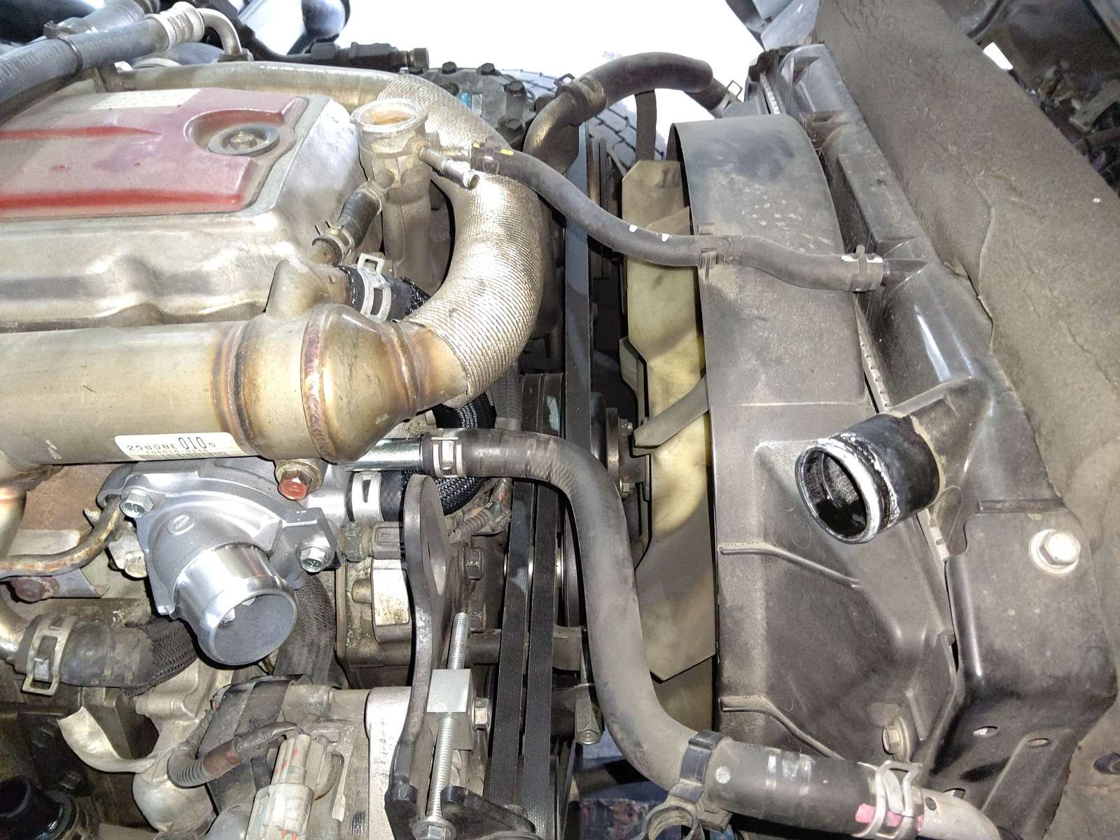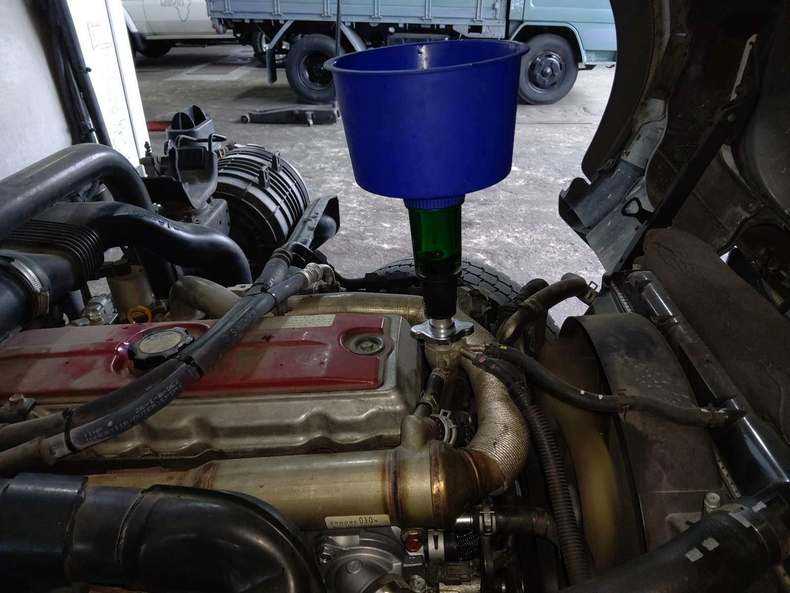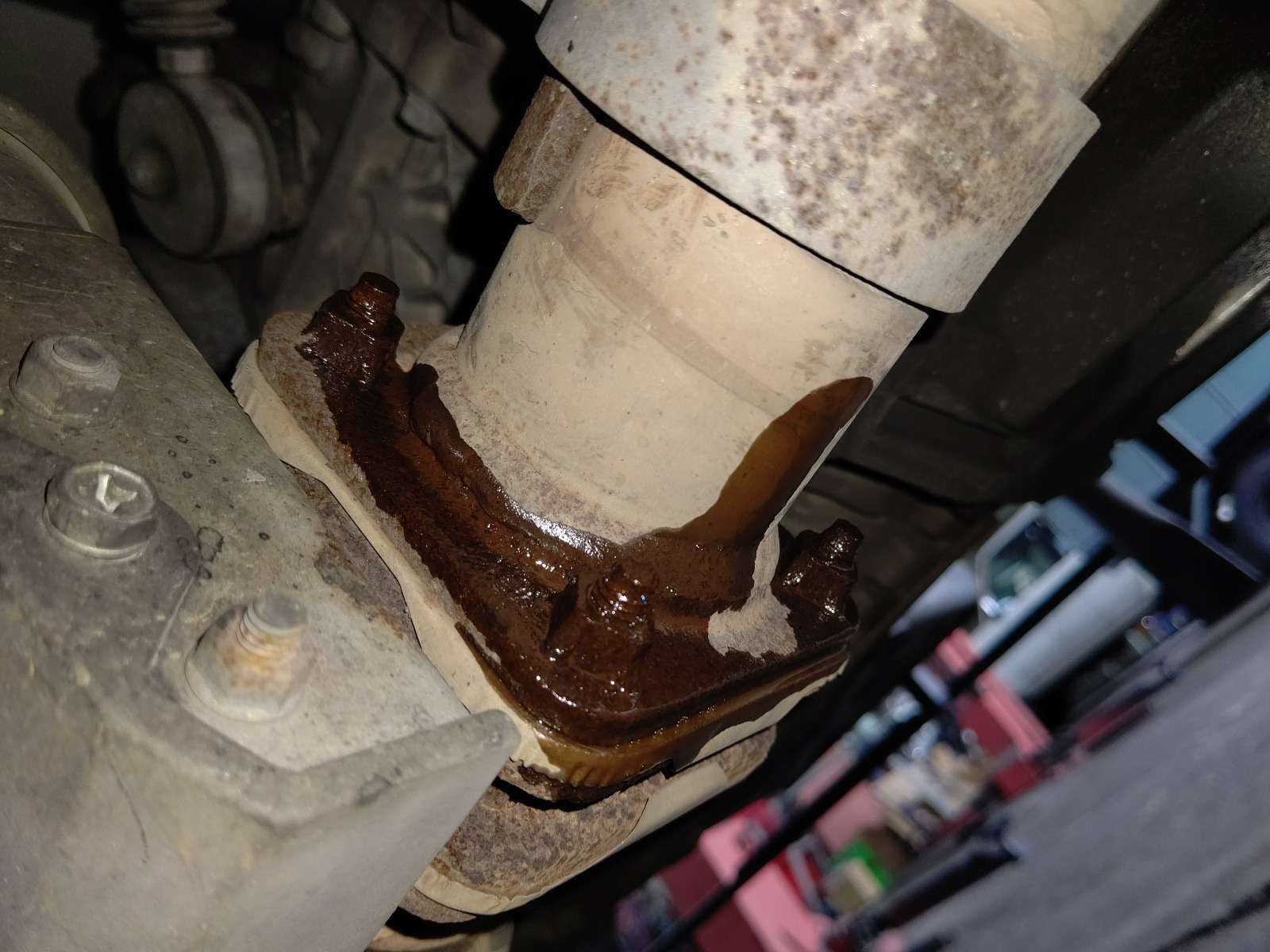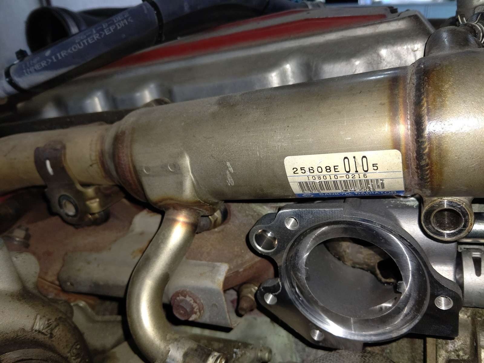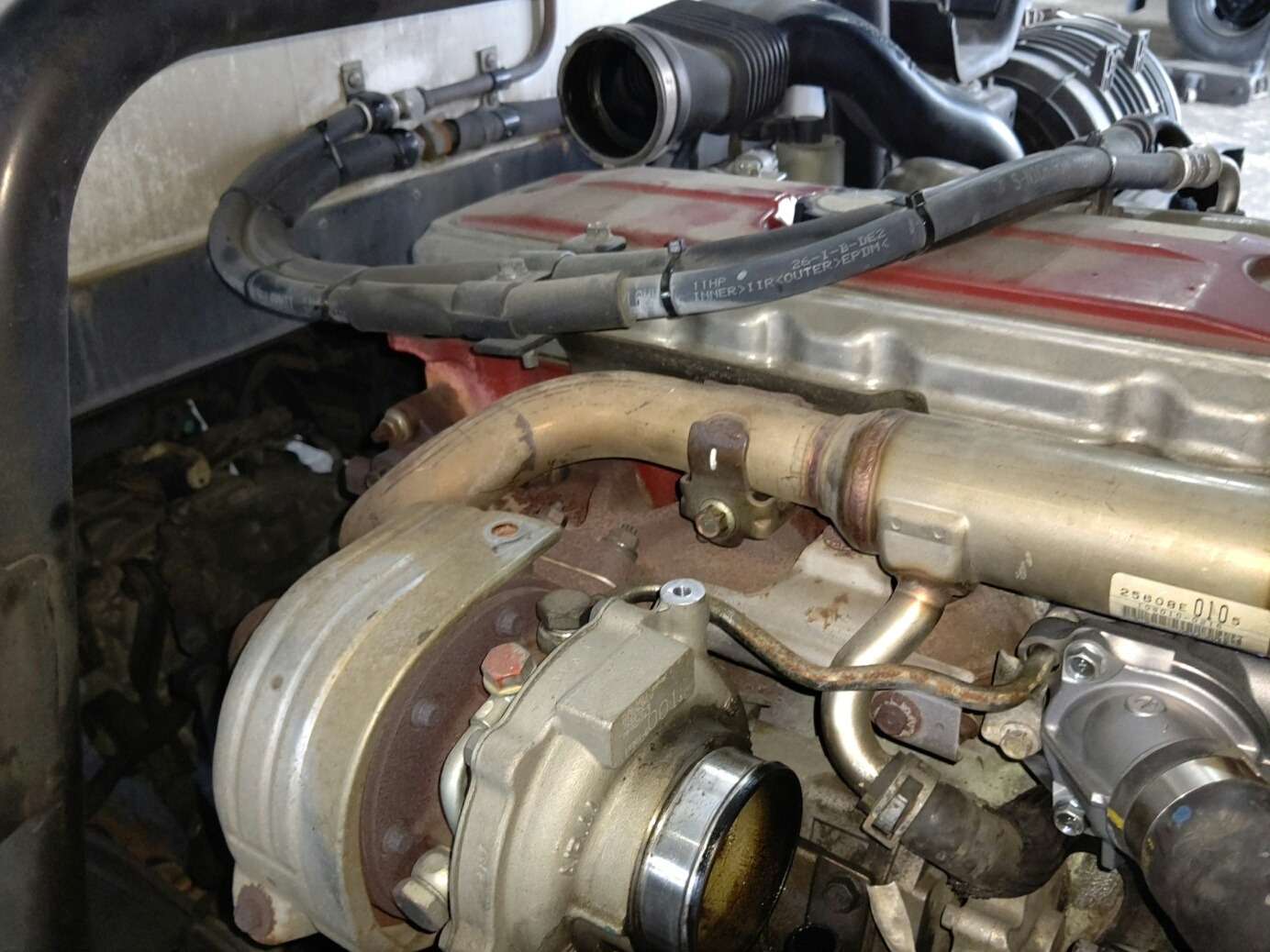 大和郡山市での車の修理は【マスダモータース】で 2021/07/06 日野 デュトロ XZU414M 水漏れ修理 今回は日野 デュトロの修理です。 お客様から「最近サブタンクの水の減りが早い」との事。 確認すると・・・ サーモ・スタッドのハウジングから水漏れの跡が・・・ 早速部品を取って作業します。 が・・・分解中の写真を忘れた(笑)ので組み付け写真を使いながら説明を。 先ずは水を抜いてラジエター・アッパー・ホースを外します。 次にタービン周りを少し外して・・・ ターボの冷却用のパイプを外します。 サーモ・スタッドを外したら後はハウジングを~と思ったら・・・ 一ヵ所普通に外せないボルトが・・・ そこで・・・ EGRの固定ボルトを外して、浮かせてボルトを外します。 外したハウジングがこれです。 アルミの虫食いも発生していたので交換します。 サーモ・スタッドも折角なので一緒に交換しておきます。 組み終わったら水を入れてエア抜きします。 ヒーター・ホースが上の方に来ているタイプはエア抜きに時間が掛かります。 エア抜きが終わったら圧をかけて漏れを確認します。 問題無かったので水漏れの修理は終了です。 それと引き取り中に排気ブレーキが動いてなかったので一緒にバタフライを交換しておきます。 この手の作業はボルトの錆の対策が一番時間を食います。 CRCでは効果なかったので・・・ 酸素を使って炙って外しました。 交換後はちゃんと作動していたので全て終了です。