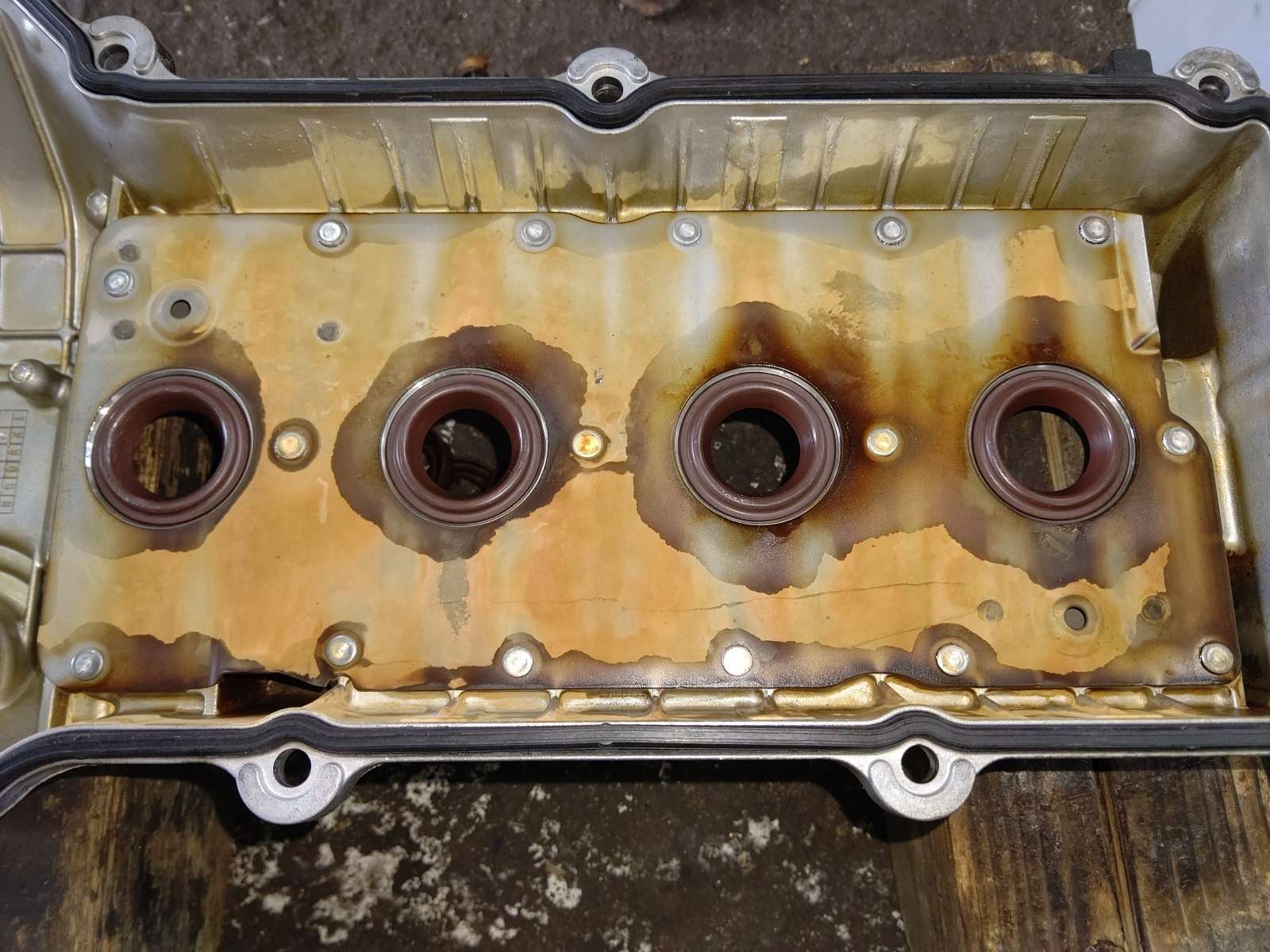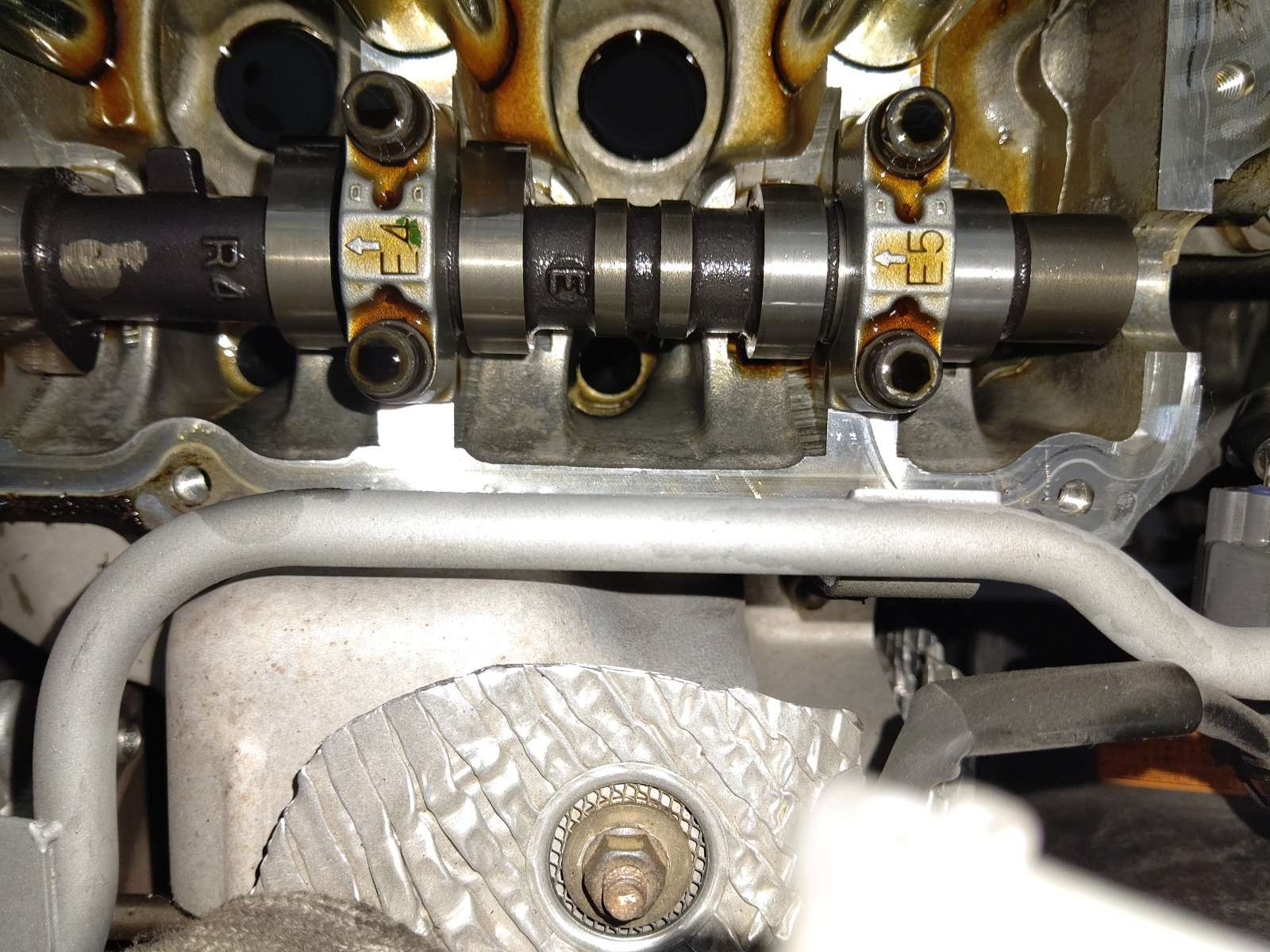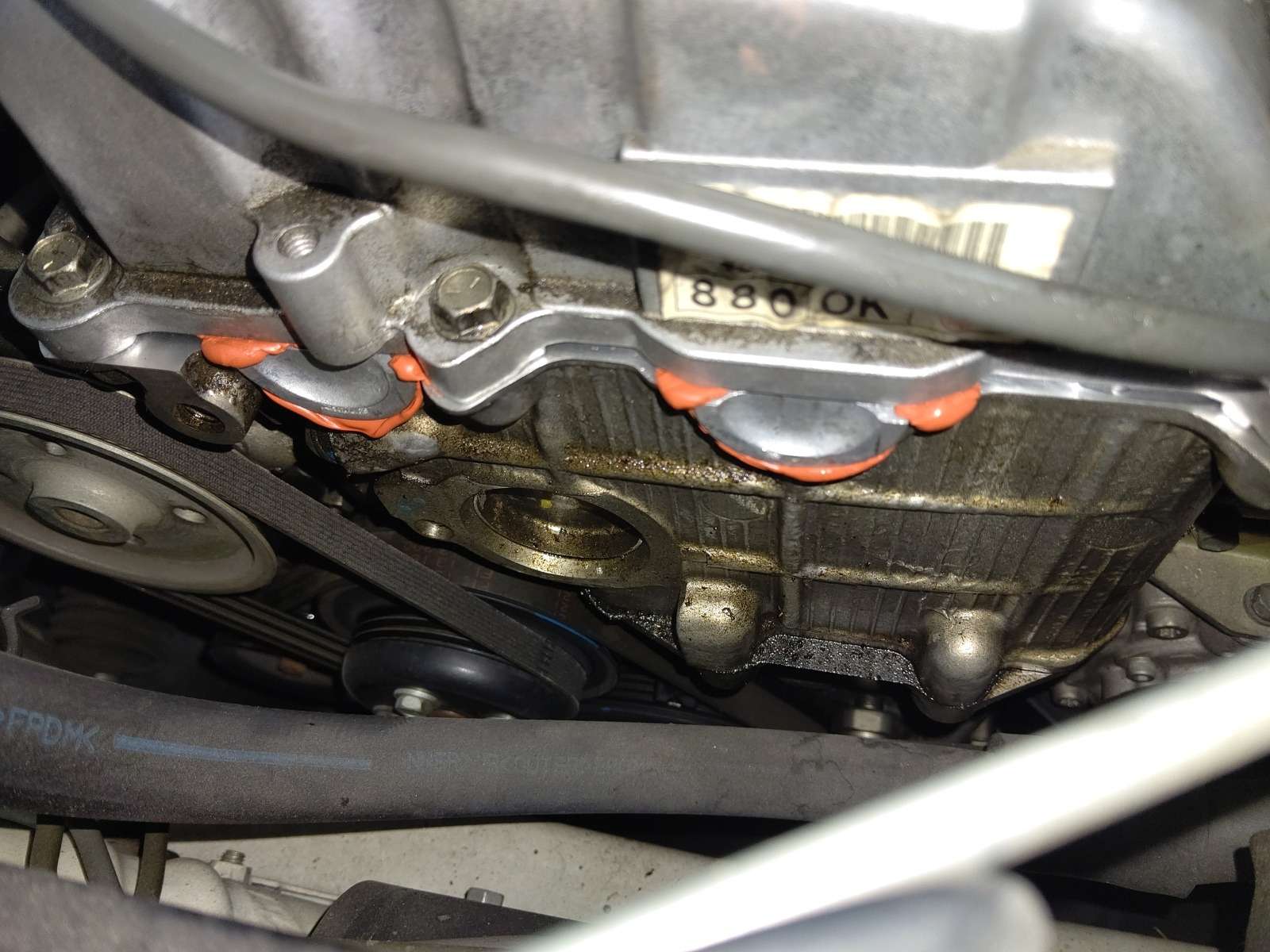 大和郡山市での車の修理は【マスダモータース】で 2021/07/13 ダイハツ コペン L880K オイル漏れ修理 今回はダイハツ コペンの修理です。 元々はオイル交換で預かっていましたが・・・ オイル・パンまでエンジン・オイルで濡れていました。 確認していくと、かなり上の方から漏れてきているようです。 たぐっていくと・・・ どうもヘッド・カバー周りから漏れてきているようでした。 オイル交換と共に漏れも修理していきます。 先ずはエンジンのカバーを外します。 最近のエンジンはカバーが全体を覆っていて分かりにくいですね。 カバーを外すとエア・ダクト等パイプやホースが付いています。 順を追って外していきます。 大分とスッキリしましたw 後はイグニッション・コイルを外し、回りの細かい所を外していきます。 外してみると・・・中は大変綺麗な状態です。 ちゃんとオイル交換していると内部は綺麗なままなので気分が良いですw ヘッド・カバーを清掃し、一緒にプラグ・ホール・シールも一緒に交換です。 見えないですがPCVバルブのガスケットやフィラー・キャップのガスケットも一緒に交換しています。 このパイプだけ少しかわしながら取り付けるようにします。 シール・ガスケットを塗りなおしも行い組み上げます。 念の為、組み上げ後も少しシール・ガスケットを乾かしてからエンジンをかけて漏れのチェックをします。 暫く様子を見ましたが漏れてはいませんでした。 エンジン・オイルとエレメントの交換もします。 このエレメントの位置だけは・・・ 設計した技術者に文句が言いたくて仕方がありませんよ・・・。 下回りも清掃し、試走後再チェックをしましたが問題なかったので作業は終了です。