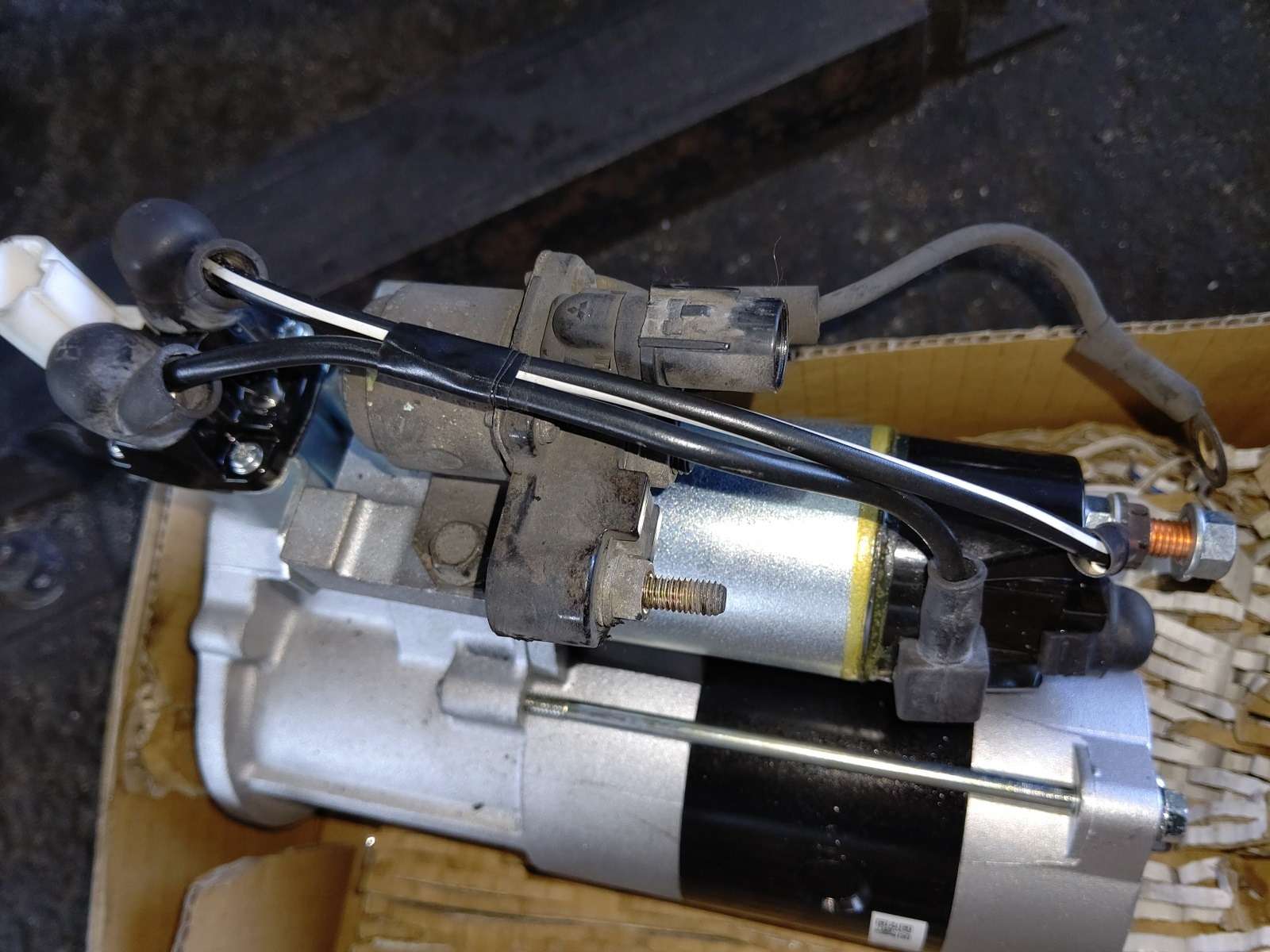大和郡山市での車の修理は【マスダモータース】で 2021/08/04 ふそう キャンター FE52EB 始動不良修理 今回はふそう キャンターの修理です。 最近廃車予定もあるからと最低限で車検を受けた車でしたが、お客様から「エンジンがかからない」との事。 現場で確認すると、スターター・モーターが作動不良を起こしていました。 こればっかりは車検で整備していても判らないです・・・。 マニュアルだったので、引っ張ってエンジンをかけて持って帰りました。 早速部品を段取りして作業していきます。 常時電気がきているので端子を外すのが一番最初の作業です。 キャビンを上げると、スターター・モーターの上側に付いているカプラが見えますので外してしまいます。 バッテリーから来ている+線を外します。 バッテリー端子を外しておかないと大変な事になりますよ。 太いアース線を外し、邪魔になりそうなレリーズ・シリンダーも外しておきます。 最後にスターター・モーターの取り付けボルトを外したら下側の降ろせます。 取り外したスターターです。 ピニオンを押し出せませんでした。 リビルト品で交換します。 取り付ける前にスターターのピニオンと噛み合うリング・ギヤの状態を確認しておきます。 問題なかったのでスターターを組み付けてエンジンを始動してみます。 何度か作動させても問題なくエンジンをかける事ができましたので作業は終了です。