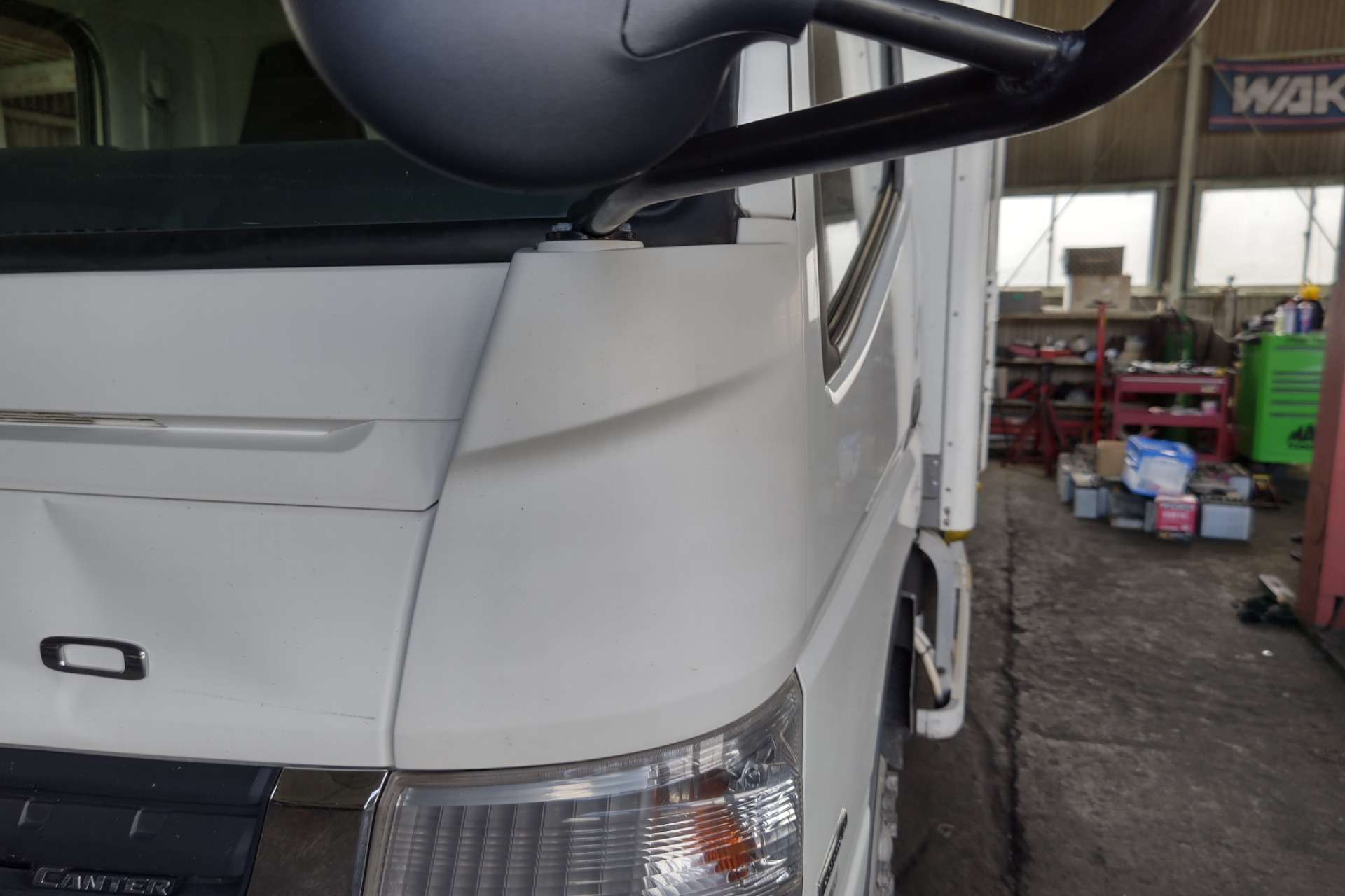 大和郡山市での車の修理は【マスダモータース】で 2021/10/07 ふそう キャンター FEB80 修理その2 今回は前回の続きです。 パワー・ゲートの修理の他に「ワイパーがちゃんと動かない」との事。 動かしてみると・・・ レバー・スイッチのHIの位置でしか動かない、動きもおかしく停止位置もおかしい・・・。 マニュアルに点検の仕方が載っているのでチャートに合わせてみていくと・・・ どうもモーター不良のようです。 部品を発注して作業していきます。 この前のパネルの向こうにモーターがあります。 どのトラックか忘れましたが、モーターが室内ダッシュ・ボードの向こうに付いているのがあって苦労した事を思い出し・・・ こうやって作業性も良く設計してくれたエンジニアに感謝したいですw 先ずはワイパー・アームを外し・・・ ウォッシャー・ノズルも外しやすくしておきます。 左右のミラーの土台の上のパネルを外したら・・・ 正面のパネルが外せて、ワイパー・モーターとリンクが出てきます。 ここまで来たらモーターを外すのに時間はかかりません。 今回は交換作業より故障診断に時間がかかりました・・・。 電気関係の方が機械的なトラブルより診断に時間がかかる事が多いですね・・・。 それと・・・ レバー・スイッチの動きが変になってきていました。 なんかカチッと回らずスカスカで接点できちっと止まりにくい状態になっていました。 なので、ついでに交換する事になりました。 昔と違って一部分だけの交換が可能になっています。 先ずハンドル下のカバーを外し・・・ 上のカバーも外します。 後は二ヵ所のボルトを外したら横に抜けてくれます。 全ての作業が終わって作動テストをします。 ワイパーの動きに問題なかったので作業は終了です。