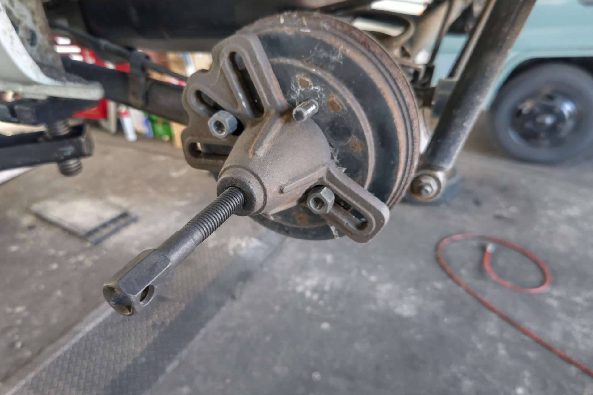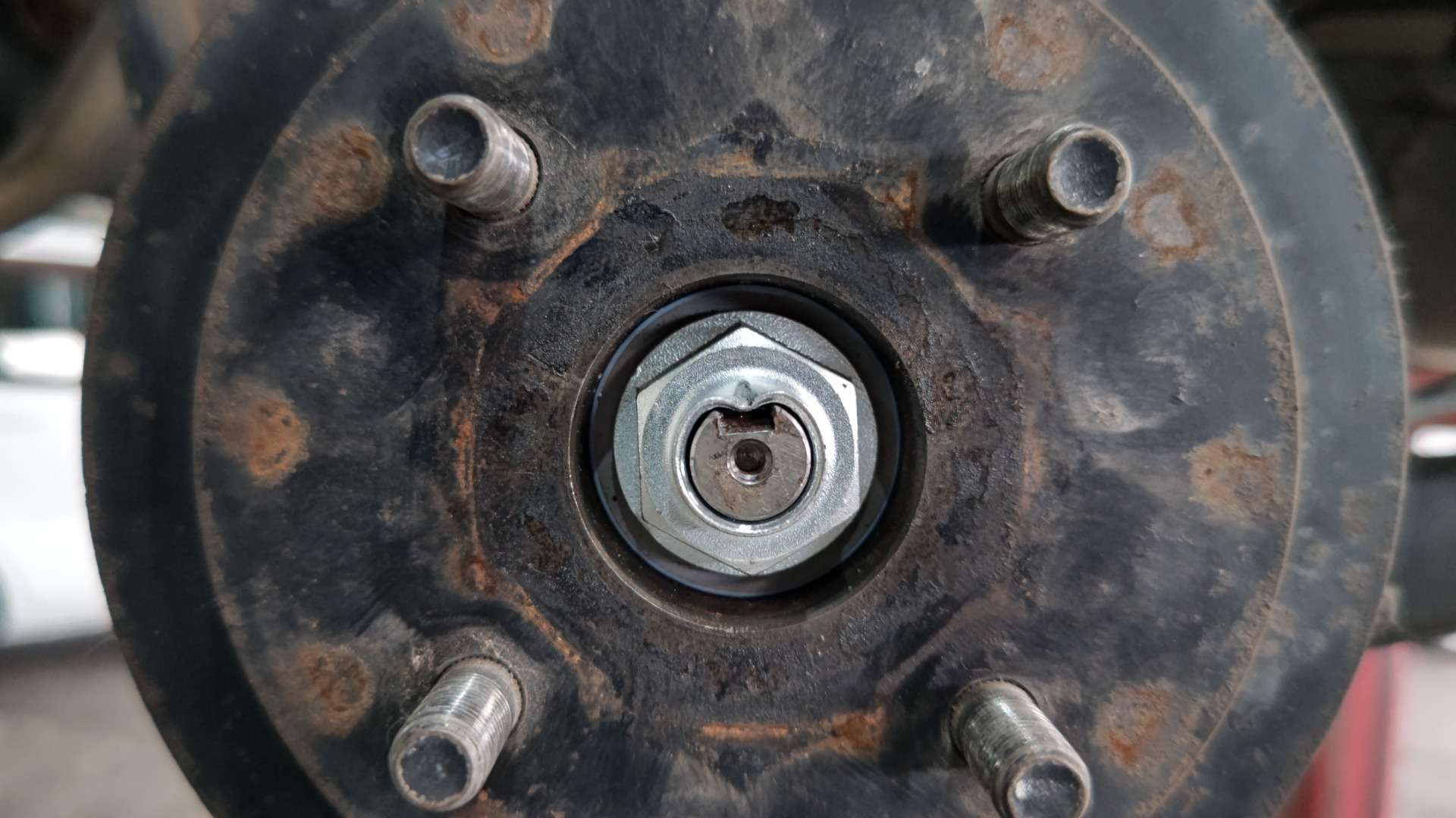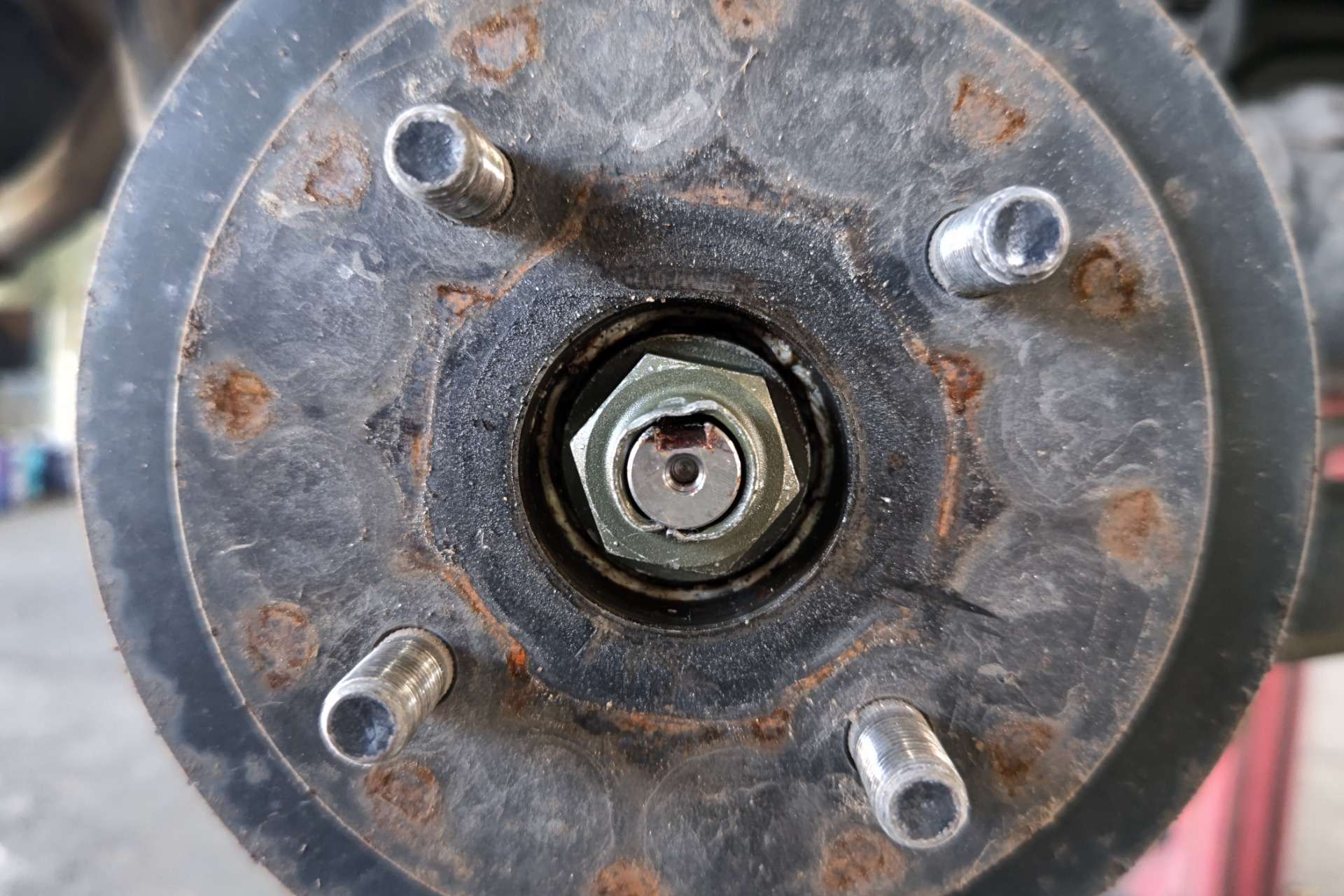 大和郡山市での車の修理は【マスダモータース】で 2021/11/08 スズキ ラパン HE21S ブレーキ修理 今回はスズキ ラパンの修理です。 お客様から「突然ブレーキが引きずりだした」との事。 この車はまだ一回しか見たことが無い車です。 今までの整備から状況を考えられないので一通り準備して向かいます。 確かにタイヤがロックしていましたが、なんとか回るようにして引き取りました。 早速リフト・アップして分解、点検していきます。 元々融雪剤を撒く地域から持ってきた車なんで、影響あるかな?と考えながら分解を始めましたが・・・ しょっぱなから不安になってきました・・・。 ロック・ナット使い回しの上、しっかりカシメてもいない・・・。 前に整備していた所に文句が言いたい! ロック・ナットも明らかなオーバー・トルクで締め付けられていました・・・。 そこはちゃんとするから・・・と気を取り直して作業再開。 ドラムが手で抜けなかったので工具を使います。 分解を終えて結果・・・ 調整不良で引きずりを起こし張り付いたという事です。 全く・・・。 おまけにホイール・シリンダーから油漏れもしていました。 人の命を預かる仕事なんだからシッカリ整備してもらいたかったですね・・・。 安かろうの仕事はこれだから・・・。 ちゃんと乗れるように手直ししていきます。 錆が酷くバック・プレートも交換してしまいます。 バック・プレートを外すのは苦労しました。 なんせサイド・ワイヤーが錆びで全く抜けなかったんです・・・。 そこでバック・プレートを切断して何とかワイヤーを抜き交換出来ました。 ホイール・シリンダーと片摩耗していたライニングも交換して随分と綺麗になりましたw おまけにハブ・ベアリングもガタが出ていたので交換しておきました。 ブレーキを適正に調整してロック・ナットを締め付けます。 こういう所はシッカリとトルク管理する事が必要です。 緩まないようにカシメます。 これ位しっかりカシメておかないと意味はありません。 最後にエア抜きをして試走します。 音も無く軽く走ります。 戻って来てから再度上げて回りを確認しますが、問題無く軽く回るので作業は終了です。