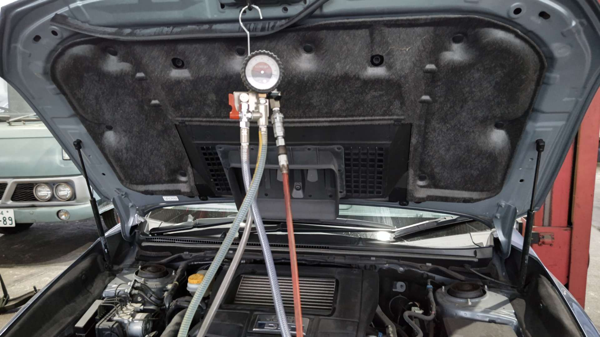 大和郡山市での安心車検は【マスダモータース】に 2021/11/15 スバル レヴォーグ VMG 車検 今回はスバル レヴォーグの車検です。 お客様から「もう最近はこの車余り乗らないから必要最低限でお願いしたい」との事。 とはいえ、今回で三回目の車検ですので何もしないで済む事はなさそうです。 早速リフト・アップして分解、点検していきます。 ホイールにロック・ナットが付いています。 このお客様はちゃんと車に載せていてくださいました。 無いと絶望しちゃいますからね・・・。 インパクト・レンチは使用したらダメですからね。 距離も走っておらず、小屋の中に止めているお陰で消耗品にも痛みは発生していません。 状態が良いものは今回はそのまま行きます。 エンジン・オイルも自身でちゃんと管理されているので問題ありません。 しかし・・・ 必要なのは分かりますが、下回りのカバーは整備の面から言えば・・・ 邪魔ですねw ブレーキ・フルードは交換します。 ブレーキ・フルードと同じくスマート・キーの電池は車検毎に交換しておきましょう。 エアコン・フィルターも交換しておきます。 最後にクーラントを交換します。 今回はクーラント・チャージャーを使います。 まだこれを使ってトラブルが起きる年式ではありませんのでw 後は計測、陸事で書類を貰って終了です。