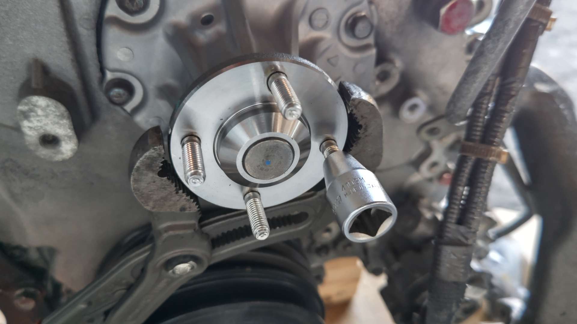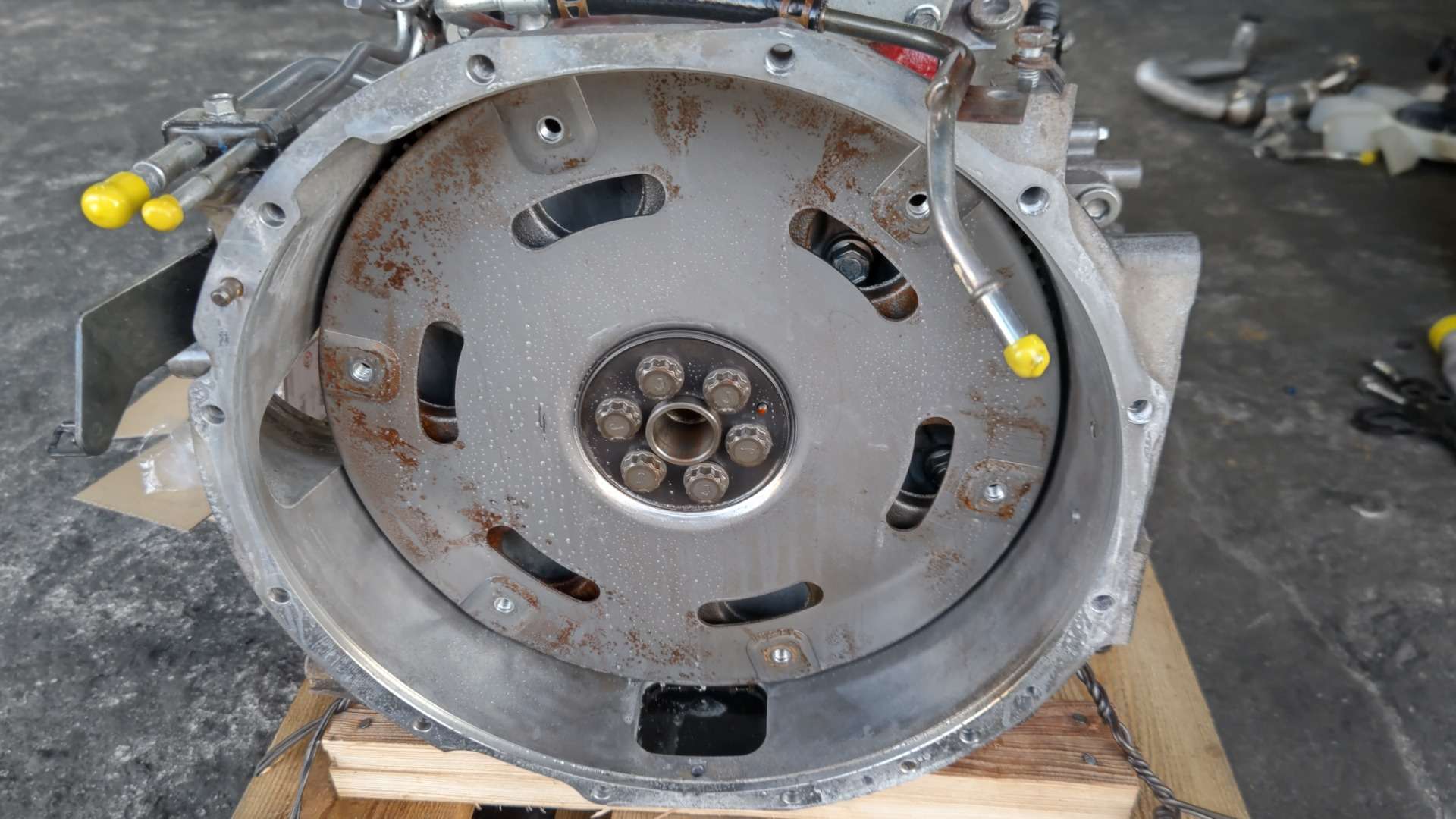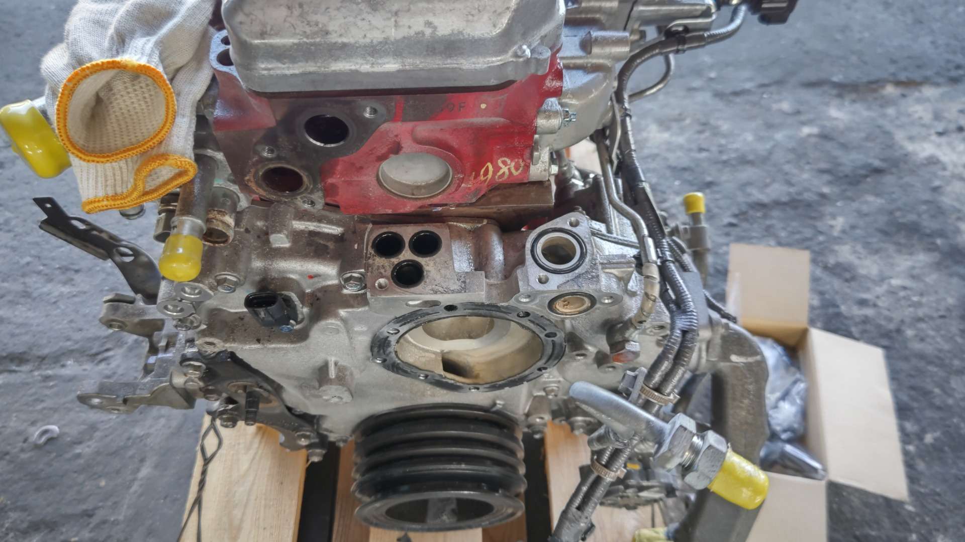 大和郡山市での車の修理は【マスダモータース】で 2021/12/24 日野 デュトロ XZU414M エンジン載せ替えその3 今回はエンジン載せ替えの最後です。 前回エンジンを降ろす所まで行きました。 今回は載せる中古エンジンを整備していく所からです。 かなり程度の良い中古エンジンです。 この状態だと作業し易いのでトラブルが起きやすい所は作業しておきます。 エンジン前部には水のラインにOリングが使われている箇所が複数あり、そこから水漏れしてきますので交換しておきます。 またウォーター・ポンプは保証外になりますので、コイツも一緒に交換しておきます。 こんだけOリングを使っています。 当社では毎年交換してる気がします・・・。 ウォーター・ポンプとカップ・リングを繋ぐスタッド・ボルトは最初から付けてきてくれると助かるんですがね~。 右側にはタービンやらサーモ・スタッドやらがあります。 エンジンを購入した所から「タービンは念の為、元の奴を使ってくれ」との事なので付け替えます。 またサーモ・ハウジングも水漏れし易いのでサーモ・スタッド自体と一緒にガスケットを交換しておきます。 排気周りのボルトは焼き付いてねじ山がダメになりやすいです。 今回は軽く炙るだけで普通に緩んでくれました。 車載状態とは作業性が違いますねw とは言え、狭い所はありますよ・・・。 そんな時に色んな工具が助けてくれますwww 中古エンジンはA/T車でした。 しかし、M/Tと取り付け面が同じなので問題はありません。 A/T用のフライ・ホイールを外してM/T用に付け替えクラッチを移植しておきます。 他にエンジン・マウントやウォーター・バイパス・ホース等を付け替えたら・・・ やっとエンジンを載せられます。 逆の手順でエンジンを載せ終わったら診断機の出番です。 エンジンを載せ替えているのでコンピューターに登録しているノズルIDが変わってきます。 アイドリング不調の原因になったりしますので、忘れずにID登録しておきます。 最後に水やオイルを入れて作動チェック、オーバー・ヒート確認です。 工場でチェックでは問題なかったので、走行テストでもう一度チェックしておきます。 絶好調w これでようやっと納車できましたw なんせエンジン積み替えは何かと時間がかかる重整備ですからね。