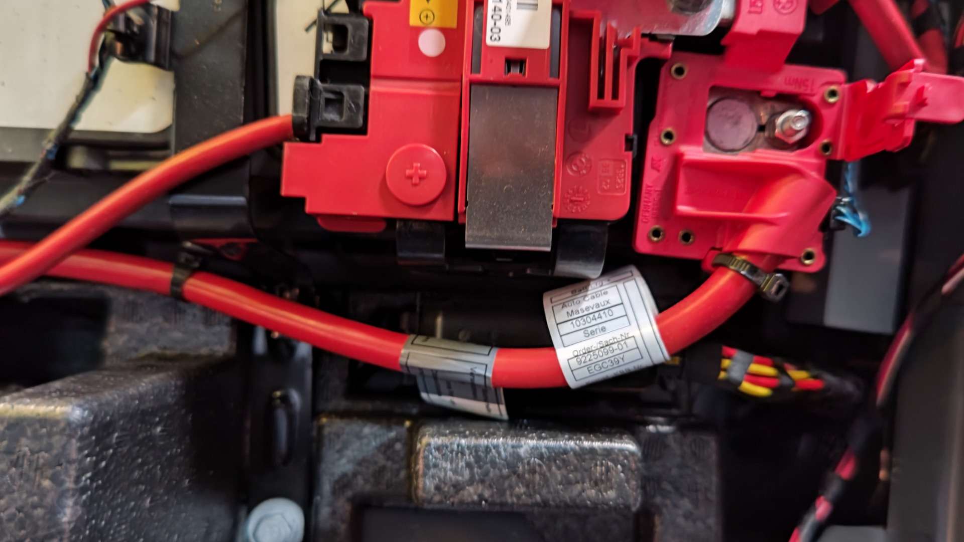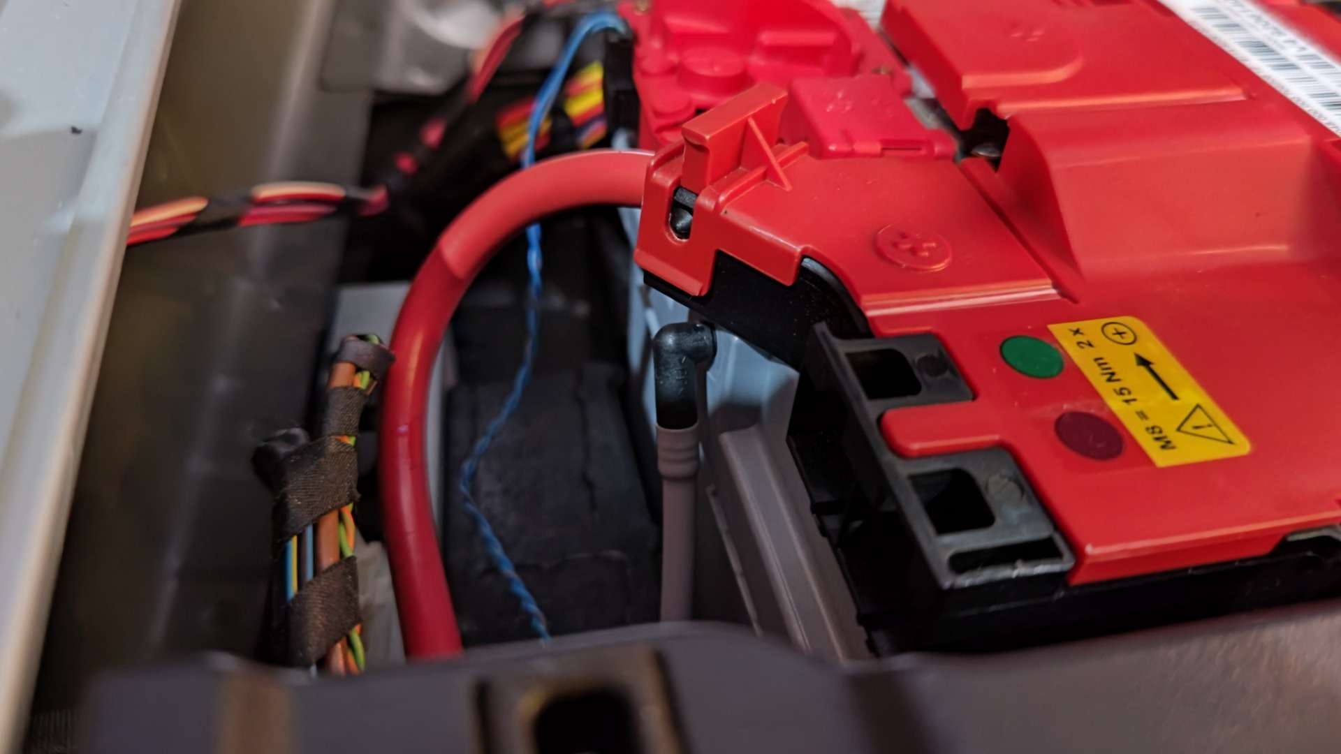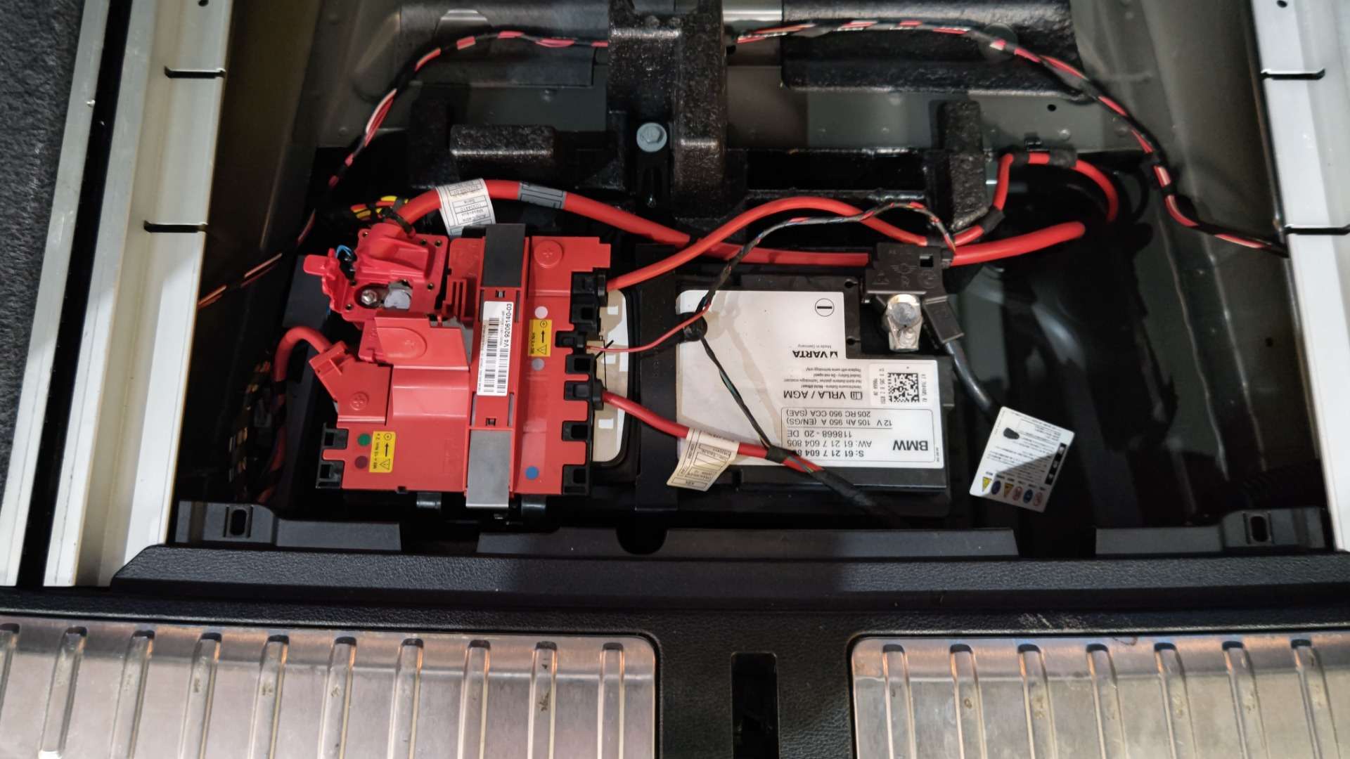 大和郡山市での車の修理は【マスダモータース】で 2022/02/11 BMW X3 WX30 バッテリー取替 今回はBMW X3の修理です。 お客様から「バッテリーをそろそろ交換したい」との事。 バッテリーはこちらで用意して欲しいとバッテリーサイズの写真も撮ってきてくださいました。 外車は搭載バッテリーと同じ性能の物を付けないとトラブルになる事があり、こういう対応をしてくださると大変助かりますw バッテリーが納品されたので作業をしていきます。 この車は荷室にバッテリーが置いてあります。 バッテリーは大きいので、この場所にあるのは作業性が良く助かりますw 外車は端子に色々と付いています。 もう少しスッキリ作って欲しい・・・。 マイナス端子側は普通に外せます。 しかし・・・ プラス端子側がね・・・ 端子を外す前に金属の爪で固定されているカプラ・ケースを外します。 外れたら、やっとプラス端子を外せます。 端子を外したら後は降ろすだけです。 ドイツ車のバッテリーの固定は大概このタイプですね。 いつもの機械に接続しながら交換します。 それと室内置きのバッテリーは発生した水素を逃がすホースの接続をしないといけません。 以前、これが接続されていなくて「何か臭い」と来られた方がいました。 ちゃんと作業はされていないと問題が起きるので、いつも作業には気を使っています。 例え、慣れた作業でもですよw 最後に設定を確認し、ついでに充電電圧や暗電流も点検し作業は終了です。