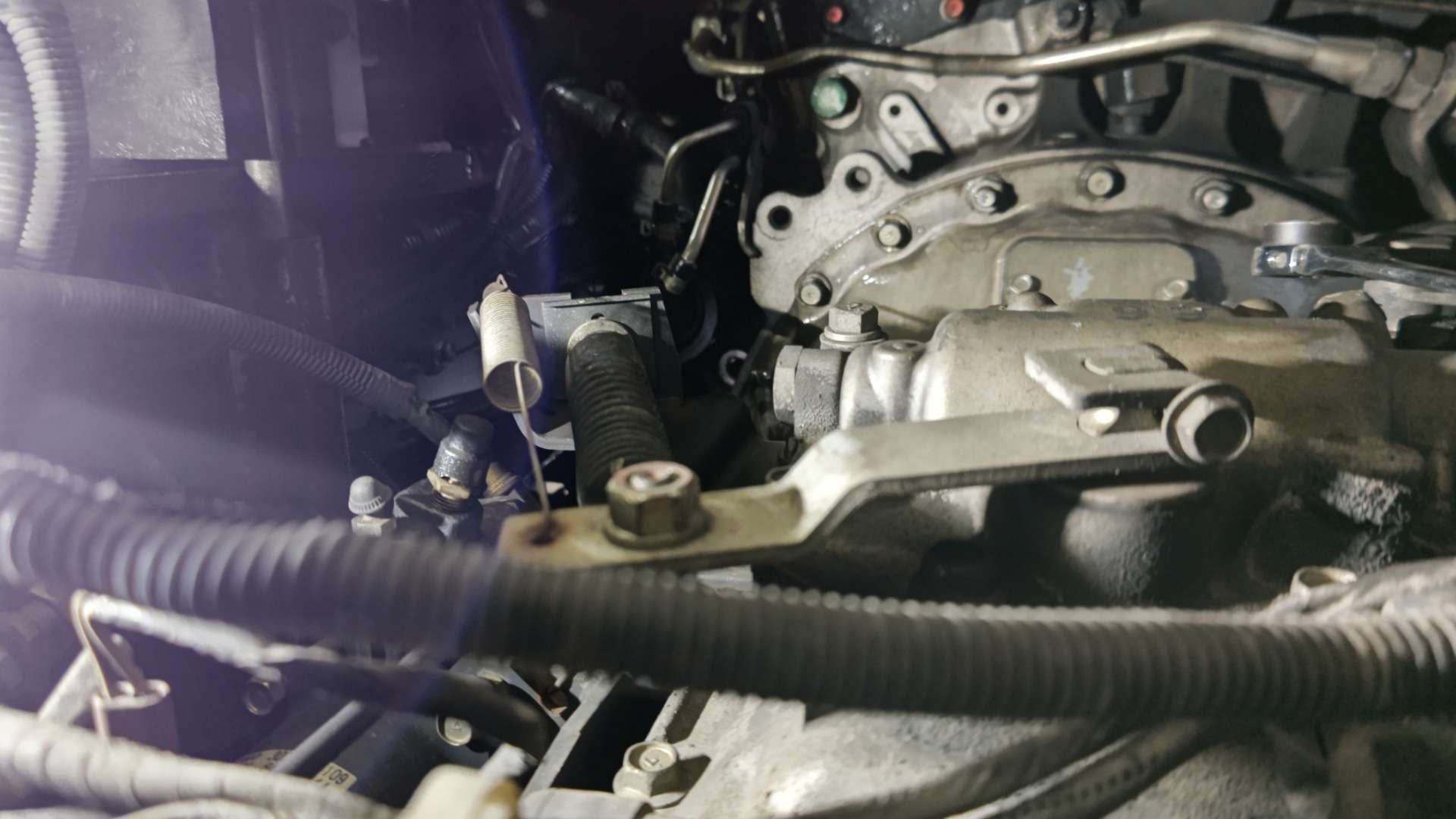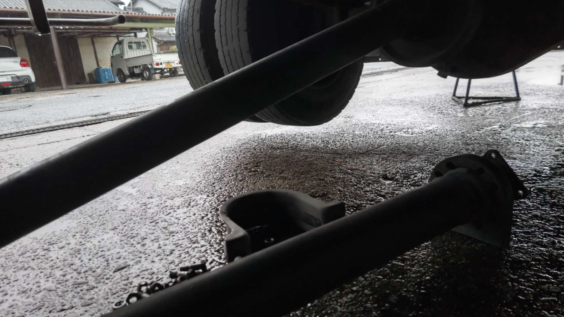大和郡山市での安心車検は【マスダモータース】に 2022/02/19 日産ディーゼル コンドル MK36C 車検その1 今回は日産ディーゼル コンドルの車検です。 車検ではありますが・・・「入庫予定前にスターターが回らない、エンジンがかけられない」との連絡。 確認しに行きましたが、現場でどうこう出来るレベルではなかったので、レッカーで工場までけん引してもらい確認していきました。 スターターを外して点検していきますが・・・ 何かが食い込んでフライ・ホイールも回せない・・・。 ??? どうやらミッションを降ろさないといけないようです。 先ずはバッテリーの端子を外し、おっもいプロペラ・シャフトを外します。 クラッチ・ブースターも外します。 因みに外したクラッチ・ブースターからオイル漏れが発生していました。 使用期間も長いのでリビルト品に交換します。 シフト・ワイヤー等を外していきます。 サイド・ワイヤーや配線を外します。 ウチは4トンまで仕事を受けていますが、ミッションを降ろすのは小型より4トンの方がスペースがあったりと作業し易いですw 重いのを除けばwww ミッション・ジャッキをかけて、ハウジング周りのボルトを外したらミッションを降ろせます。 さて降ろしてみると・・・ クラッチのダンパー・スプリングが砕けていました・・・。 まあディスクも滑りはじめていたのでは?って減り方をしていたので丁度よかった?かもしれないです・・・。 で、フライ・ホイールが回らなかった原因は・・・ 砕けたダンパー・スプリングの一部がフライ・ホイールとハウジングの間に入り込み、暫くガリガリとハウジングを削りながら回り、最後には食い込んでしまって回らなくなったという事でした。 こんな状態で何度もスターターを回そうとしていた跡もありました・・・。 とりあえず今回はここまでにしておきます。