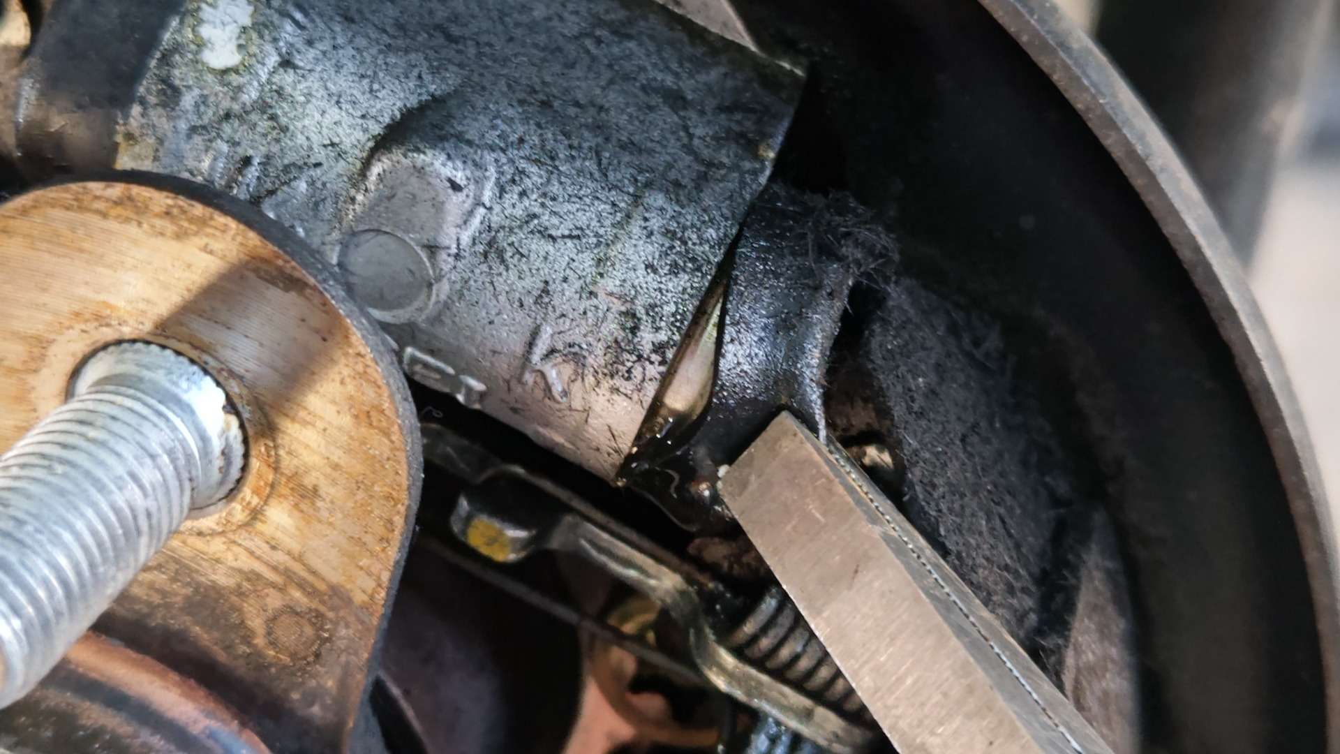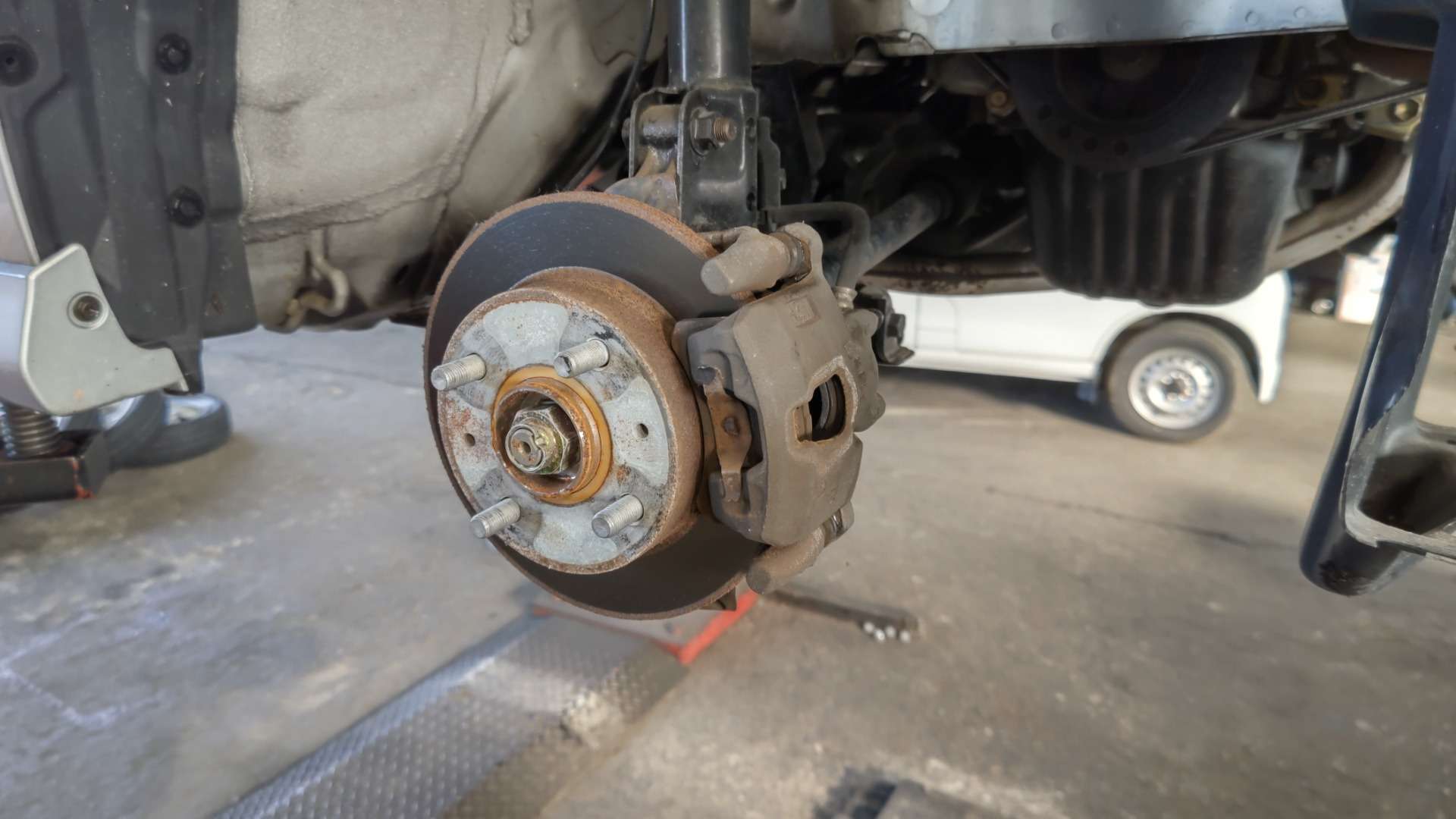 大和郡山市での安心車検は【マスダモータース】に 2022/03/15 ダイハツ ミラジーノ L650S 車検 今回はダイハツ ミラジーノの車検です。 前々回は当社で車検をしていましたが、転勤の為前回は違う所で車検をしていました。 今回、また帰ってこられたので当社で車検を受ける事になりました。 早速リフト・アップして分解、点検していきます。 前回はまあ・・・ エンジン・オイルだけで、他は何もしていませんでした・・・。 その前の車検でシッカリ整備していたとはいえ、やっておくべきことはあるんですがね~。 そんな事は兎も角、前回から4年も経っていると消耗品の状態も悪くなっています。 プラグは交換です。 隣の小さいOリングはラジエターのドレン・コックのものです。 水の交換ついでにコイツも交換しておきます。 ベルトも交換しておきます。 キーレスの電池も弱くなっていました。 この車走行距離は大して伸びてはいませんでしたが、エアコン・フィルターはしっかりとゴミが付いてきます。 バッテリーも交換しておきます。 半端な所で交換していると・・・ よく端子の入りが中途半端な事があります。 そんな状態でナットを締めるから、端子が変形して締まりきらなくなり抜けてきてエンジンがかからなくなっていた事がよくあります。 ちゃんと奥まで入れましょうw スペア・タイヤには空気が一切入っていませんでした。 これじゃあ・・・いざって時に使えません。 ブレーキに関しては・・・ フロントは問題ありませんでした。 しかし・・・ リヤは・・・ 左右ともホイール・シリンダーから漏れていました。 結構な量漏れてきていましたので、今回はASSY交換で対応しました。 タイヤは溝は残っていましたが・・・ ヒビが入っている上に、製造年が・・・ これでは何時バーストしてもおかしくありません。 安全の為に4本全て交換しました。 因みに18年落ちのタイヤがバーストした事があります。 溝が残っているから大丈夫なんて事はありません。 タイヤもゴム製です。 乗らなくて減ってなくても定期的な交換が必要です。 タイヤは自動車の最重要部品ですからね。 後はエンジン・オイルやワイパー・ゴムを交換したら計測、陸事で書類を貰って終了です。