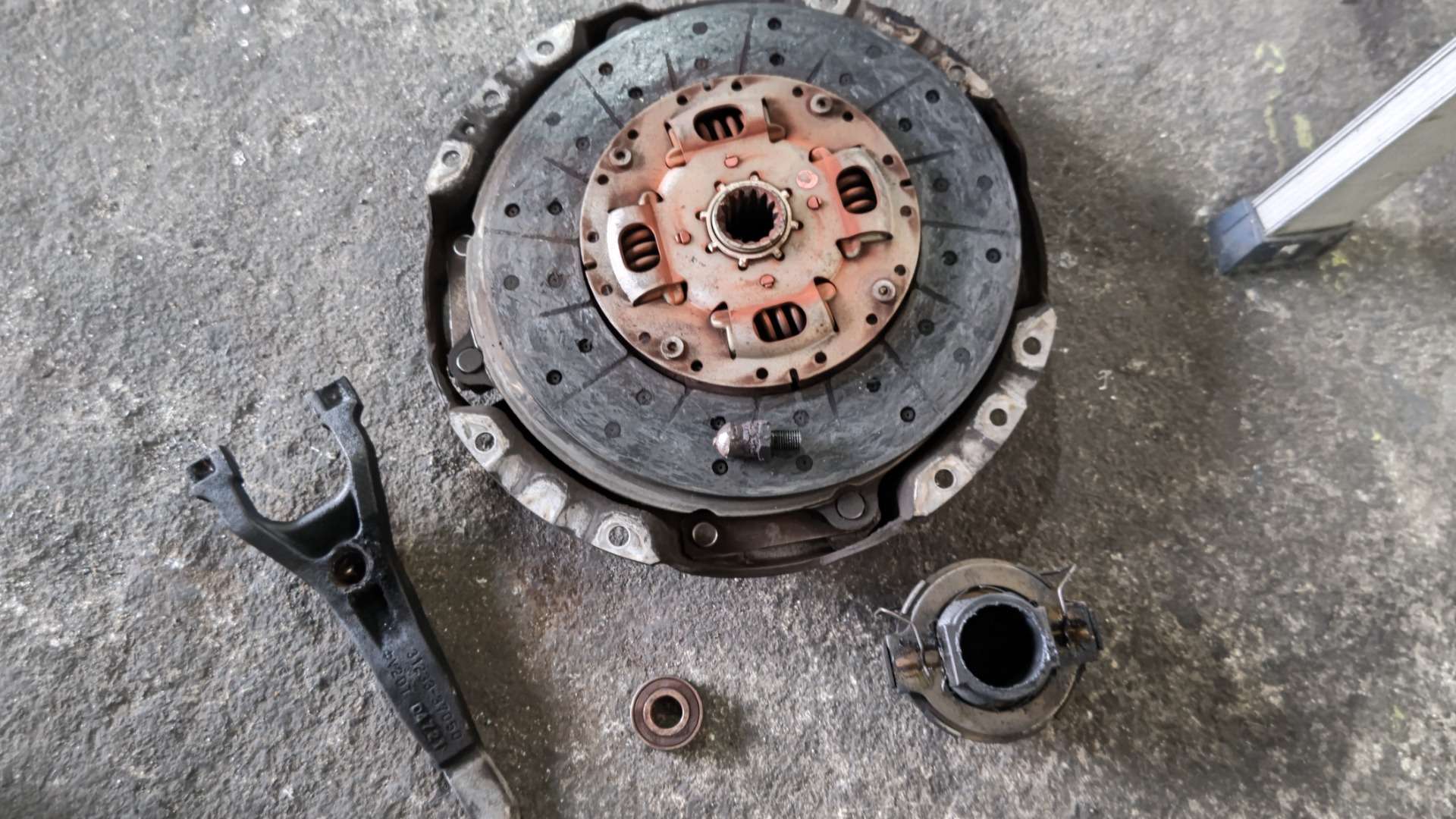 大和郡山市での車の修理は【マスダモータース】で 2022/04/10 日野 デュトロ XZU414M 修理 今回は日野 デュトロの修理です。 運転手から「なんかランプがついた」との事。 工場まで乗っていてもらえたので確認します。 するとチャージの警告灯が点いていました。 テスタで確認していくと・・・ オルタ・ネーターの発電不良でした。 デュトロのオルタ・ネーターの交換は比較的難しくはありません。 ちゃんとした手順でやると安全です。 これで発電も治って警告灯も消えたんですが・・・ 問題がもう一つ。 クラッチパンパン・・・ つまりはディスクの摩耗が限界にきているんです。 おいおい運転手、仕事でトラックに乗るならちゃんと気付いておいてくれ。 配送途中で動かなくなったら会社に迷惑かかるぞ・・・。 そんな状態ですからソコの社長様に連絡を取り、作業に取り掛かります。 邪魔な排気ブレーキを外し・・・ 二本来ているワイヤーを外し・・・ 配線回りを外し・・・ プロペラ・シャフトやサイド・ブレーキ関係を外したら・・・ ミッション降ろして・・・ はい!どんw 見事にクラッチ・ディスクが摩耗し切ってました。 交換した部品なんですが、ディスク、カバー、レリーズ・ベアリング、パイロット・ベアリングは一緒に交換が基本ですが、デュトロに関しては・・・ レリーズ・フォークとピボットも要交換になりやすいです。 運送業なんで走行距離もそうですが、その分クラッチを踏むことも増えます。 すると、どうしてもフォークの軸になる部分が摩耗します。 特にデュトロは顕著ですね。 ピボットなんて見てわかる位の感じです。 フォークの穴も写真では分かりにくいですが、かなり変形しています。 鋳物のせいなのかもしれません。 ここまで交換して作動、走行テストをします。 全て問題なかったので作業は終了です。