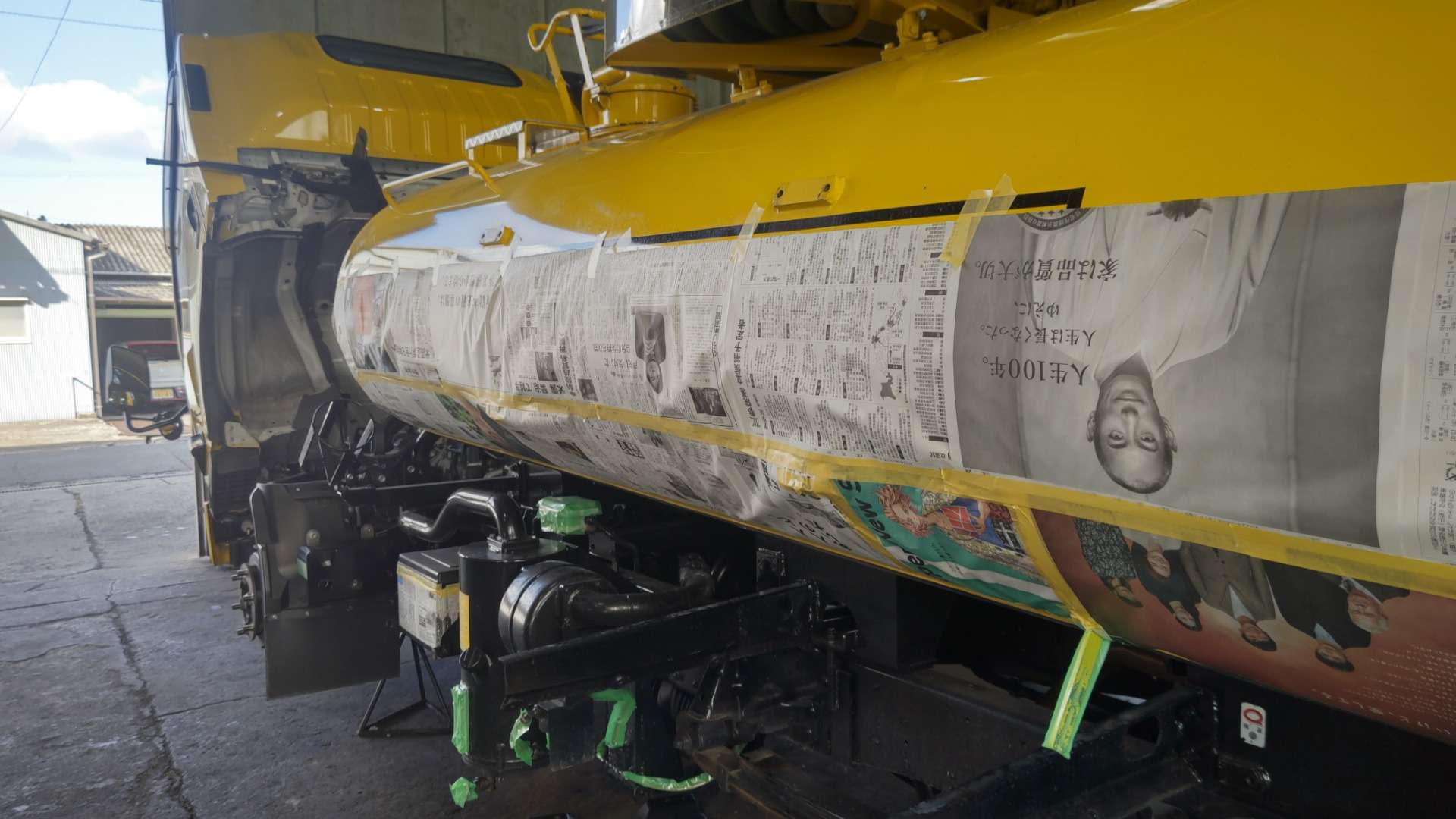 大和郡山市での安心車検は【マスダモータース】に 2022/04/30 イスズ エルフ NPR81YN 車検 今回はイスズ エルフの車検です。 これは基本大きな現場に出す用なので距離は少なく、ちゃんと屋根の下で管理されている為に非常に状態も良く、なにより低年式なので問題はなさそうです。 早速リフト・アップして分解、点検していきます。 やはり保管場所も良いのでゴム類の状態も良く、今回は作業も少なくて済みました。 とは言え、必ず使用し負荷もあるPTOのジョイントは交換します。 ここはゴム製な上、自分が独立する以前にもげた事があった為車検毎の交換の指示を受けていますからね。 ワイパー・ゴムも交換しておきます。 ブレーキ回りも漏れ等なく、今回はブレーキ・フルードの交換だけです。 そして一番の大仕事・・・ シャシー・ブラックを吹いておきます。 ある意味水回りの仕事なんで錆易いですからね。 見た目も良くなります。 この手の作業車は見た目を問われる事もありますので。 ホイールもシルバーに塗ってから取り付けます。 後は計測、陸事で書類を貰って終了です