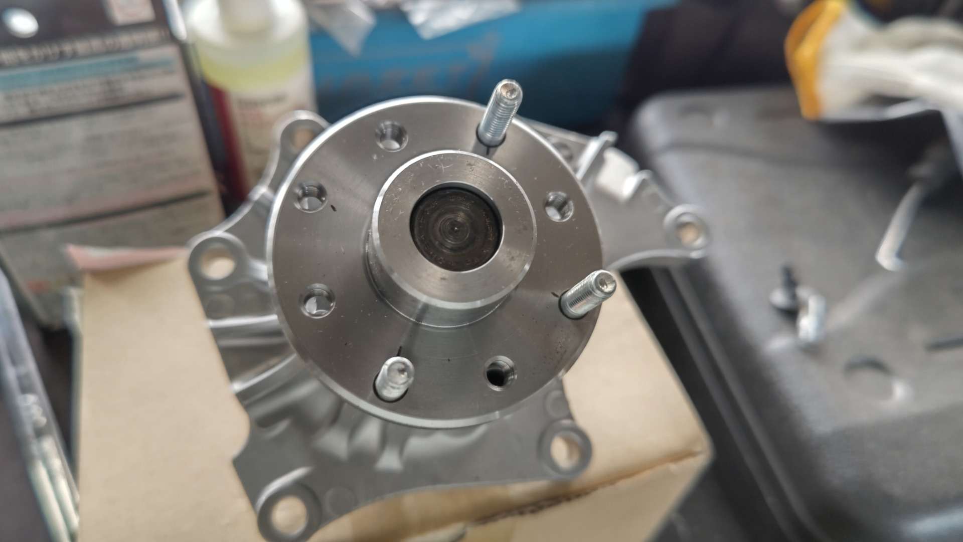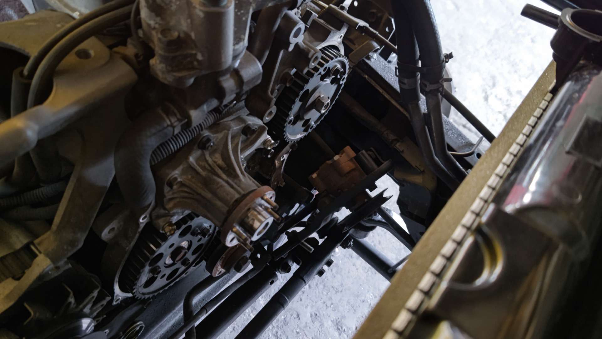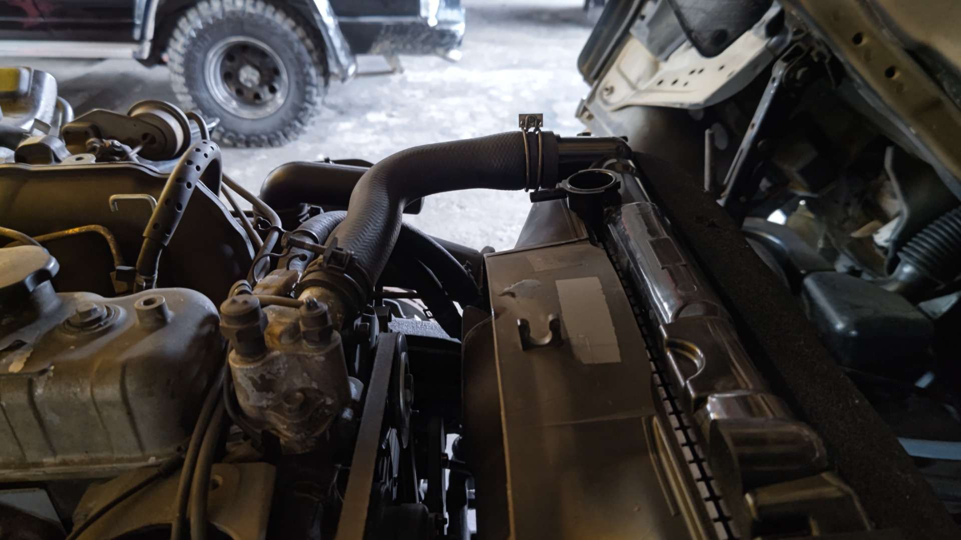 大和郡山市での安心車検は【マスダモータース】に 2022/07/13 イスズ エルフ NKR69CAE 車検 今回はイスズ エルフの車検です。 予備車として使われている車なんで古いクルマです。 早速リフト・アップして分解、点検していきます。 前回の車検でそれなりに整備はしていましたが、年式と走行距離から・・・ タイミング・ベルトの交換をすることになりました。 最近のトラックでは見かけませんが、昔の一部の小型トラックはタイベル式があったんですねw 先ずは水を抜き、前側のベルトやプーリーなんかを外していきます。 前側はスッキリしたらタイミング・カバーを外しますが・・・ パワステ・ポンプが邪魔になるのでボルトを外してずらします。 アクセル・ワイヤーなんかの細かい物も外しておきます。 そうするとタイミング・カバーが外せます。 タイベルと一緒に交換出来るものは交換しておきます。 引き取りの時に水温の上りが悪かったのでサーモ・スタッドも交換しておきます。 トラックのウォーター・ポンプはカップ・リングを固定する為のスタッド・ボルトが外した状態で来ます。 ・・・付けといてくれたら楽なのに。 マニュアル通りにタイミング・ベルトの張りを調整して組み上げます。 その後のエンジン始動時が緊張しますが・・・ 問題無く始動し安定していたので一安心ですw それ以外にワイパー・ゴムやブレーキ・フルード、PTOのジョイントを交換し・・・ 最後にシャシー・ブラックを吹いて計測、陸事で書類を貰って終了です。