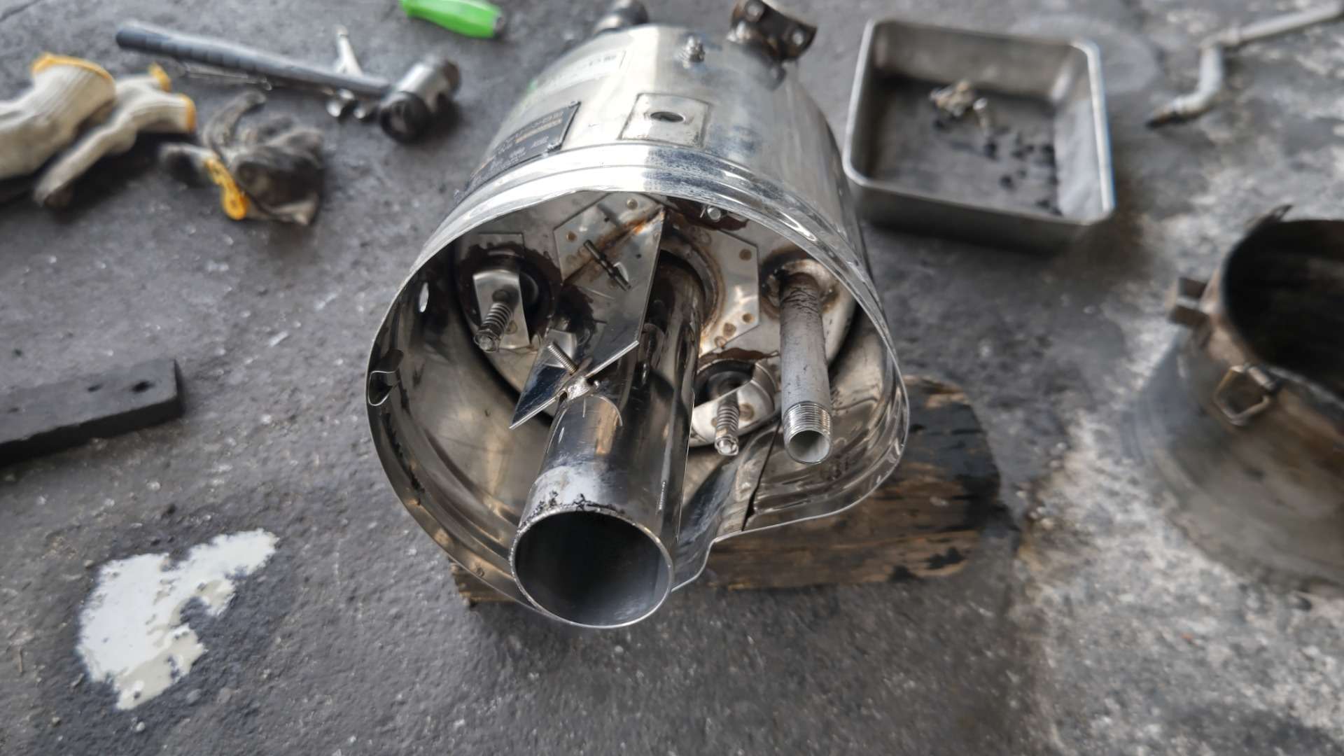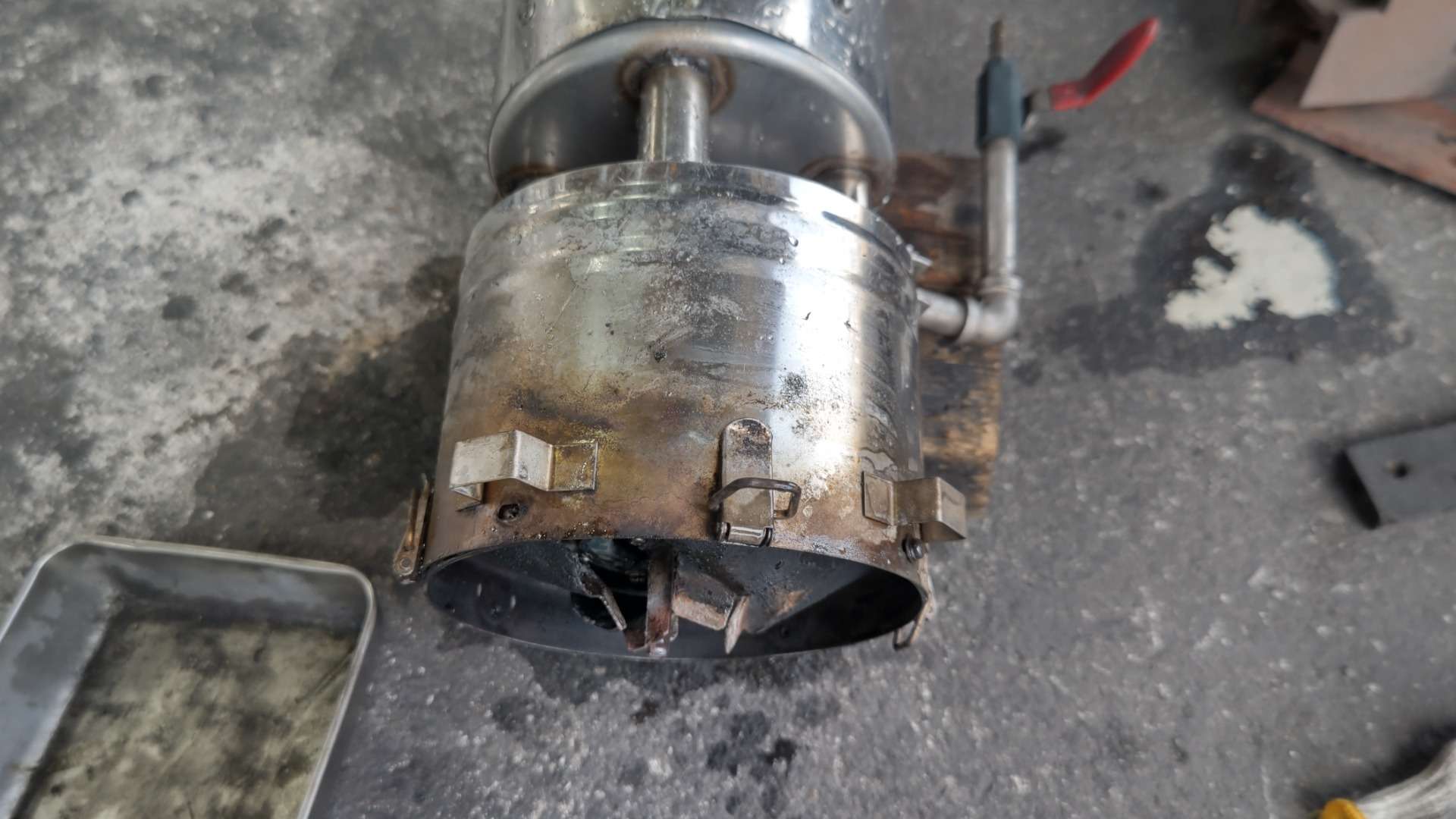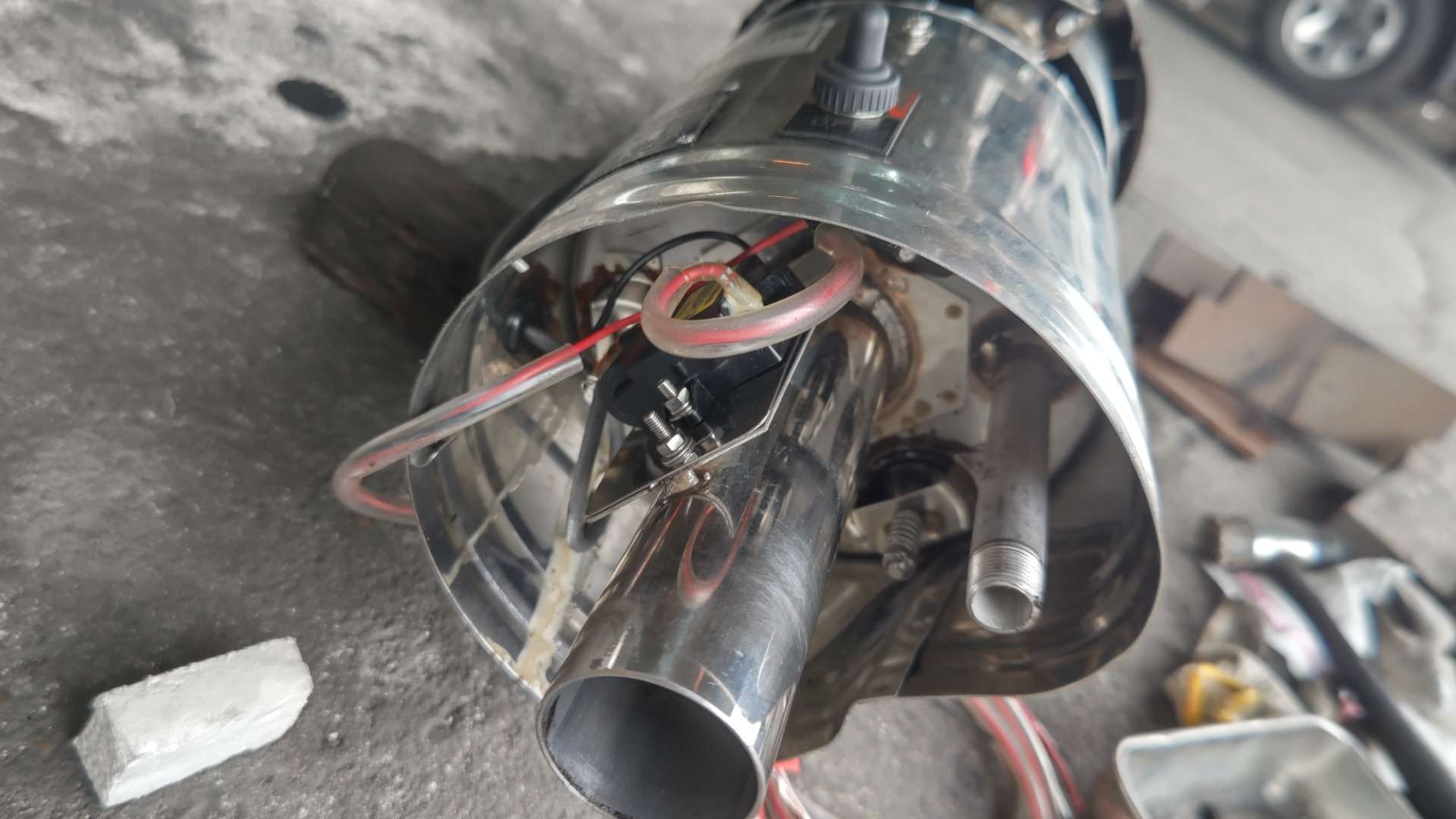 大和郡山市での車の修理は【マスダモータース】で 2022/07/16 イスズ エルフ NKR85AN ボイラー修理 今回はイスズ エルフの修理です。 バキューム・カーの消臭ボイラーの調子がおかしいとの事。 走りながら作動させるとバック・ファイアみたいになる? 悪そうな所をオーバー・ホールしていこうと思いましたが・・・ メーカーはもう無いので部品をどうしたものか・・・ と、思いましたが、当時の管理者さんに感謝w 一個だけでしたが、倉庫にキットが残っていましたw 別の車に付いていた古いボイラーも置いてあったので、コイツをオーバー・ホールして交換してしまいます。 外してあったボイラーは発火装置が壊れて外していました。 それ以外は問題なさそうなので、予定通りに作業を進められます。 順番にばらしていきます。 上部の燃焼室を外します。 ついでにガスのノズルは交換しておきます。 発火装置が付いている下部のカバーを外します。 オーバー・ホール用のイグニッション・コイルを取り付けます。 最初に付いていたものより大分と小さくなって取り付け易くなっていました。 カバーを付けなおし、点火用のスイッチを取り付けます。 上部を取り付け点火プラグを交換します。 これでオーバー・ホールは終了です。 ボイラーを付け替えて配線を引き直し、ガス・ホースを繋いで作動チェックします。 停車時は問題ありません。 走行時は・・・問題なく作動しています。 これで作業は終了です。