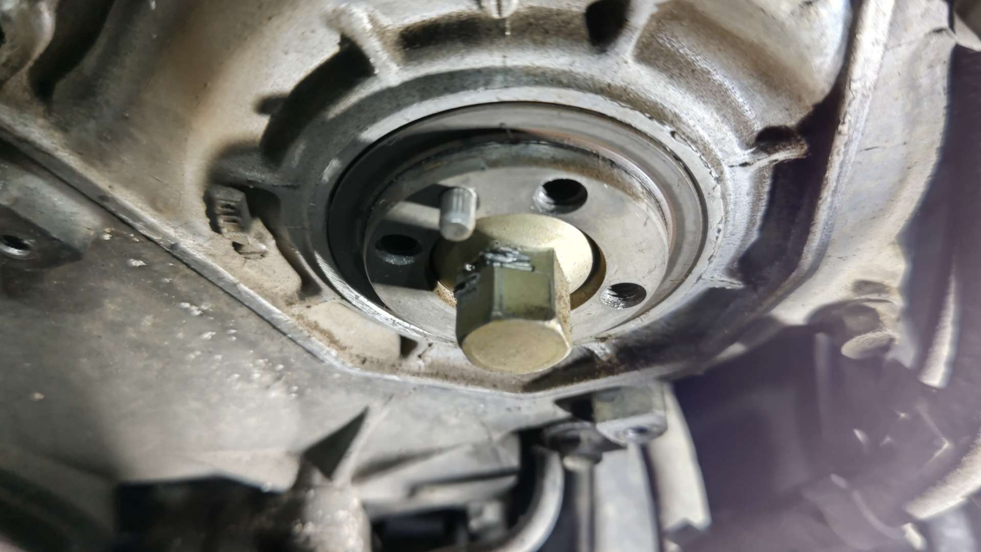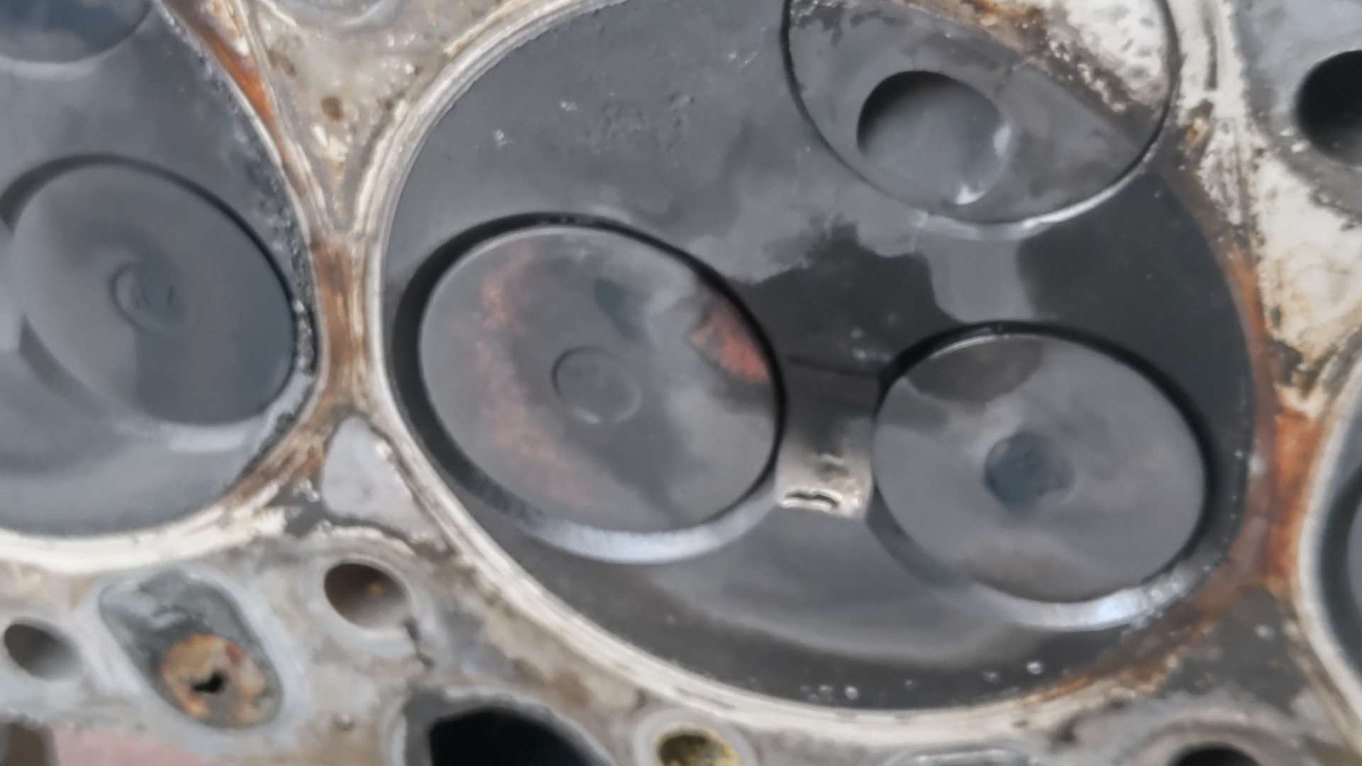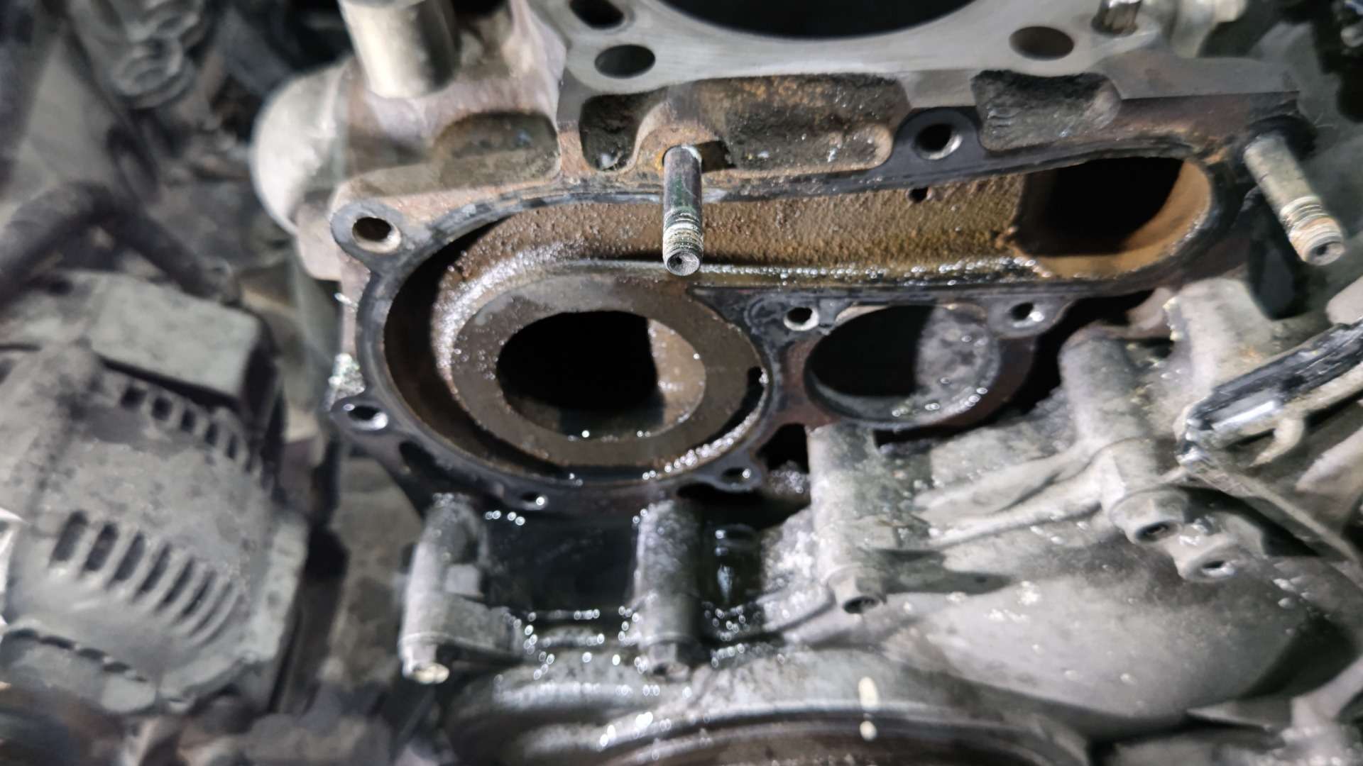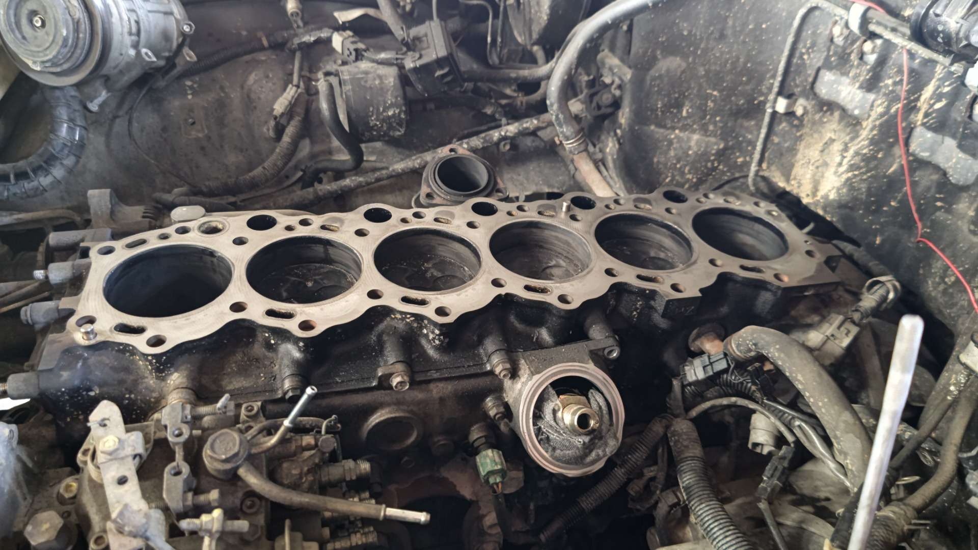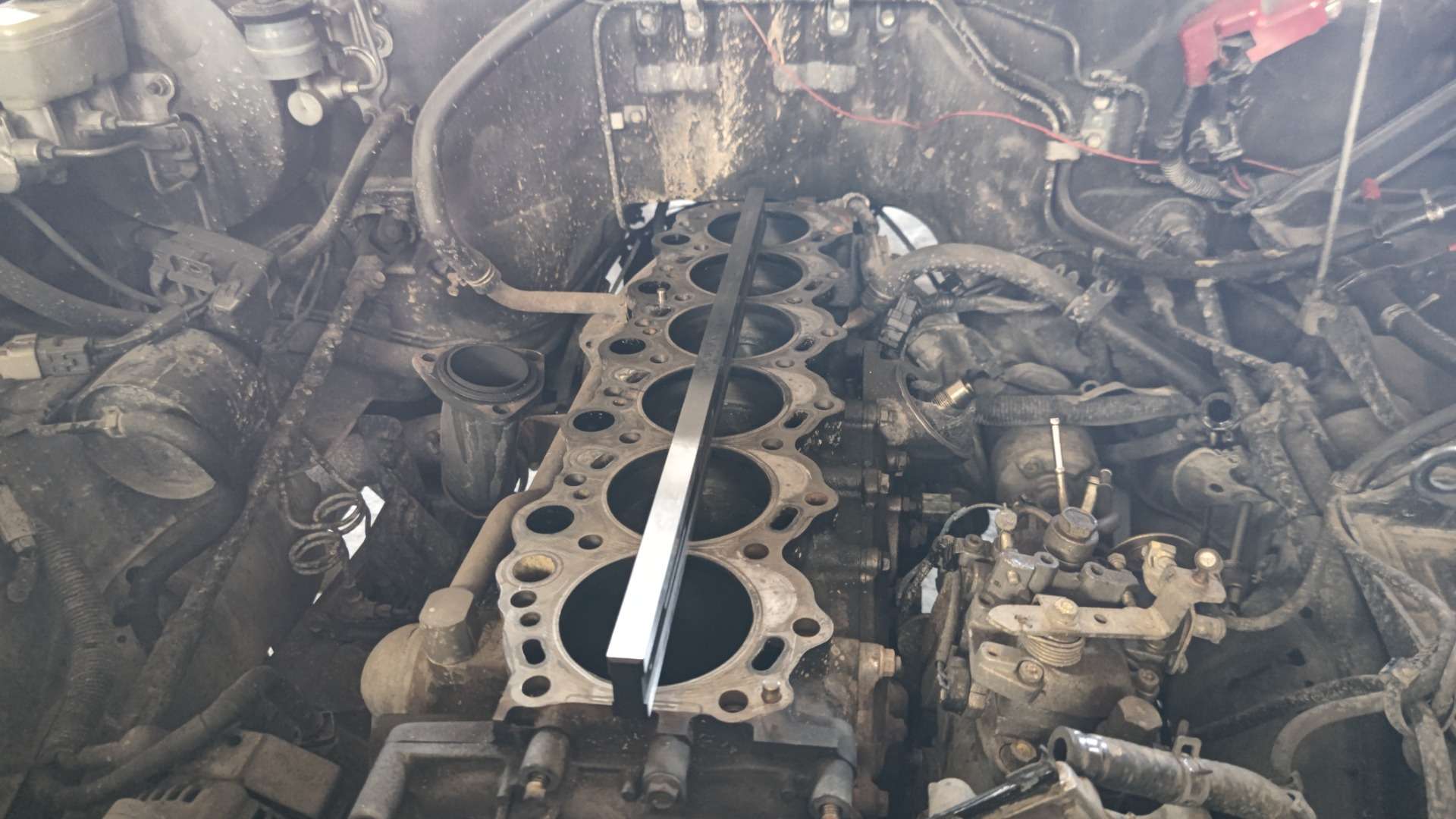 大和郡山市での車の修理は【マスダモータース】で 2022/07/25 トヨタ ランドクルーザー HZJ77HV オーバー・ヒート修理 その3 今回も前回の続きです。 シリンダー・ブロック周りのパーツを外し終えて降ろす所です。 24本あるヘッド・ボルトを外してシリンダー・ヘッドが降ろせました。 降ろしたシリンダー・ヘッドを確認していくと・・・ バルブが赤く焼けている所があります。 あ~これは・・・ 取り合えず構成部品を外して水圧テストに出します。 水圧テストの結果が出る前にブロック側の点検をしておきます。 ガスケットを剥してオイル・ストーンで磨き、状態を確認します。 ・・・ふ~こちら側に問題はありませんでしたw コチラにも問題があれば最悪エンジン積み替えもありましたからw これでシリンダー・ヘッドにも問題なければな~ ・・・なんて甘い考えでした。 見事にクラックが入っていて交換という事になりました。 いや・・・わかってはいたんですがね・・・水の吹き上げ方の酷さから考えたら で、シリンダー・ヘッド含めかなりの交換部品を発注したんですが・・・ メーカー側の諸事情により一部部品が納期未定なんて状態に! 替えの利かない部品だけにお客様に時間がかかる旨を連絡し、その間出来る事をしておきます。 と言っても、さほどやれることはないんですが・・・ 水漏れの原因だったウォーター・ポンプを交換しておきます。 ここのガスケットは剥すのに苦労しますw ついでに換えれるシールなんかも交換します。 ・・・が、なんでこんな傷がナット部に入るねん? これも恐らく以前の整備屋がやらかしたんでしょうが・・・ なんでこうなるのか理解できませんでした・・・まったく。 今回はここまで。 次からようやっと部品が揃って作業再開ですw