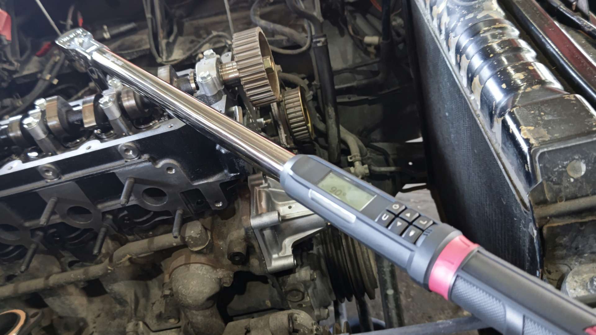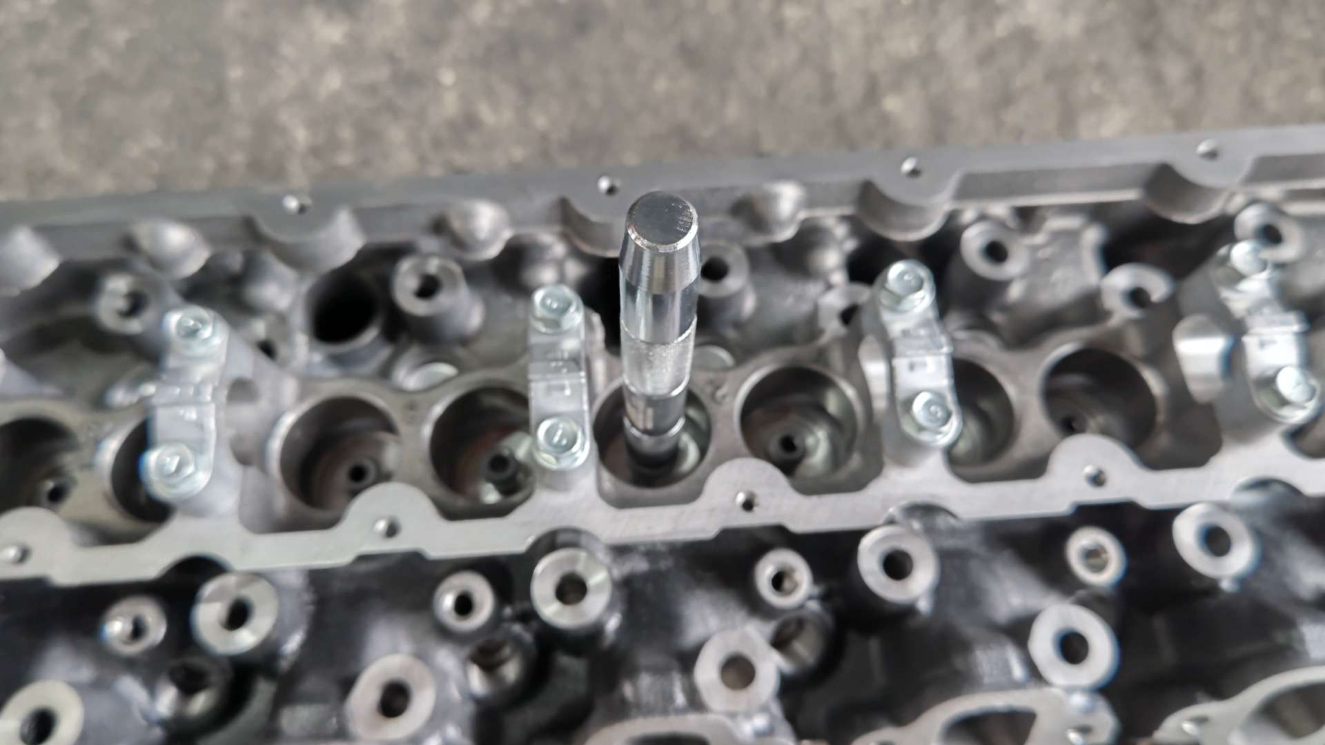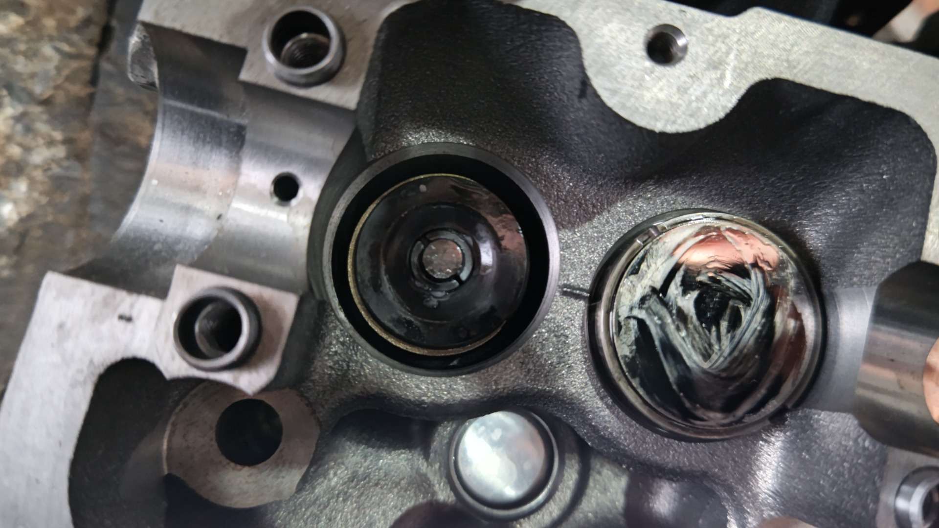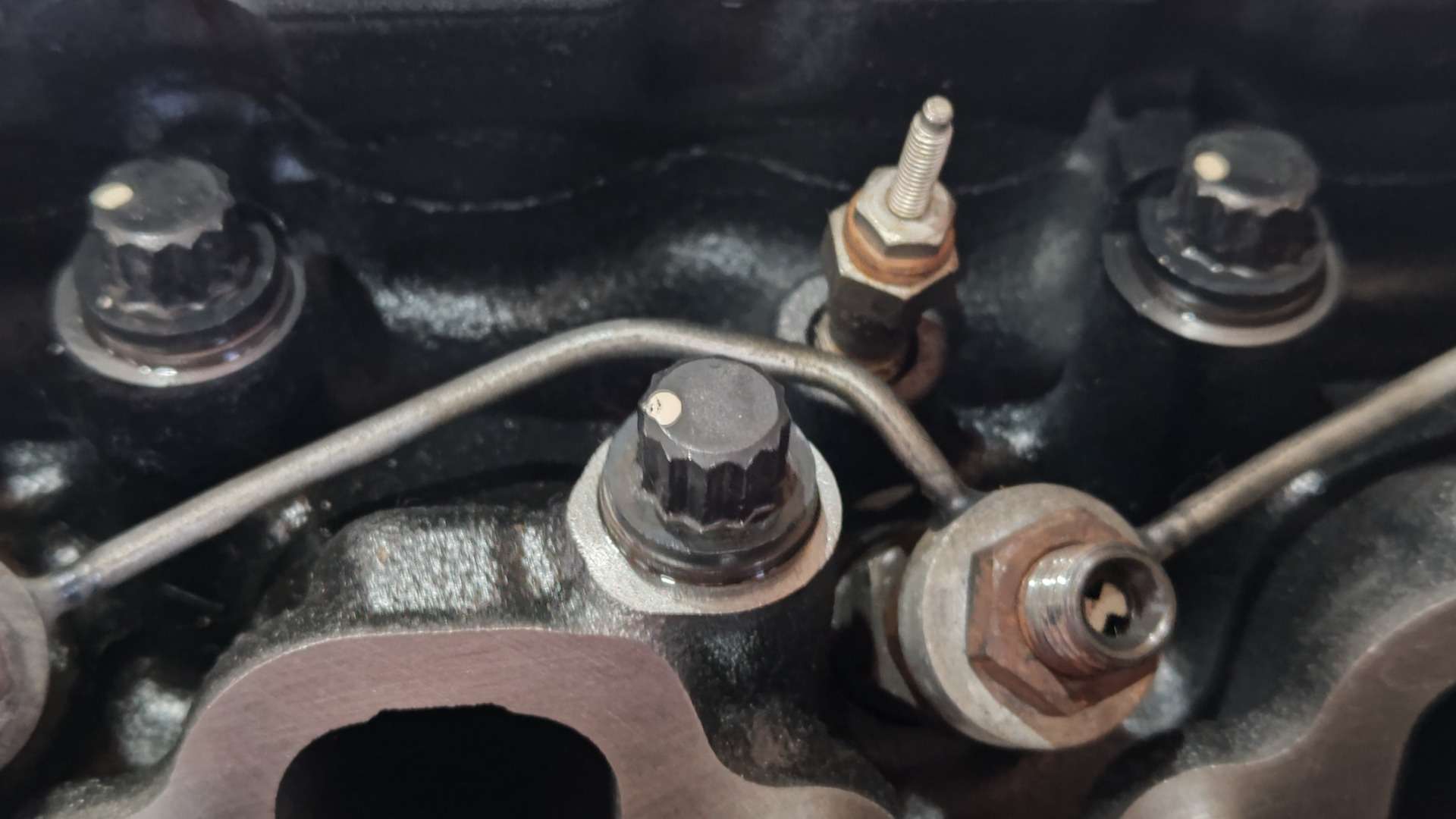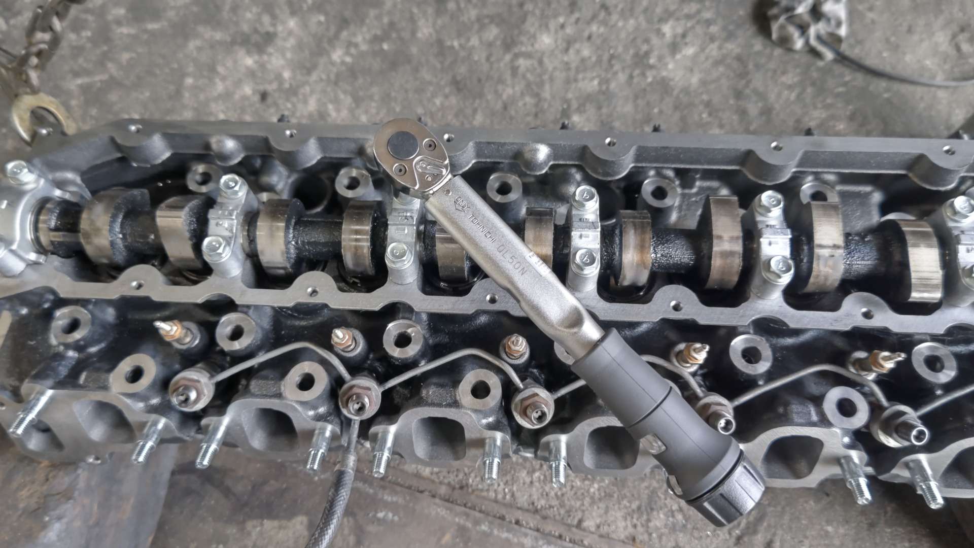 大和郡山市での車の修理は【マスダモータース】で 2022/07/28 トヨタ ランドクルーザー HZJ77HV オーバー・ヒート修理 その4 今回も続きです。 前回は分解を終えて部品待ちになった所まででした。 実際かなり長期間待たされました・・・。 が、ようやっと部品が揃ったので作業を再開していきます。 新品のシリンダー・ブロックに部品を取り付けていきます。 先ずはバルブ・ステム・シールから。 兎に角もバルブ周りをバラして組み付けるのが一番しんどかったですw 次にバルブを取り付けます。 バルブ自体は問題なかったので、コストも考えて再使用します。 ここが一番面倒な作業です。 丁度バルブの真ん中にコッターと呼ばれるスプリング・シートを固定する部品がいるのですが、これの脱着が難儀するんです。 このような専用工具を使ってスプリングを圧縮し、シートを固定するコッターを脱着するのですが・・・ ウチは一人で作業しているものですから・・・ 専用工具で圧縮出来てもバランスは悪く、外れないように片手でシッカリ固定して片方で脱着しないといけない・・・ と、中々にシンドイ作業でしたw 他にノズル等の取り付けておけるものを取り付けたらカム・シャフトを取り付けておきます。 シリンダー・ヘッド周りはちゃんとトルク管理しながら取り付けないと変形したり、燃料が漏れたりとロクな事になりません。 クレーンで吊り上げてシリンダー・ヘッドをガスケットを挟んでブロックの上に載せます。 載せたらヘッド・ボルトを取り付けます。 ヘッド・ボルトは規定トルク+90度+90度で締め付けます。 昔はペイントしてからトルク・レンチで締めて、アングル・ゲージで角度を見ながら締め付けていましたが・・・ 現在はジャイロ搭載のデジタル・トルク・レンチの登場で手間が大幅に短縮されました。 技術の進歩は有難いものですw 工具が良くなっても基本は従来通りが必要です。 ヘッド・ボルトにペイントは必ずしておきます。 これで目視でもちゃんと締め付けられているか?締め忘れがないか把握出来ますからね。 なんせ24本もボルトあるんですものw 締め忘れる可能性大ですしね。 さて、今回はここまで。 次回でようやっと終わりますw