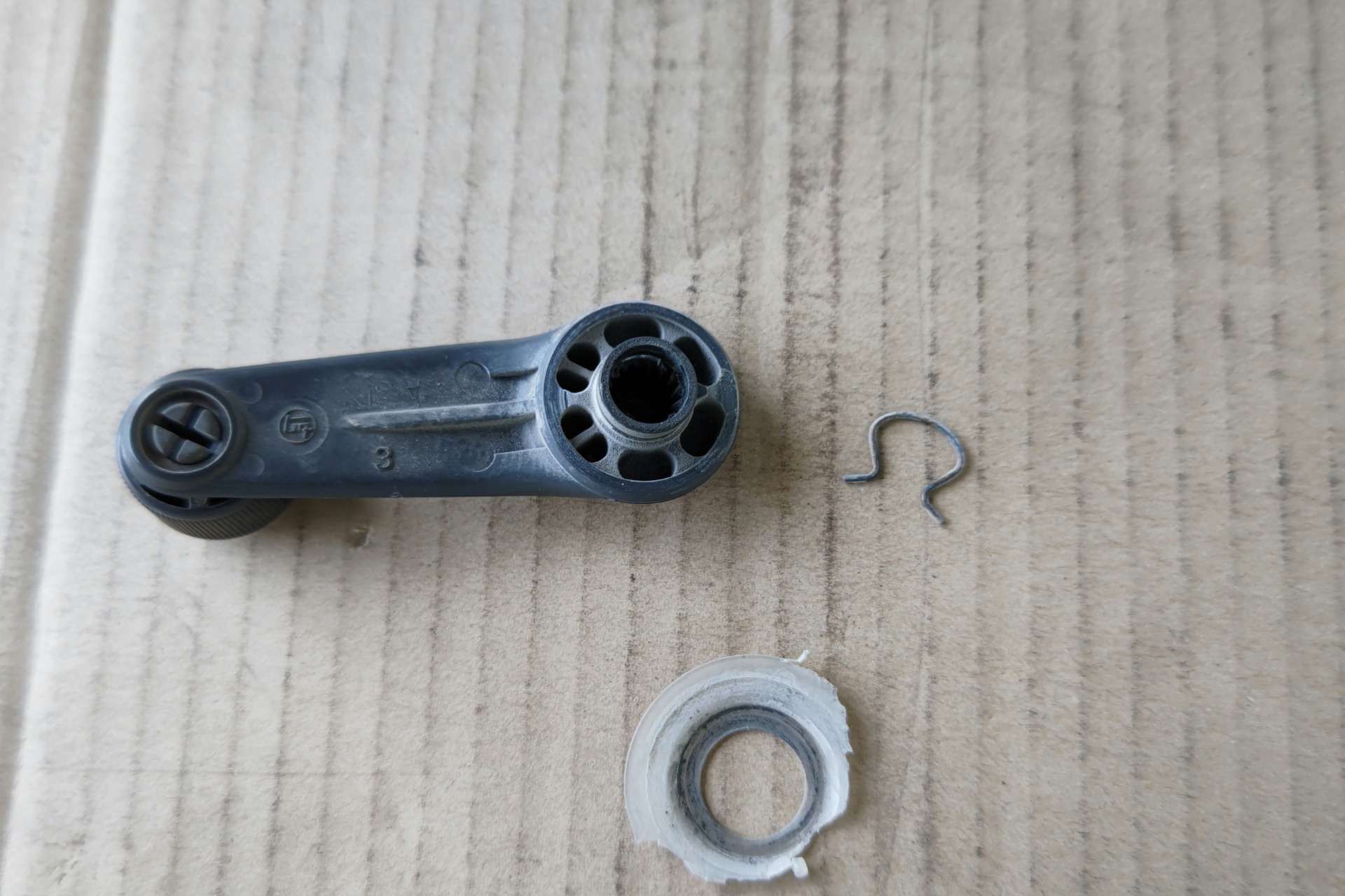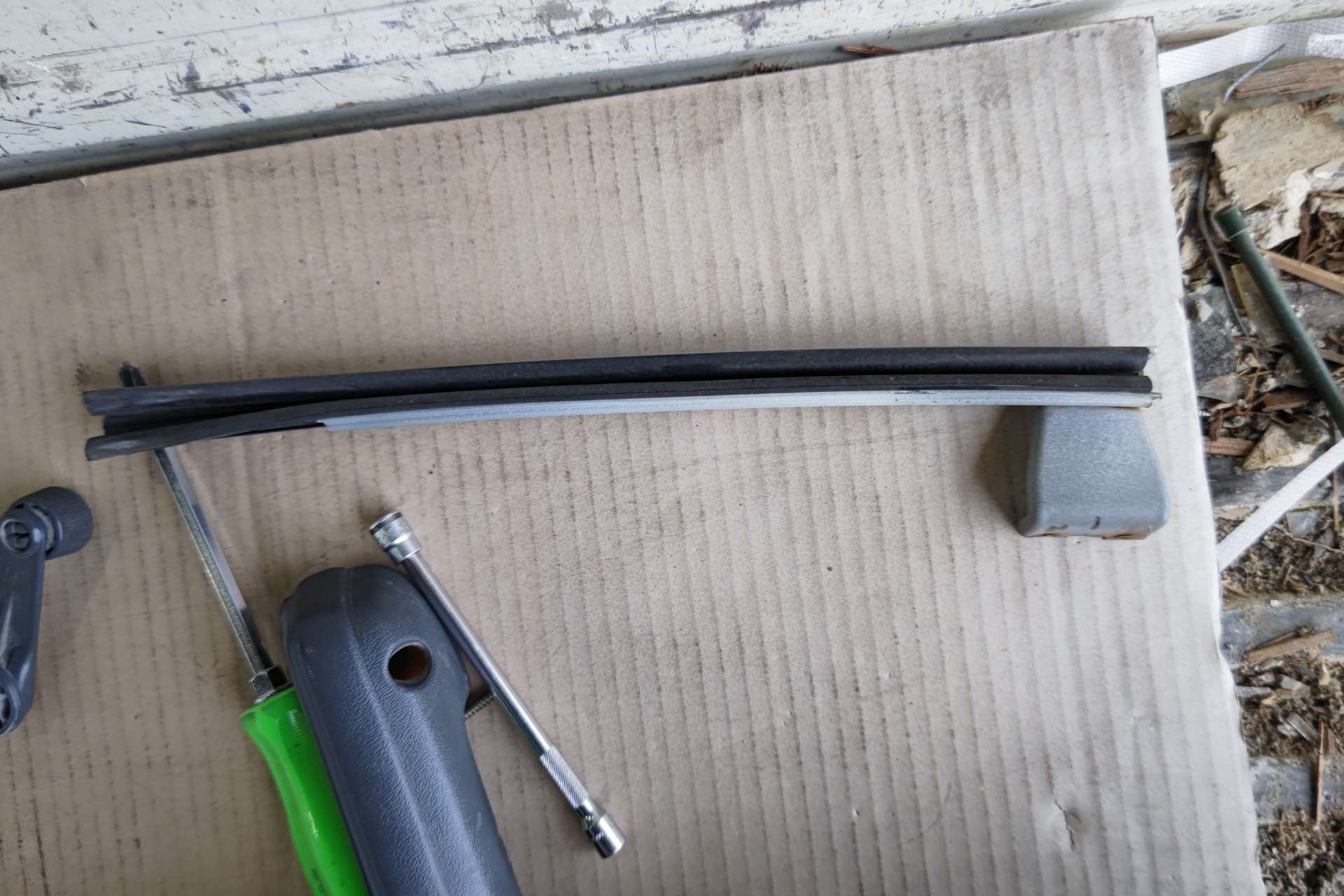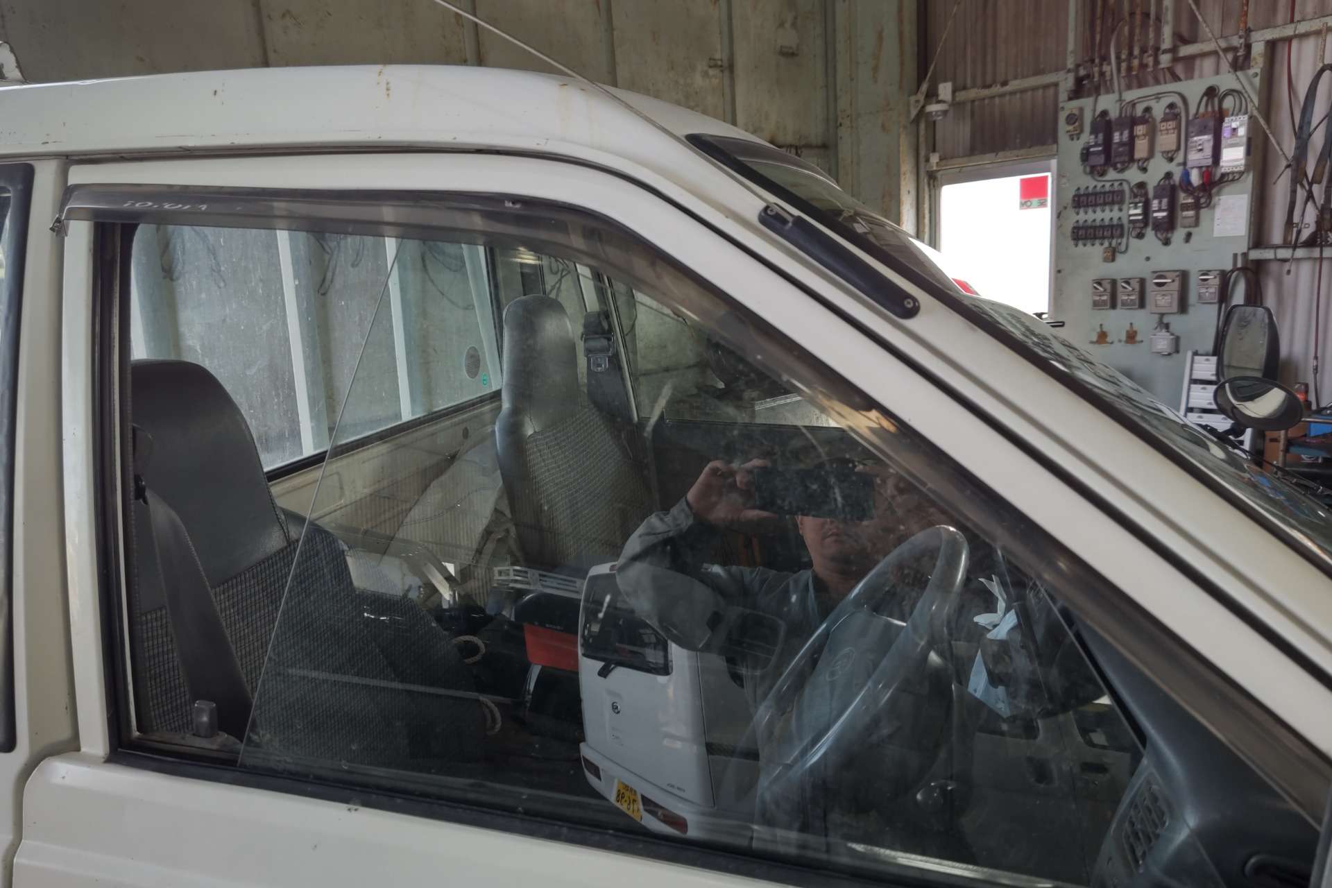 大和郡山市での車の修理は【マスダモータース】で 2022/08/22 トヨタ ライトエース YM55 ガラス落ち修理 今回はトヨタ ライトエースの修理です。 お客様から「運転席のガラスが動かなくなった」との事。 乗ってきて下さったので、そのまま預かる事になりました。 状態を確認すると・・・ これは・・・ レギュレーターが潰れたな・・・。 部品を発注して作業を始めます。 内張を外していきます。 商用な車ってこともあり、内張を外すのは難しくありません。 手動ウィンドウなんでウィンドウ・ハンドルを外すのにコツはいりますがw 確認すると・・・ やはりレギュレーターのレール部が外れていました。 ガラスの方には問題はありませんでした。 外したレギュレーターです。 レールの溝に入る樹脂のローラーが無くなって外れていました。 経年劣化もあったでしょうが、今回はそれだけが原因ではありませんでした。 それは・・・ ドア内部にあるガラスのレールが割れて外れていました。 無理な角度になって力が入ったのも原因でしょう。 問題はレールの完全な修理がきかない事です。 修理しようとしても一ヵ所が普通に溶接できない、しようものなら周りを切って溶接、鈑金・・・ そんな手間なら中古のドアに変えた方がいい。 でも、程度のいいドアは見つからなかった・・・。 仕事で使うので長期に預かってもいられない・・・。 なので・・・ 取り合えずで直す事になりました。 外れたレールの下部はステーが付いていて、それがドアにスポット溶接されていましたが、そのスポット溶接が剥がれて穴が空いていました。 そこで・・・ ステー側にも穴をあけリベットで固定しました。 思ったよりシッカリ付いてくれました。 お客様にゆっくり作動させて変な力かかったら無理に動かさないで、また壊れたら今度は中古ドアに交換する・・・と説明して今回の修理は終了しました。