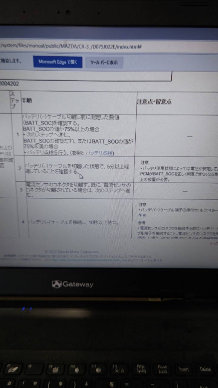 大和郡山市での車の修理は【マスダモータース】で 2022/11/03 マツダ CX-3 DK8AW i-stop不良 今回はマツダ CX-3の修理です。 初めてのお客様から「i-stopが使えない}との事。 預かって点検していきます。 結果としてバッテリーの劣化をECUが判断してi-stopが作動しないようにしていました。 という事でバッテリー交換します。 アイドリング・ストップが付いている車はバッテリーがデカいです。 おまけに価格もお高い・・・ユーザーには優しくないですね~。 最近の車は出来るだけ保護機能が付いた機器を使って交換した方がいいです。 中古で購入されているようですが・・・ 販売業者に言いたい。 少しでも儲けたいのか知らんけど、その場しのぎのリユースバッテリーなんか使うなよ。 まして、ただでさえバッテリーの持ちの悪いアイドリング・ストップ車になんか使うなよ・・・ 全く・・・。 マツダのi-stopはバッテリー交換をしたら初期設定をしないといけません。 こういう所はトヨタを見習ってって言いたい・・・。 預かった時にもう一つ気になった事が・・・ インパネにメンテナンスのランプが点灯していました。 メンテナンスのランプは車両のマルチ・ディスプレイで確認できます。 これは助かりますw で、内容は・・・ 要するに燃料エレメントに水が入ってますって事です。 ついでに作業しておきます。 セジメンタは燃料タンクの横に付いてます。 下に付いているパーツを緩めて水抜きを行います。 水抜きが終わったらリセットして作業は終了です。