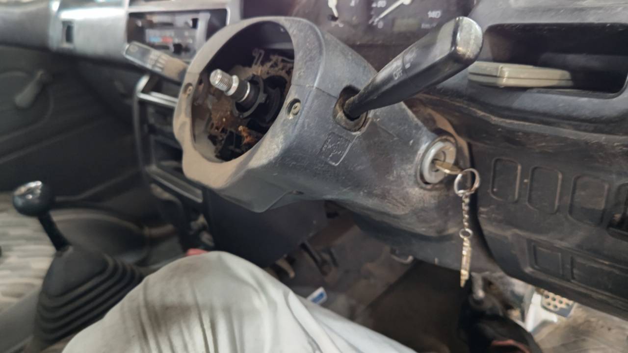 先ずはステアリング・ハンドルの真ん中のカバー部分を外していきます。