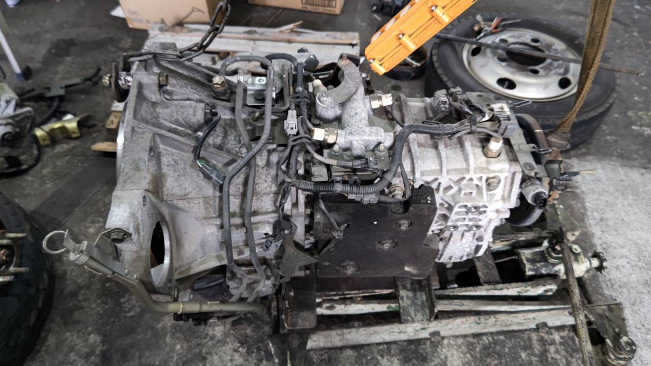 大和郡山市での車の修理は【マスダモータース】で 2022/11/15 イスズ エルフ NKR81A ミッション載せ替え 今回はイスズ エルフの修理です。 わざわざ県外から来て下さったお客様でミッションの変速がおかしいらしく中古のミッションを持ち込みでの作業となりました。 早速作業をしていきます。 先ずはバッテリーの端子を外す所から。 後はいつも通り、ワイヤーや配線、スターター・モーター、プロペラ・シャフトを外してしまいます。 今回は通常のミッションとは異なりスムーサーというクラッチの無いミッションです。 クラッチの代わりをトルコンが行い、以降の変速はマニュアルと同じ・・・という変わったミッションです。 なのでATFを抜いてフライ・ホイールにトルコンを固定しているボルトを外してミッションとトルコンを一緒におろします。 降ろしたミッションはこちらで処分します。 お客様が持ってきたミッションをジャッキに載せて使わない部品を外していきます。 ATFが漏れないようにパイプが曲がって付いていました。 こんなんは廃棄するだけです。 確認していくと・・・ 何故か一番後ろのロック・ナットを外した形跡がありました。 それはいいんですが・・・ ロック・ナット使い回しの上、かしめて無くて???ってなりました。 直しておきましたが、こういうのは気を付けないと・・・ 絶対に緩んだらダメな部分だからロック・ナット使ってるんだし・・・。 載せるときはしっかりトルコンがミッションの奥まで入っている状態でないといけません。 でないと壊れます。 邪魔な排気ブレーキを外す時にフロント・パイプに溶接してあるボルトが痩せて折れました。 グラインダーで溶接してあるボルトの頭を飛ばして普通にボルトを入れました。 エルフは何でこのボルトを溶接したのか?結構な頻度で折れるのに・・・。 細かい修理もしながらもミッションを載せ終えたらオイルを入れます。 トルコンにはATF、後ろのギヤにはエンジン・オイルを入れます。 間違えて高粘度のギヤ・オイルを入れると・・・ 音鳴りしたりトラブルが起きるので注意です。 最後にスムーサーの初期設定を行って、作動チェックの為に試走します。 問題なかったので作業は終了です。