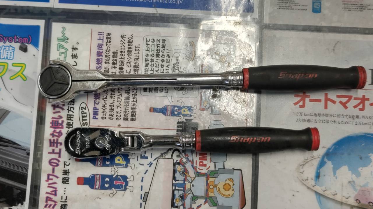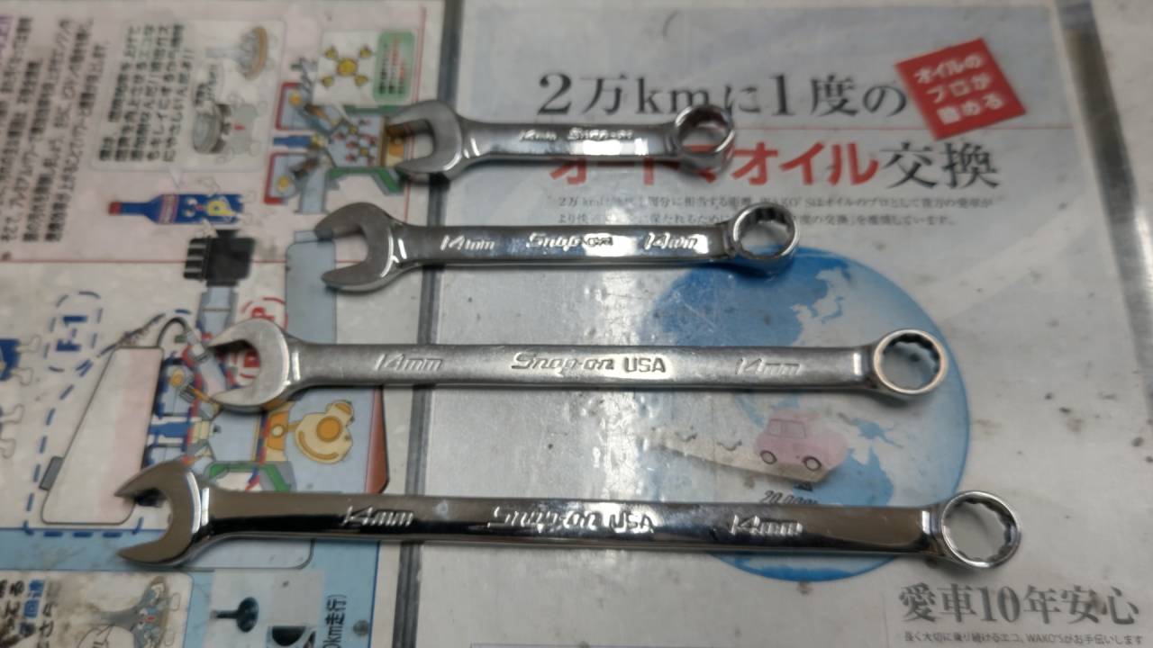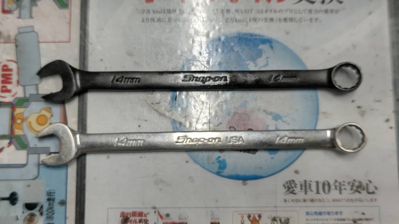 趣味の話 2023/01/14 snap on コンビネーション・レンチ 今回は趣味の話です。 趣味といっても仕事にも関係している趣味ですね。 それは・・・ 工具収集ですw 今年から少しこの趣味の話をしていこうかな~と思います。 さて何処の何からいこうかと考えて・・・ やはり・・・ ここは・・・ キング・オブ・ツールと言われるスナップオンからではないかとwww 自動車整備なんて工具が必要な業界の人間でスナップオンを知らない人は殆どいないでしょう。 バン・セールスという販売方式で工場なで来てくれるので、実際に手に取って触れるからついつい買ってしまいますし、シャレオツなロゴ入りグッズ等も豊富で日本のメーカーと一線を画してますねw 写真の帽子は地味ですがwww さて・・・ どんな工具を照会しようか・・・なんですが・・・ スナップオンと言えば・・・ ラチェットと言われる方が多いと思います。 ですが、今回は・・・ コンビネーション・レンチでいきたいと思います。 スナップオンのコンビネーション・レンチは長さが4種類ありまして作業スペースで使い分けをしています。 スパナ部には普通の形状と・・・ フランク・ドライブ・プラスと言われる面接地タイプがあります。 面接地タイプは通常タイプに比べて高トルクがかけられます。 ただし、あくまでスパナなんで過信は禁物ですがw トラックの架装部分で偶にスパナでないと回せないボルトなんかがあるんですが、このフランク・ドライブ・プラスのお陰で回せたなんて事がありましたので随分役に立ってくれていますw また、スナップオンの工具は光沢のある硬質クロームメッキがされていますが、メッキが割れて破片が入ったりする場所でも使える表面を科学反応で処理した黒色酸化被膜の使用も出ています。 コンビネーション・レンチは海外メーカーではバリエーションが豊富で集め甲斐があります。 お小遣いも沢山必要なんで泣きそうになりますがねw