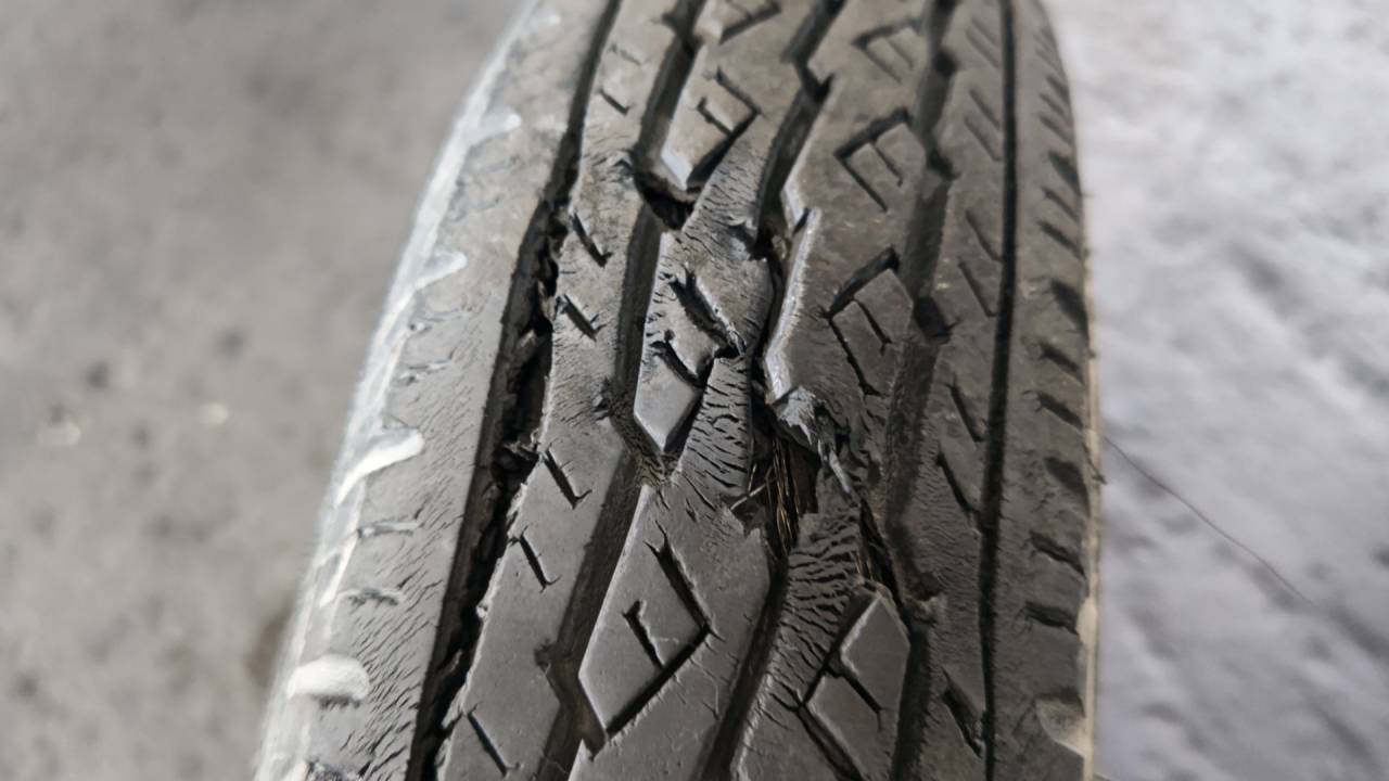 大和郡山市での車の修理は【マスダモータース】で 2023/01/25 古いタイヤについて 今回は車は兎も角としてタイヤに関する事です。 以前にも書いた事あったかな? 車は見ての通り、古いマツダ ボンゴです。 車検で預かって点検していました。 車検時にはタイヤの空気圧は必ずチェックします。 外してあるので状態の確認も容易なんですが・・・ 製造年が2007年です。 去年の仕事なんで15年落ちのタイヤ・・・ 空気を入れるのにも危険を感じます。 なので・・・ 先に状態のチェックをしていきます。 余り走らないヤツなので年式に対して大分と溝が残っています。 ・・・が、そこは古いタイヤ・・・ 先にチェックしておいて助かりました・・・ 裂けてます! 古くなるとパッと見の状態は良くてもワイヤーの劣化等でバーストする事もあります。 余り乗ってないし溝もあるから大丈夫・・・なんて事はありませんので、10年も経ってたらすぐに交換してもらいたいですね。 古いタイヤで急に高速にのる事になった・・・なんて笑えませんよ。