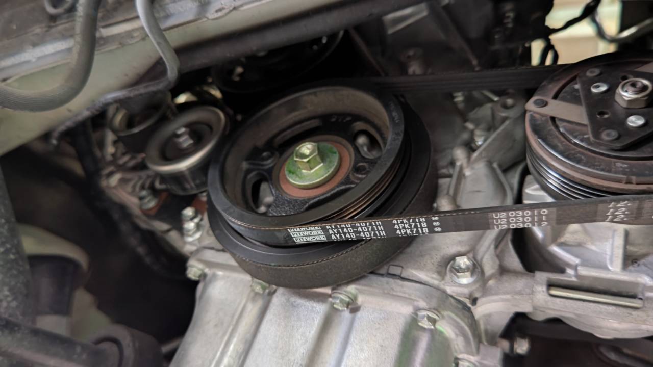 大和郡山市での安心車検は【マスダモータース】に 2023/02/18 スズキ スイフト ZC72S 車検 今回はスズキ スイフトの車検です。 ずっと管理させてもらっている車なんで難しくはなさそうです。 早速リフト・アップして分解、点検していきます。 大きな修理はありませんでした。 ブレーキは問題なかったので清掃、グリス・アップしておきます。 ブレーキ・フルードは交換です。 走って無くても2年経ったら交換しましょう。 空気圧チェックは必ずしています。 微かな空気漏れが出る時がありますので、空気圧チェック時には漏れも確認しておきます。 スマート・キーの電池も車検毎に交換します。 ベルトも交換しておきます。 エアコン・ベルトは調整の無いストレッチ・ベルトなんで・・・ 取付工具を使って取り付けます。 ピット・ワークなら工具が付いてくるので安心です。 後はエンジン・オイルやワイパー・ゴム、エアコン・フィルターを交換したら計測、陸事で書類を貰って終了です。
