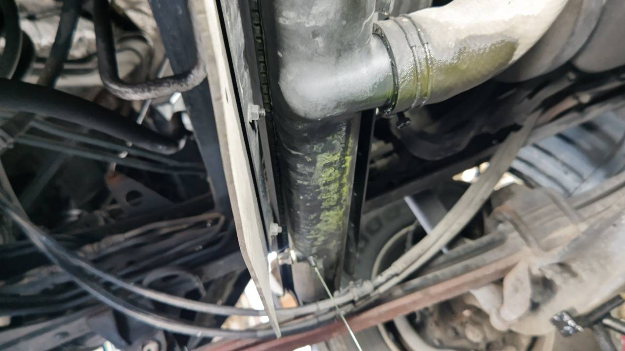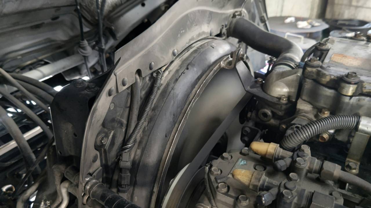 大和郡山市での車の修理は【マスダモータース】で 2023/03/28 ふそう ファイター FK61FJ 水漏れ修理 今回はふそう ファイターの修理です。 お客様から「赤い警告灯がついて、なんか匂いがする」との事。 早速引き取って点検します。 赤い警告灯はラジエターの水量が減っているときに点灯するものでした。 となると・・・ 匂いって・・・ はい、水漏れがしていました。 問題は何処からから?って話なんですが・・・。 アッパー・タンクの周りが全面クーラントまみれでした。 こりゃラジエター交換やな~とバラしていくと・・・ アッパー・ホースの差し込み口も砕けました・・・。 限界だったんですね。 この型のファイターはラジエターの前面にインター・クーラーが付いているまではいいんですが・・・ エアコンのパイプの取り回しが面倒です。 えっちらおっちらしながら、ようやっとラジエターが下せました。 真鍮製の頃と違って軽くはなっているとはいえ、やっぱり重いですw 新しいラジエターに取り換えてエア抜き、漏れの確認をします。 問題なかったので作業は終了です。