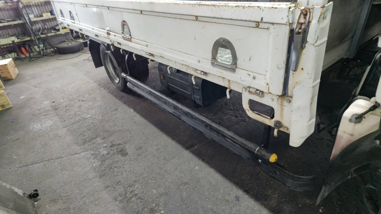 大和郡山市での車の修理は【マスダモータース】で 2023/06/08 今回は日野 デュトロの修理です。 お客様から「サイドのバンパーが外れた」との事。 それだけでは状況が判らないので乗ってきてもらいました。 見事に脱落していました。 確認すると、ステーが折れて外れたみたいです。 フレーム側には問題なかったので部品を取って付け替えます。 ちなみに折れたステーなんですが、二つのパーツを溶接して取り付けているみたいなんですが・・・ これ一体成型ならこんな折れ方しなかったのでは?なんて思いました。 純正のサイド・バンパー以外にも単管が加工して付けられていました。 それもちゃんと取り付けてココの作業は終了です。 ついでにテール・ランプのレンズも割れていたので交換しておきます。 現場で結構荒く使われているらしく、そうなるとレンズ割れは多くなりますね・・・。 これで作業は終了です。